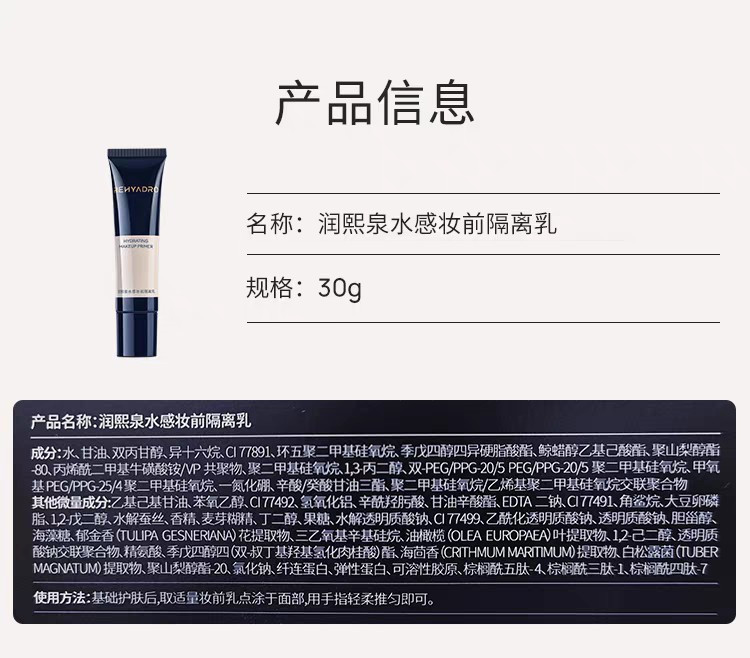 【超值2支装】润熙泉 水感妆前隔离乳 伪素颜神器 质地轻薄已推开 30g*2支