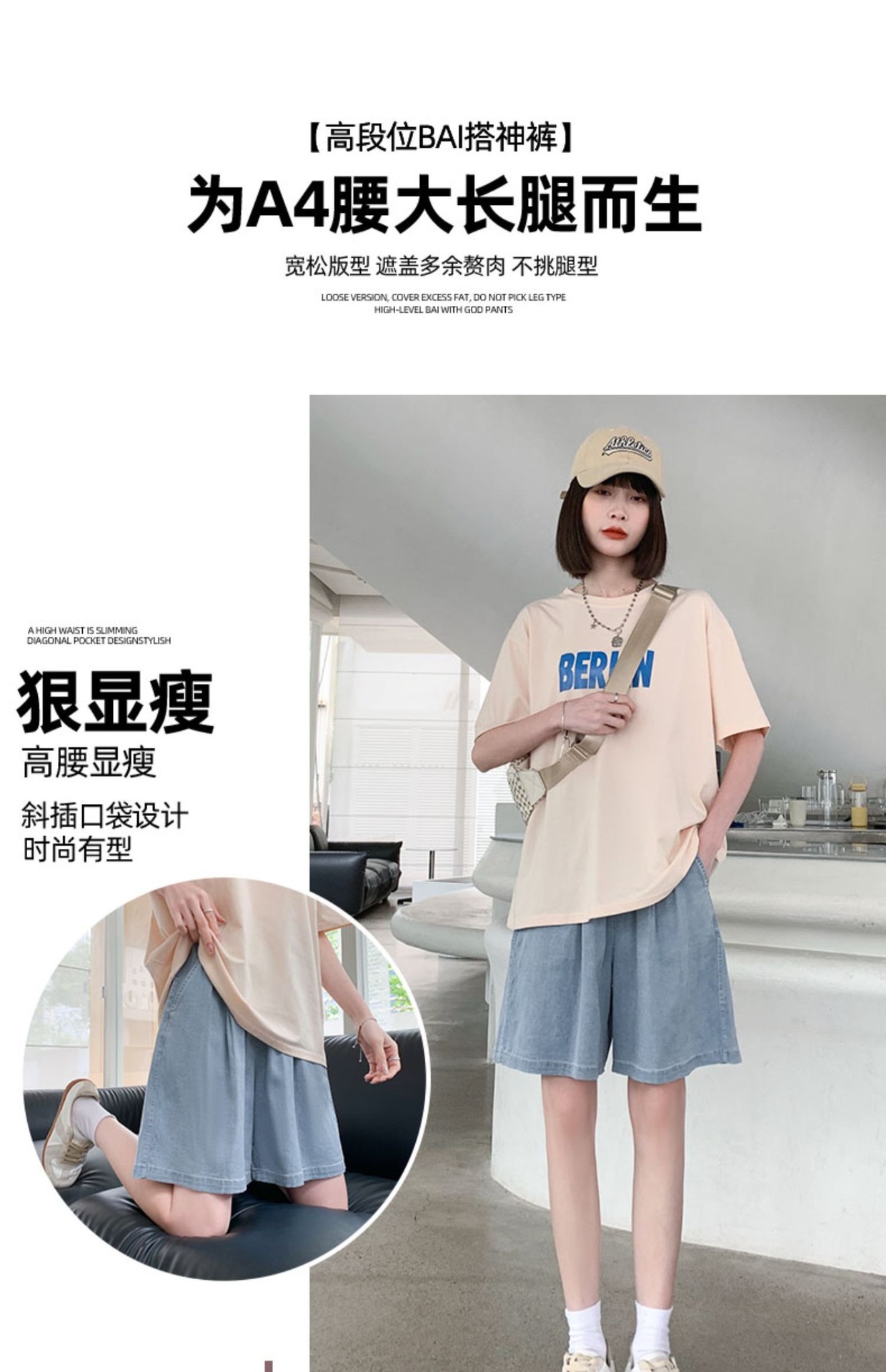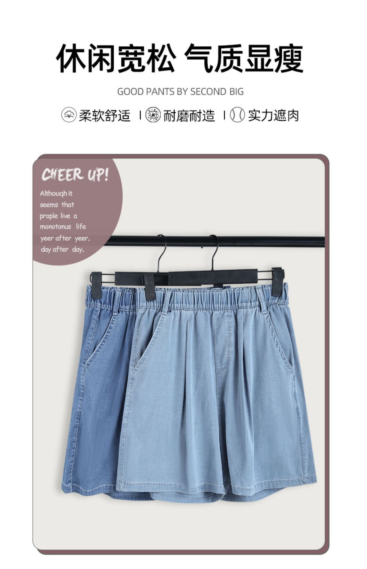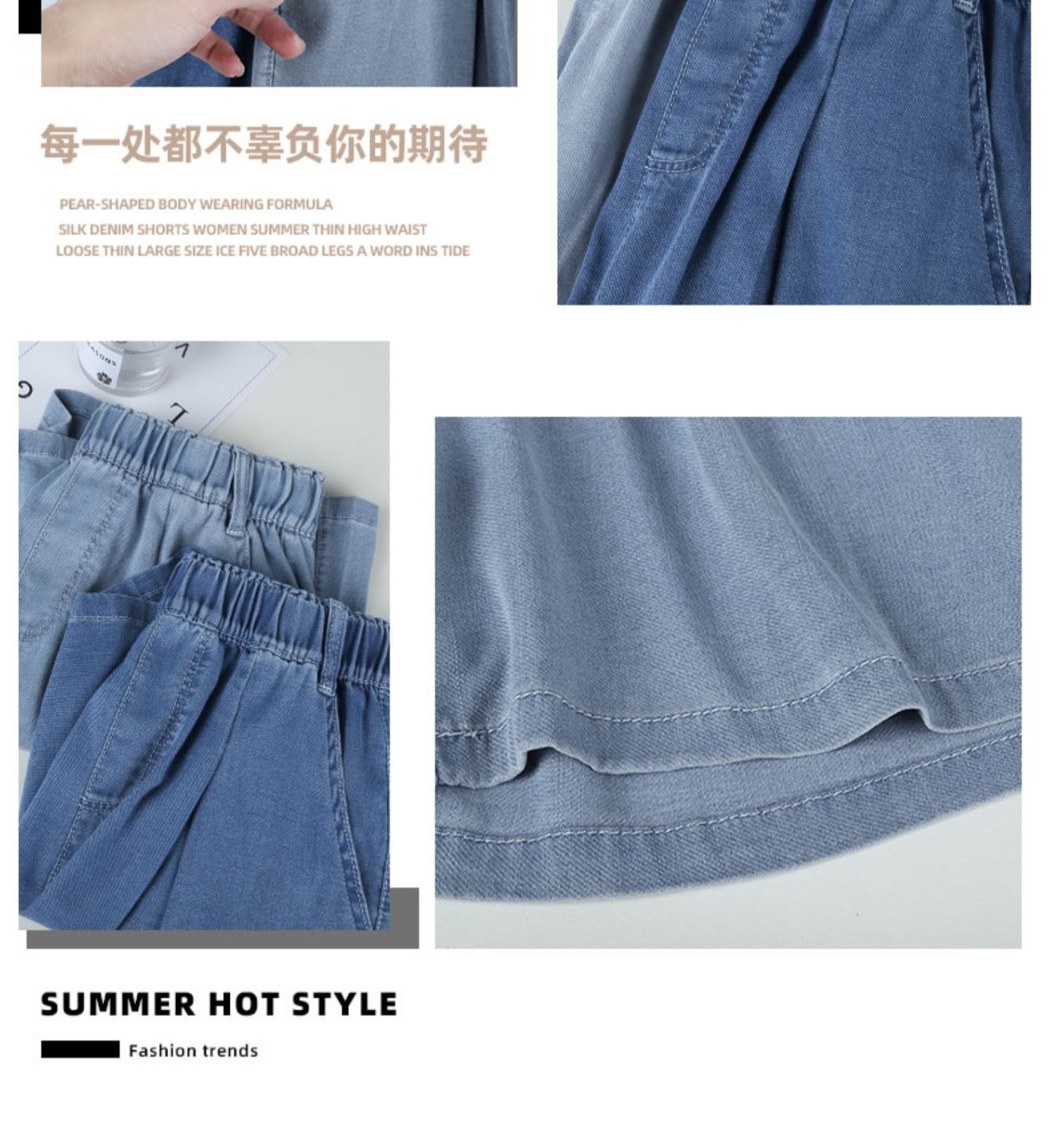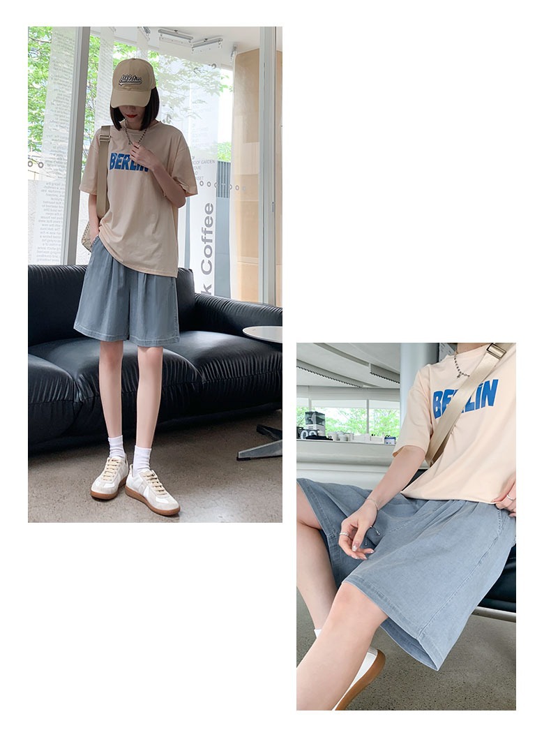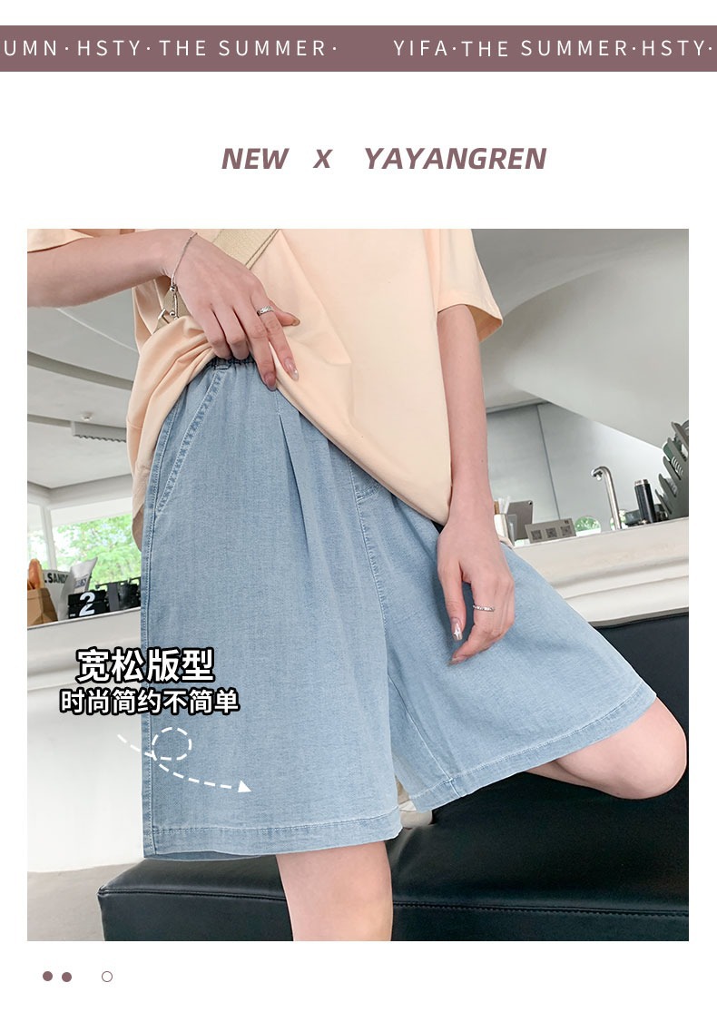 「天丝牛仔!两色可选」牛仔短裤女2023新款夏季薄款高腰显瘦宽松夏天冰丝阔腿五分裤