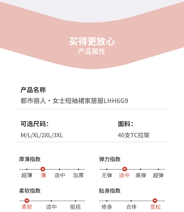 都市丽人女士针织短袖裙薄40支TC拉架生活家居长袖裙LHH6G9
