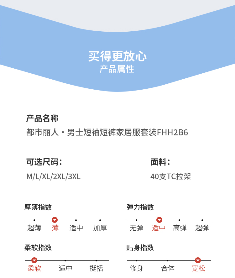 都市丽人舒适外出男士棉质短袖套装薄40支TC拉架短袖类FHH2B6