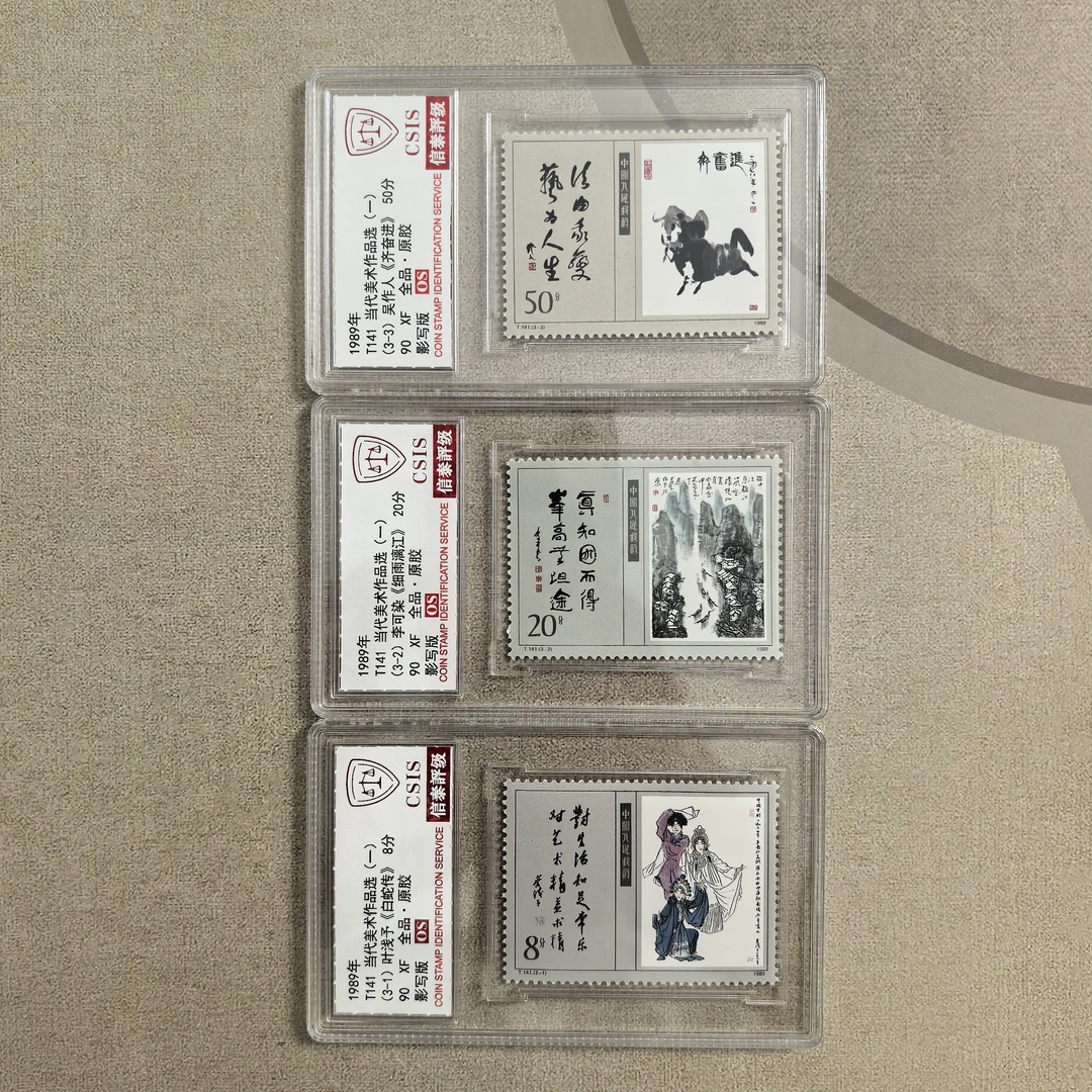 【中国邮政】1989年T141当代美术作品选(一)邮票三枚小盒(信泰评级)