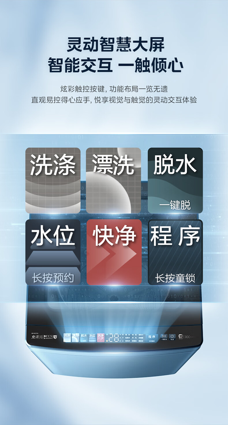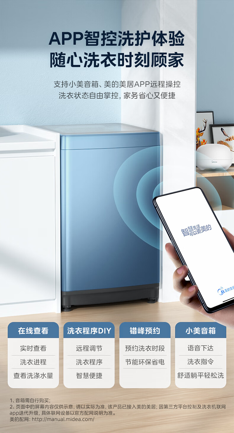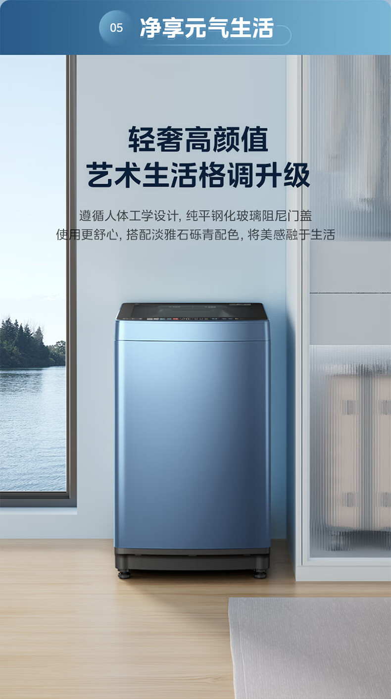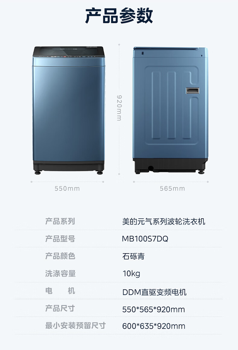美的MB100S7DQ 波轮全自动洗衣机 石砾青 门盖石砾青,白玻,黑色丝印 钢化玻璃 波轮式 220V,1Ph 50Hz
