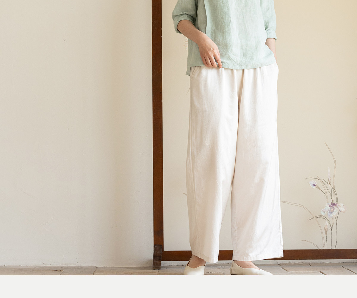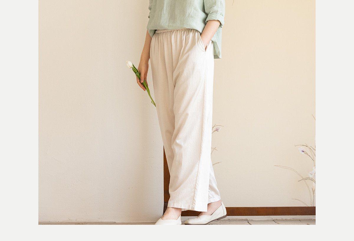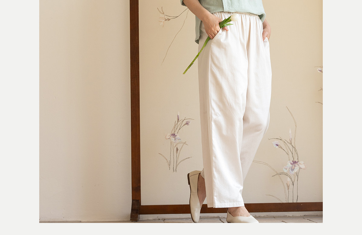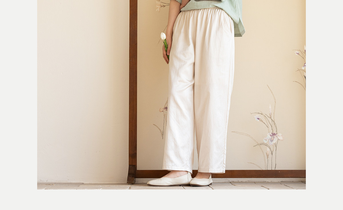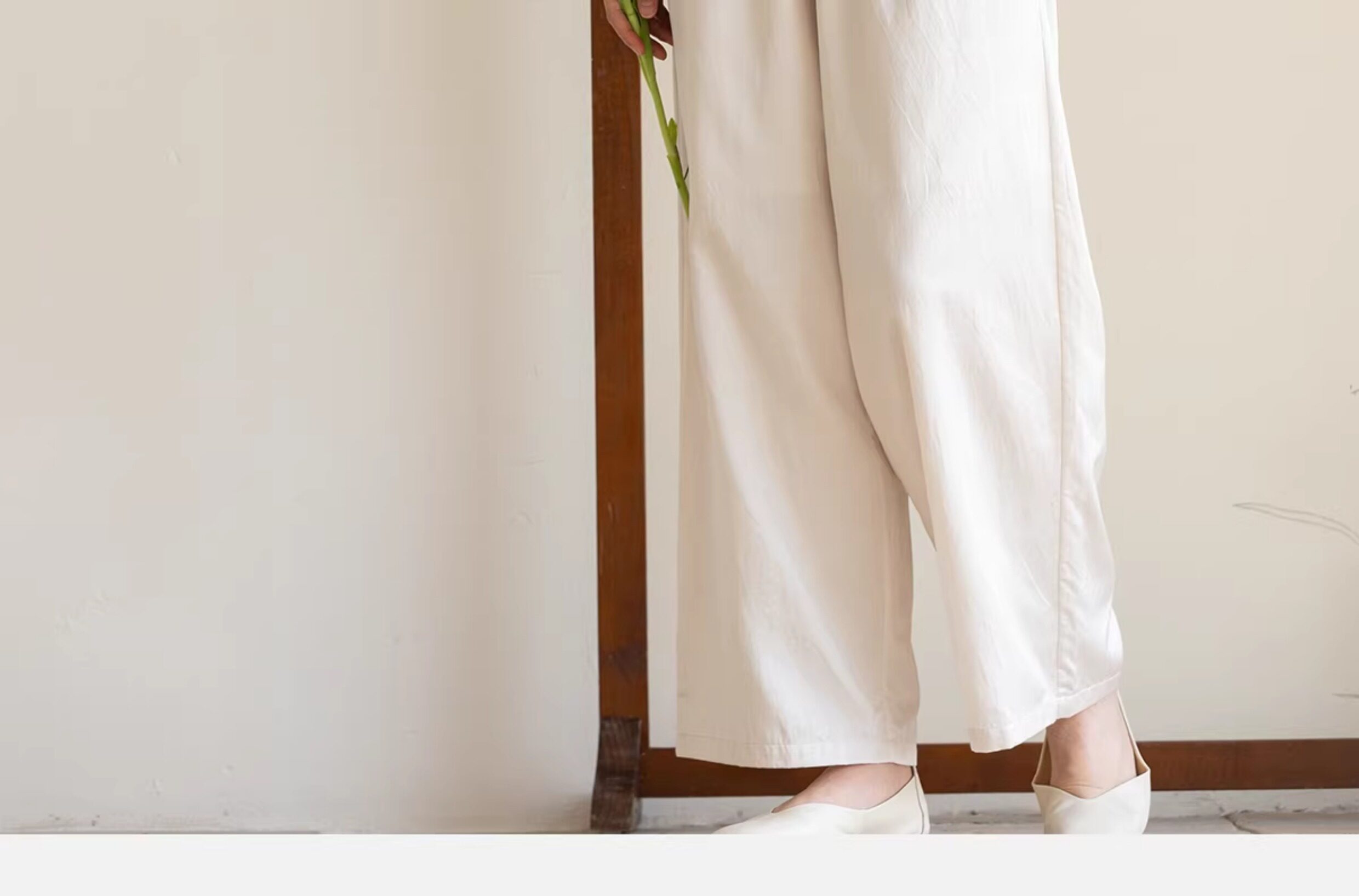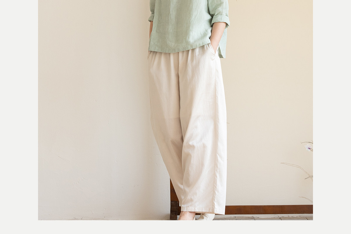 牧衣游原创 重磅丝棉净色裤子新款宽松显瘦松紧腰百搭休闲裤 拾仪