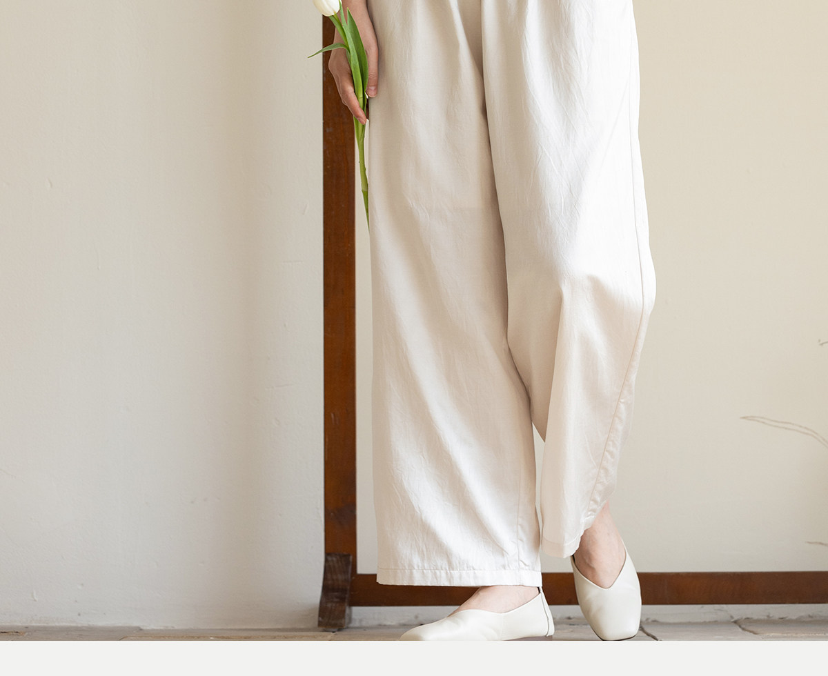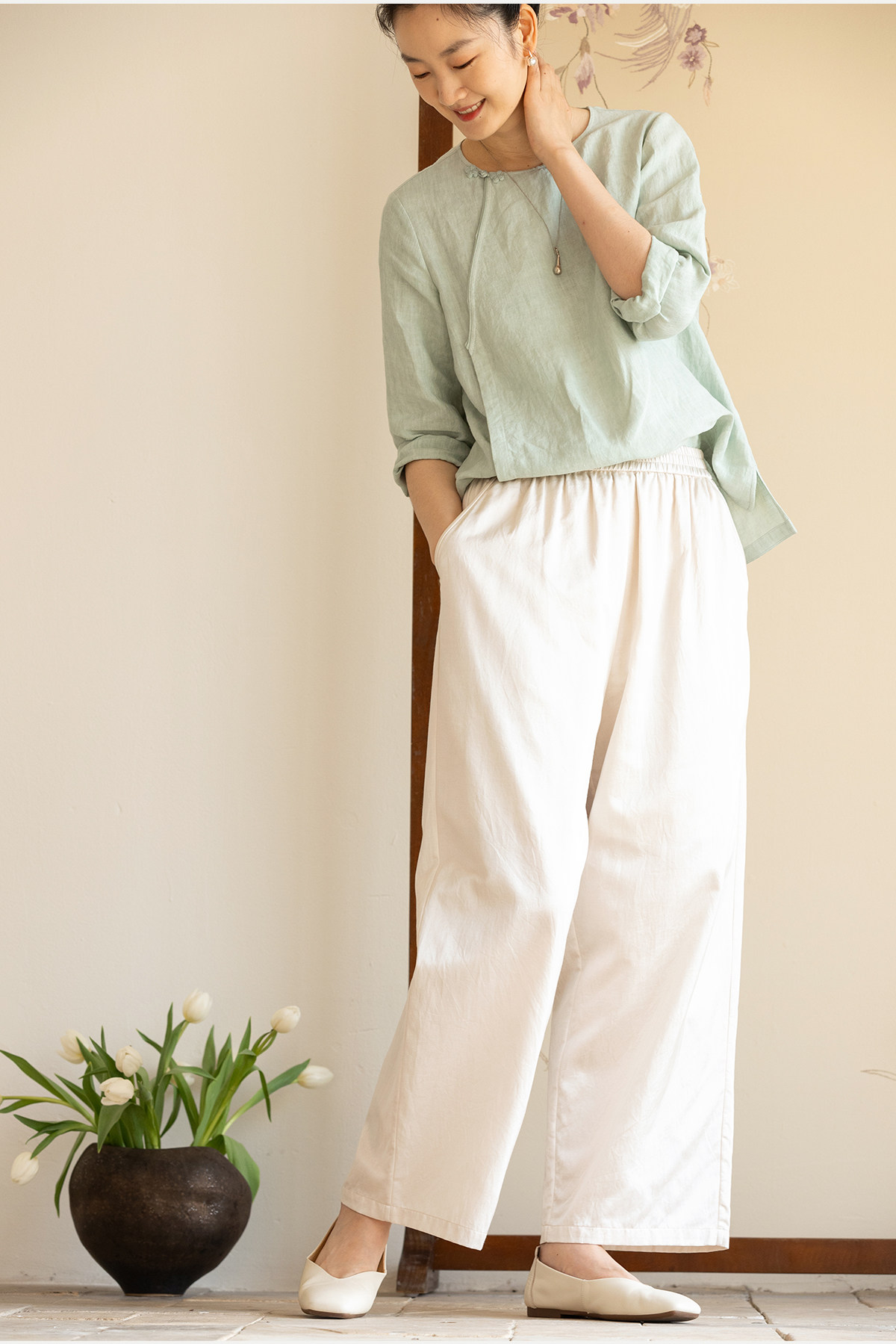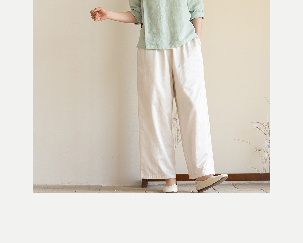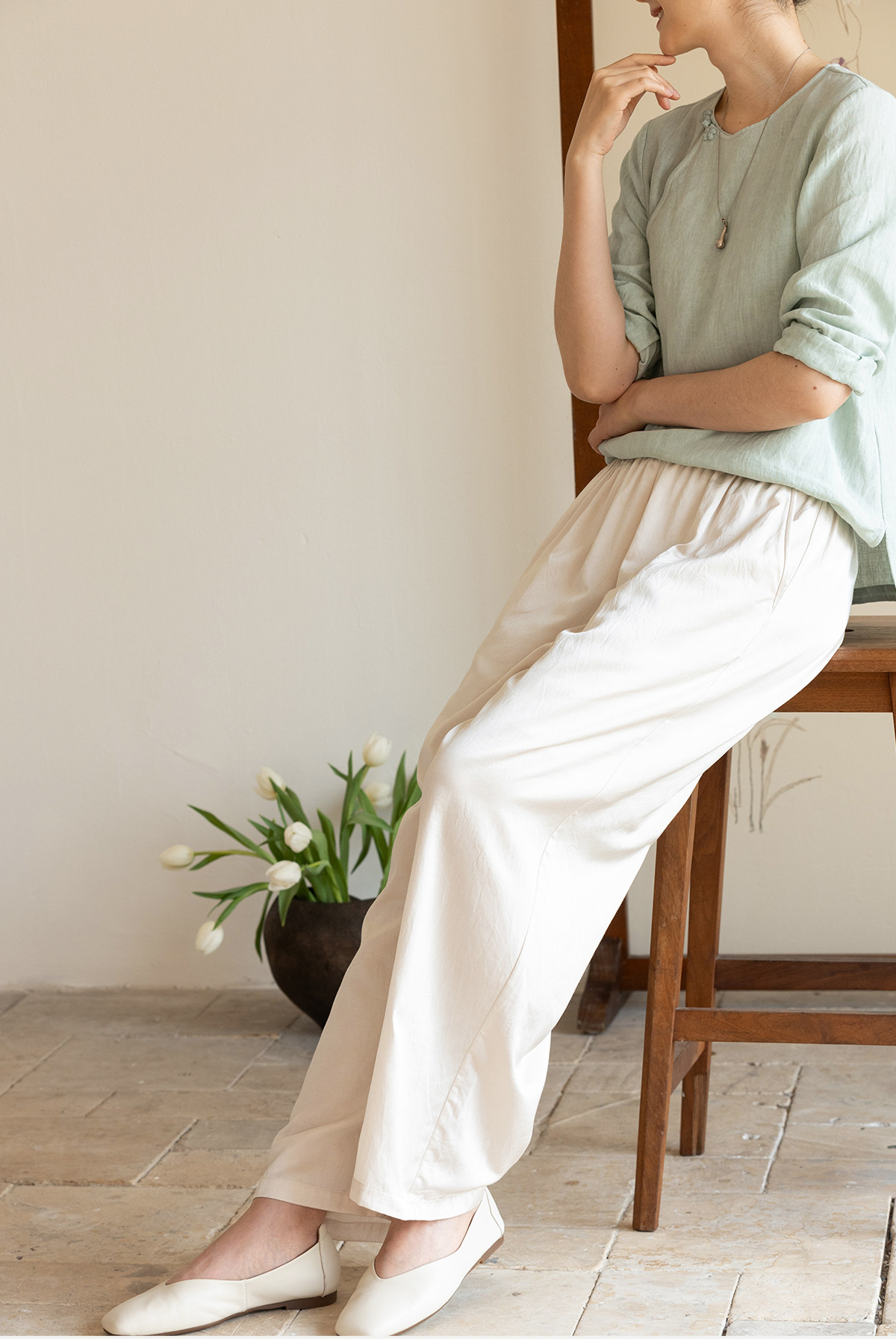 牧衣游原创 重磅丝棉净色裤子新款宽松显瘦松紧腰百搭休闲裤 拾仪