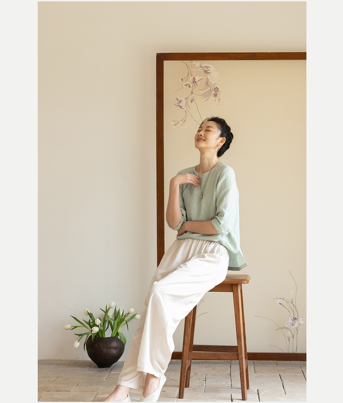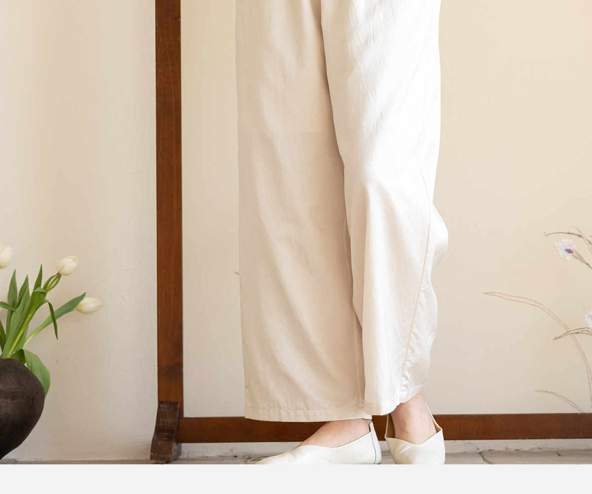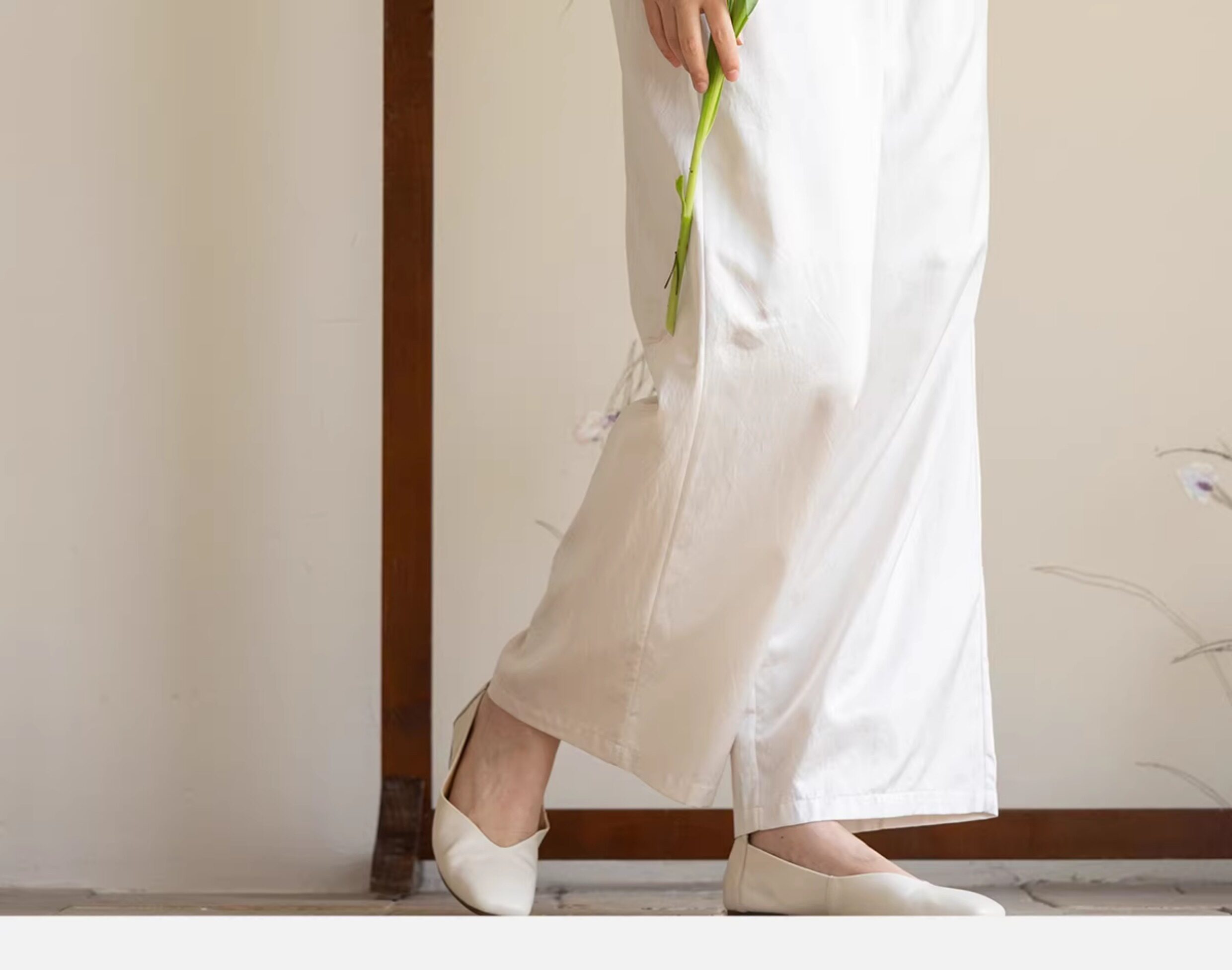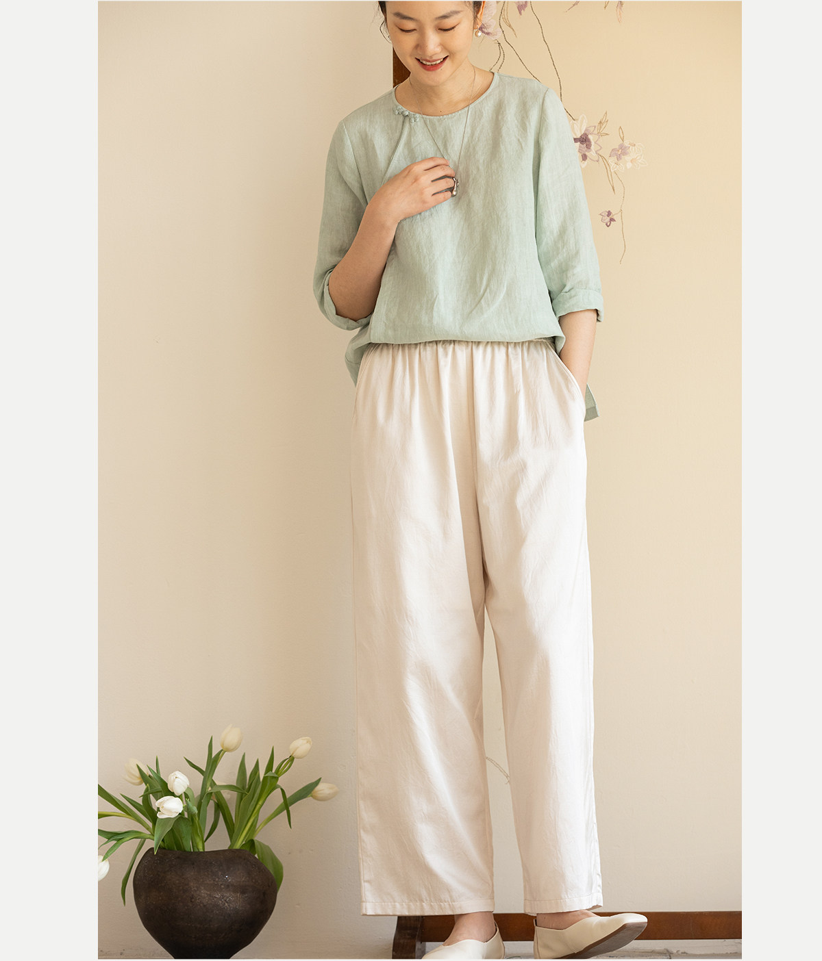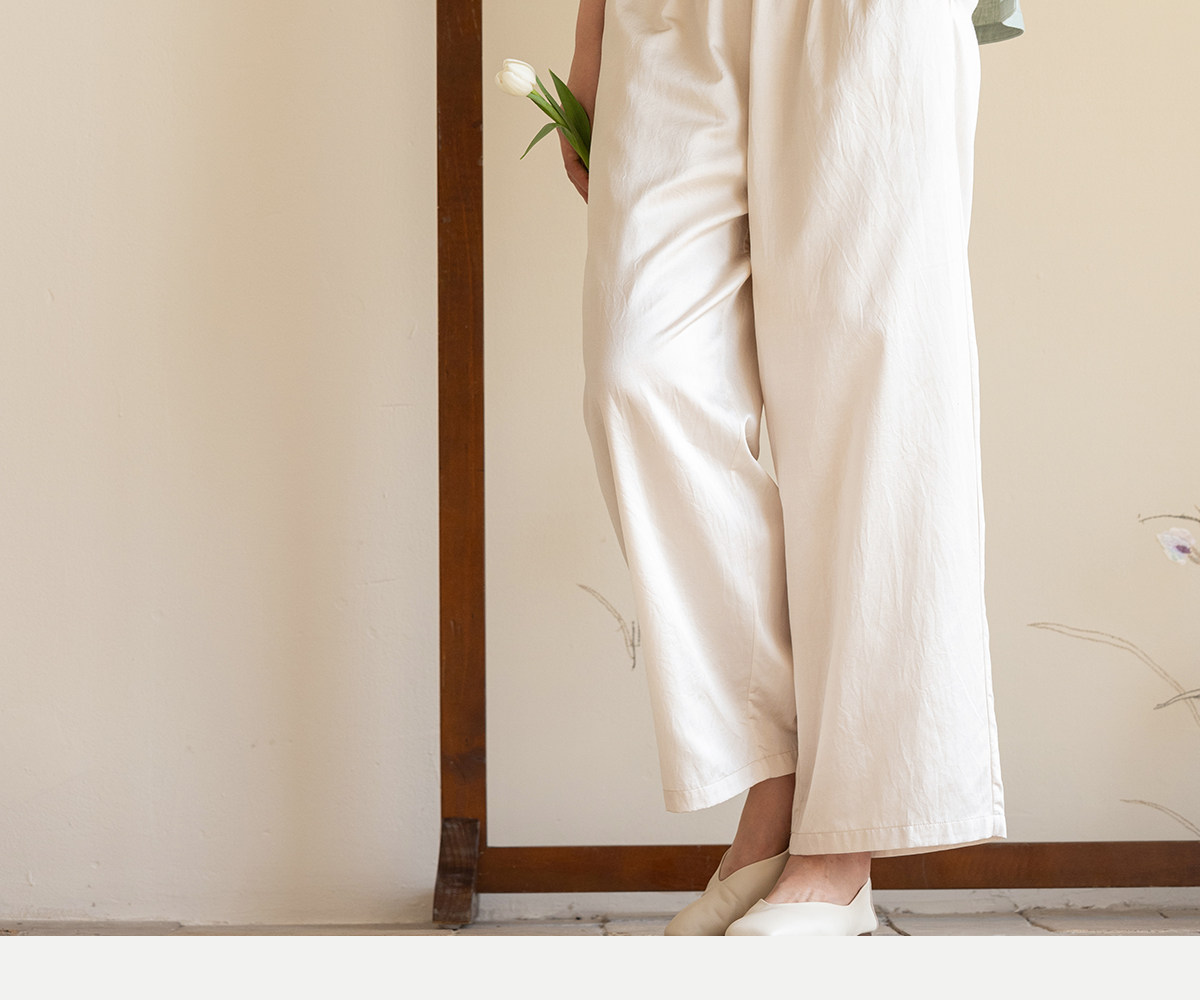 牧衣游原创 重磅丝棉净色裤子新款宽松显瘦松紧腰百搭休闲裤 拾仪