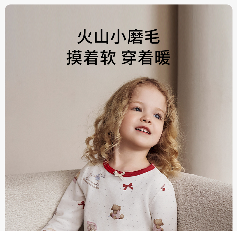 【宝宝服饰】嫚熙儿童家居服套装火山小磨毛分体睡衣宝宝保暖套装