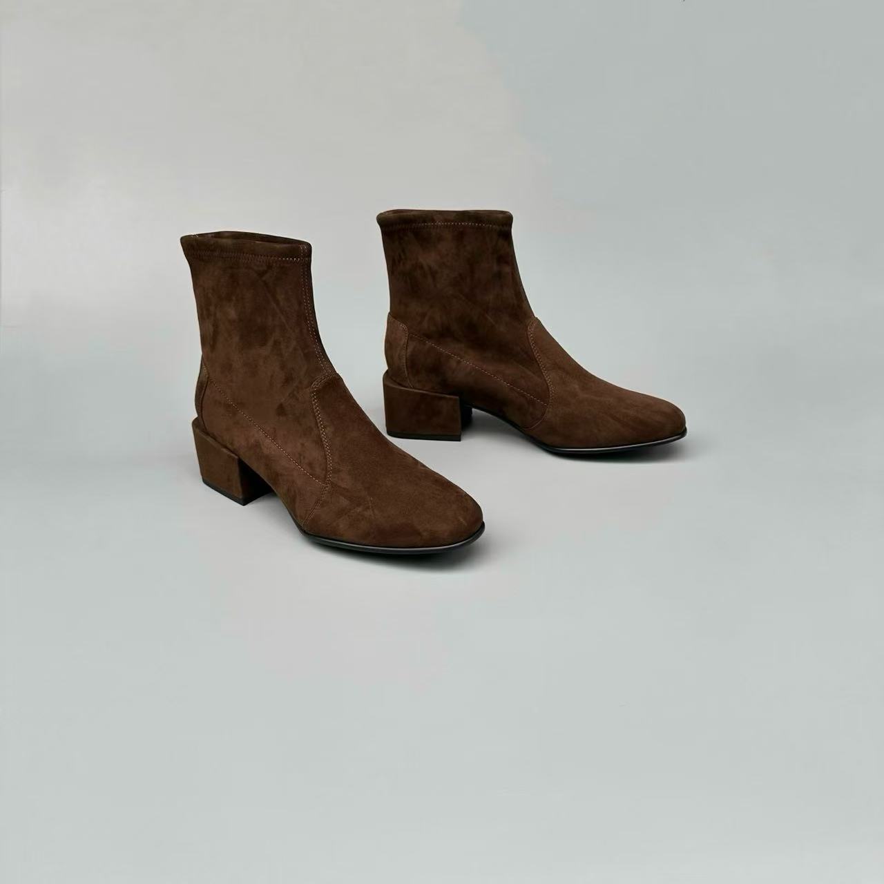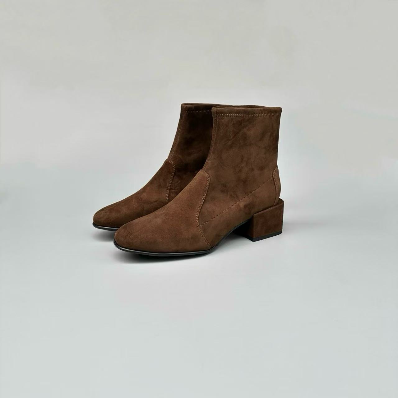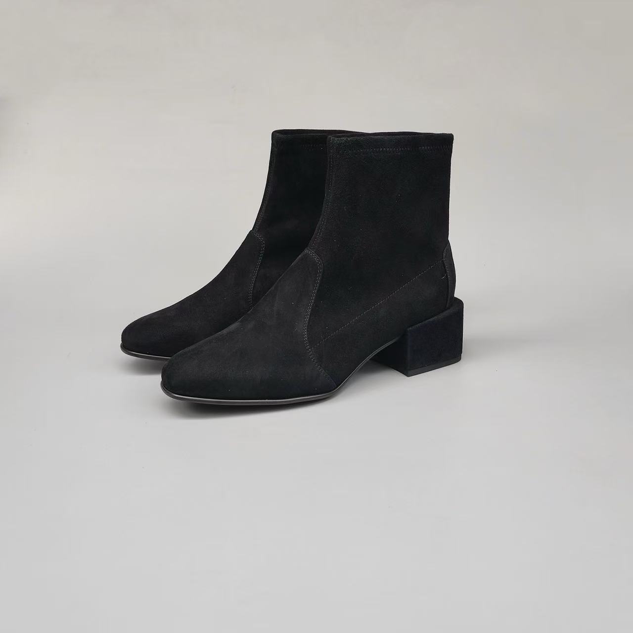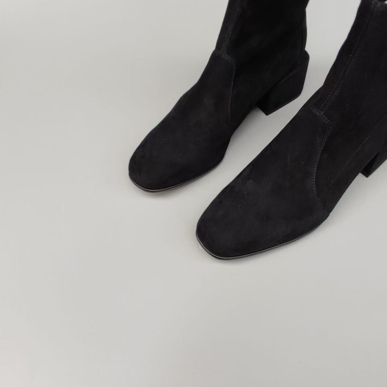 (跟高5cm)火桐hooton 万年经典“瘦瘦靴”粗方跟弹力袜靴短靴440H01