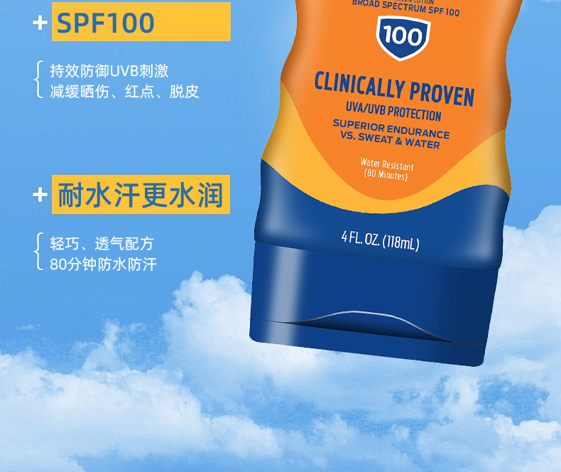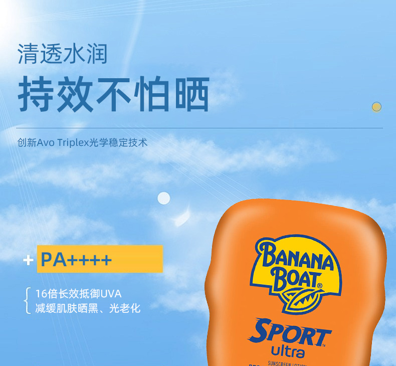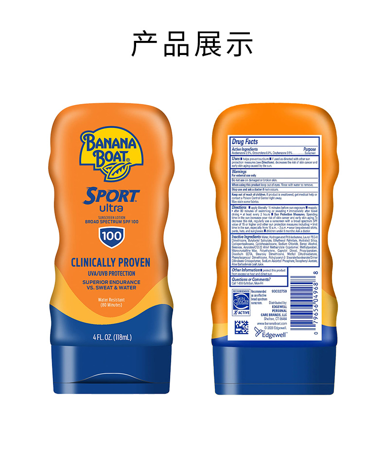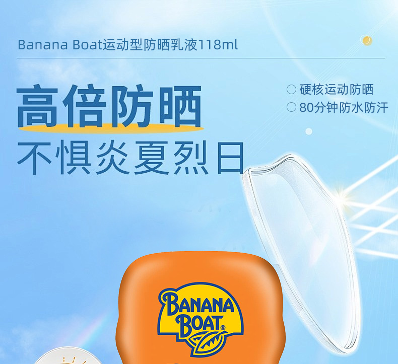 香蕉船(Banana Boat)户外运动型防晒乳SPF100 PA++++高倍防晒温和不刺激 晒后修复舒缓保湿芦荟凝胶