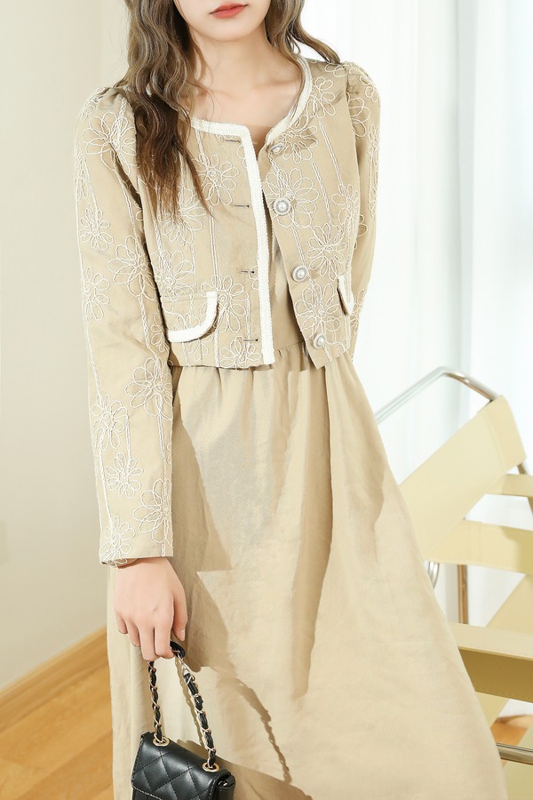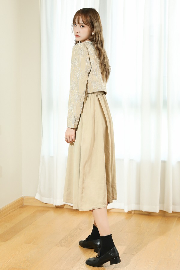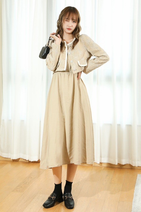 L.Fleuri 卡其色圆领外套背心裙套装 13566
