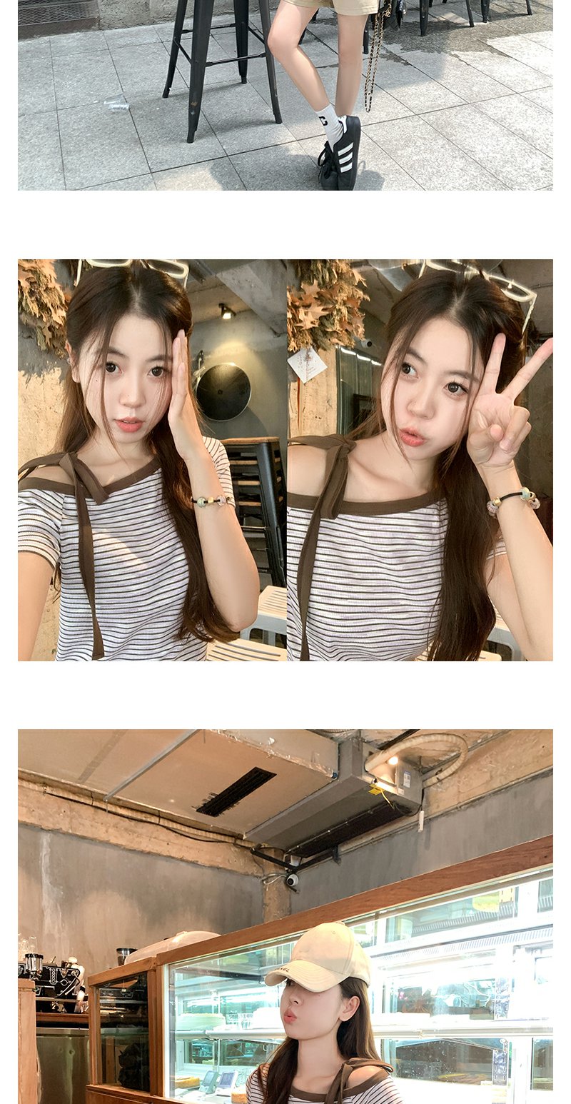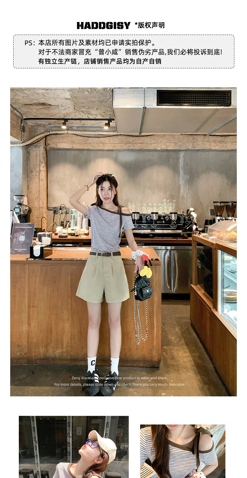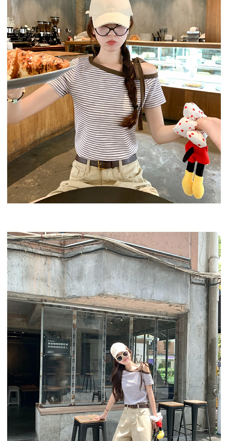 【99元任选2件】微信打折价!条纹斜肩短袖T恤