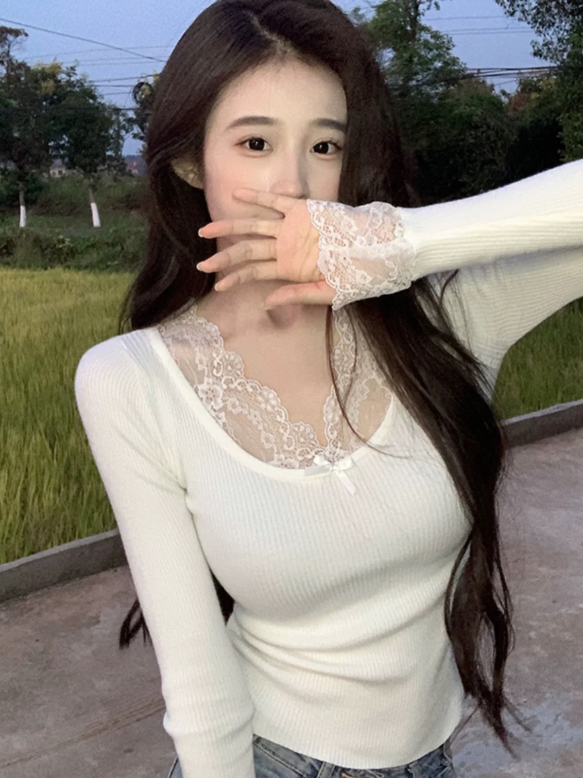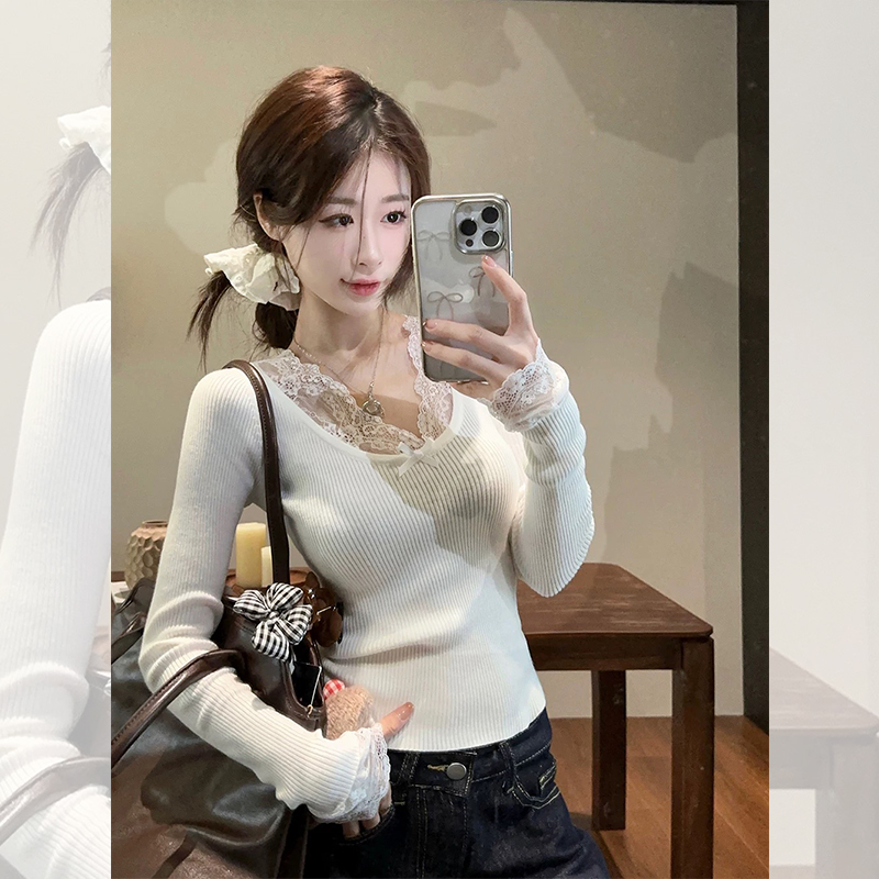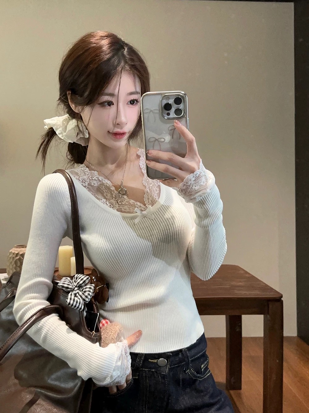 <曾小咸推荐> 蝴蝶结蕾丝拼接针织长袖 日常99/件 活动价69.99!!【预售款,预计3-15天发货】