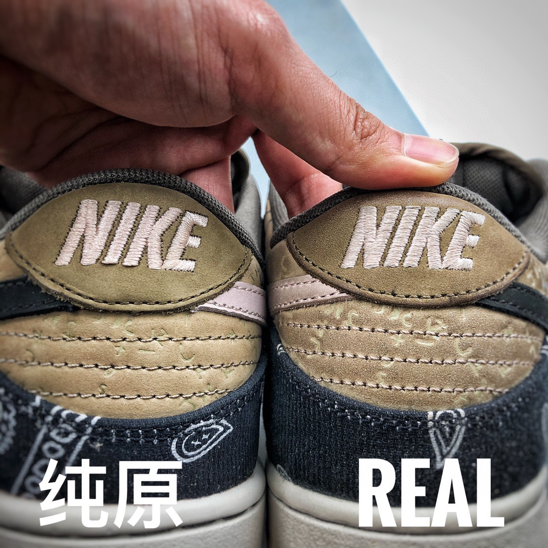 #侧面格子部分 四块拼接针车,纹路走向具有规律性 区分先行"一眼假"