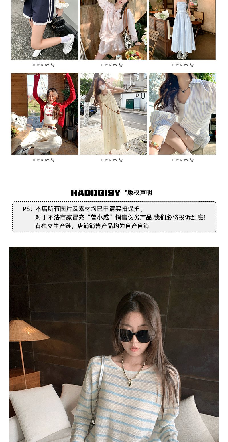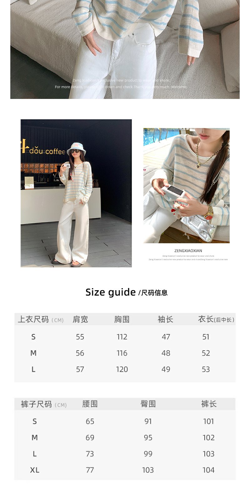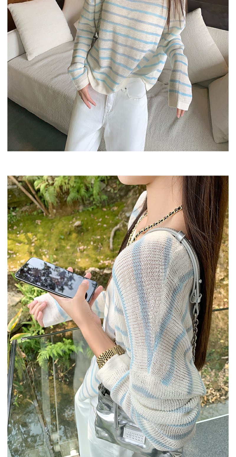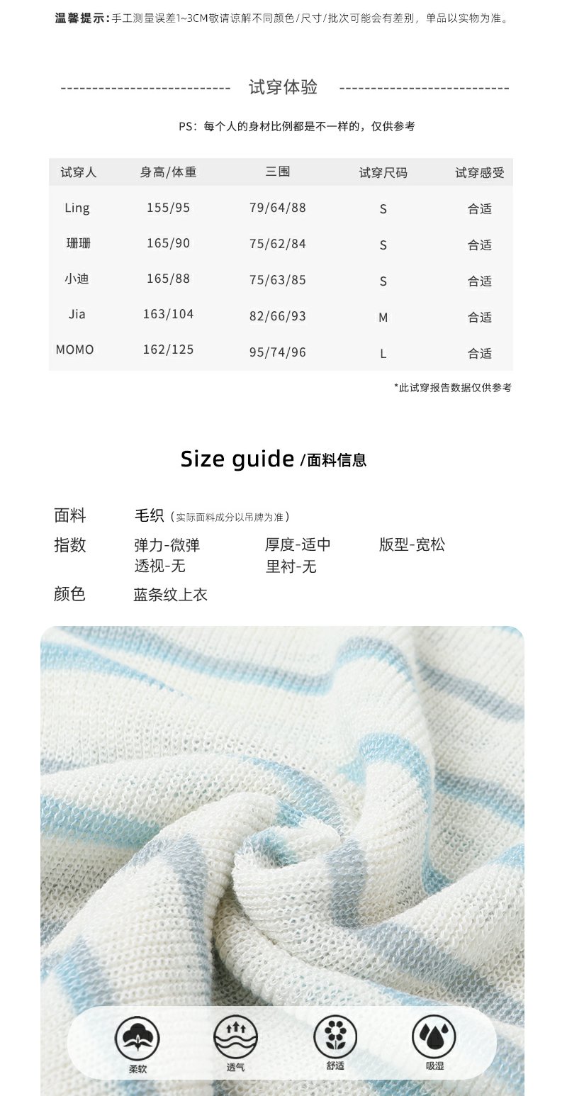 <曾小咸推荐>韩系蓝色条纹针织宽松罩衫T恤【预售3-15天发货】
