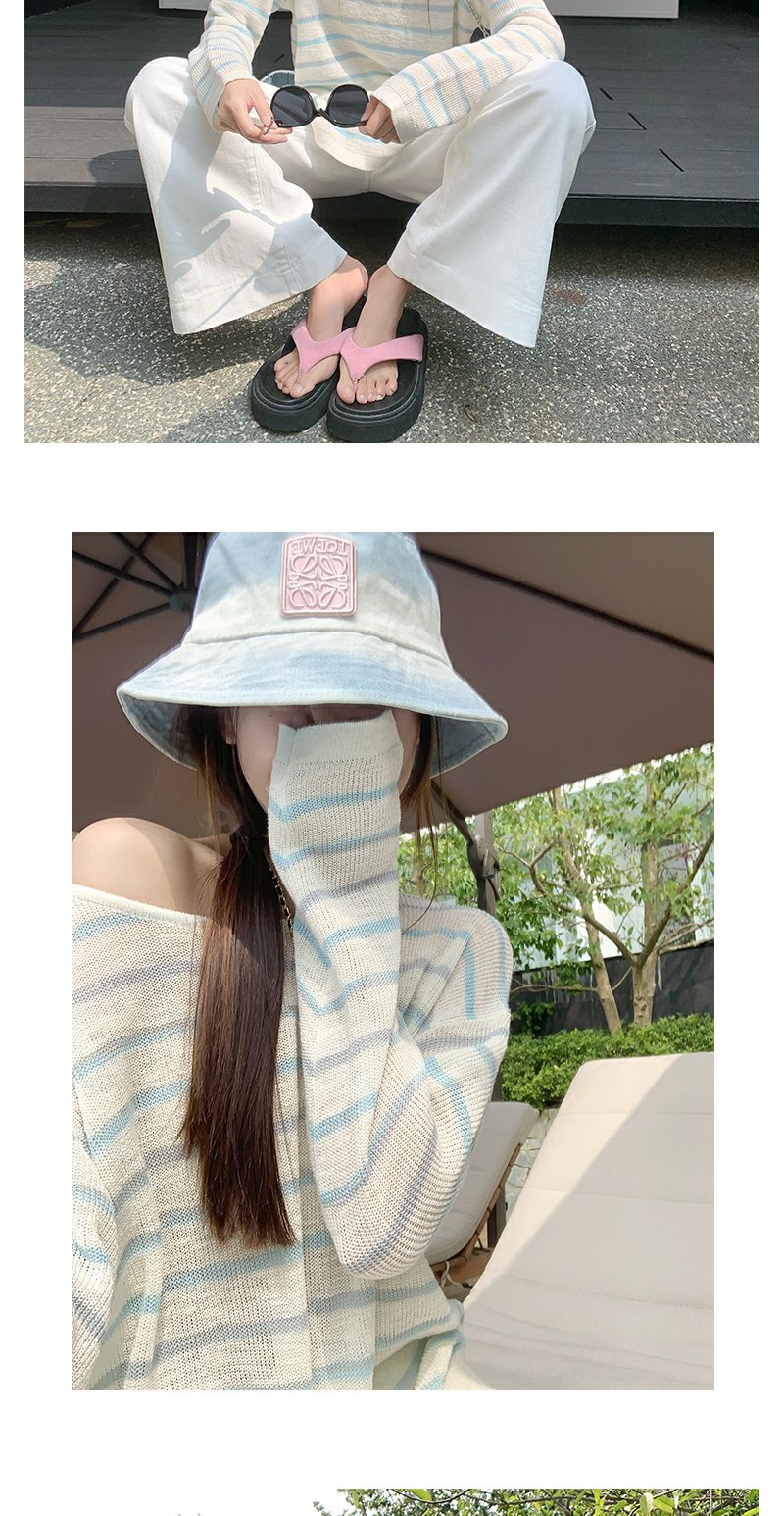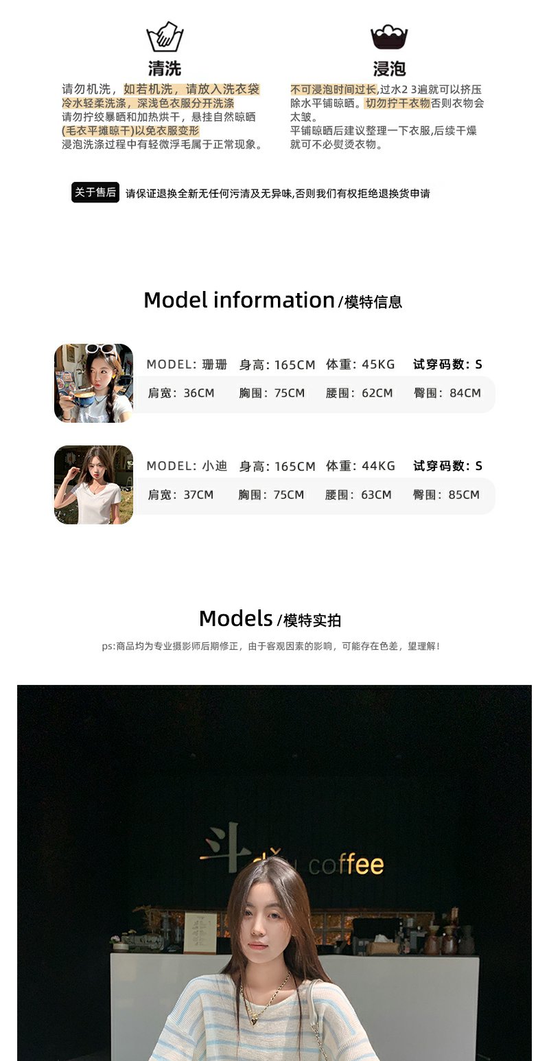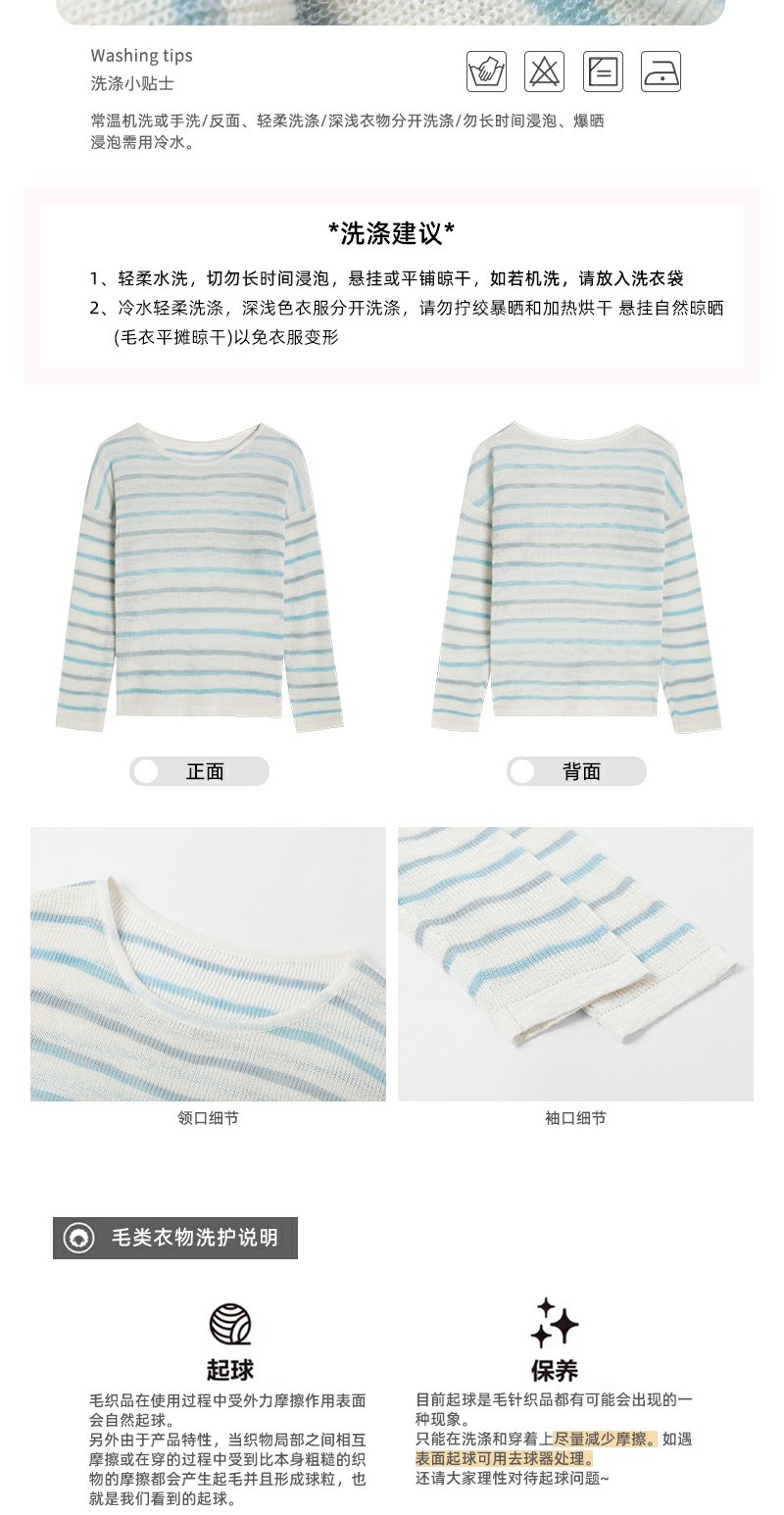 <曾小咸推荐>韩系蓝色条纹针织宽松罩衫T恤【预售3-15天发货】