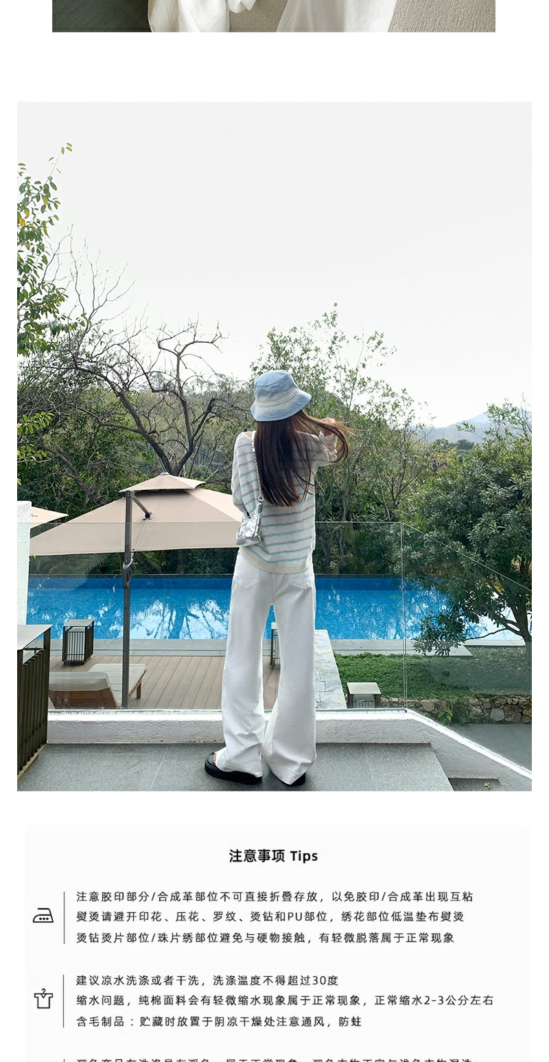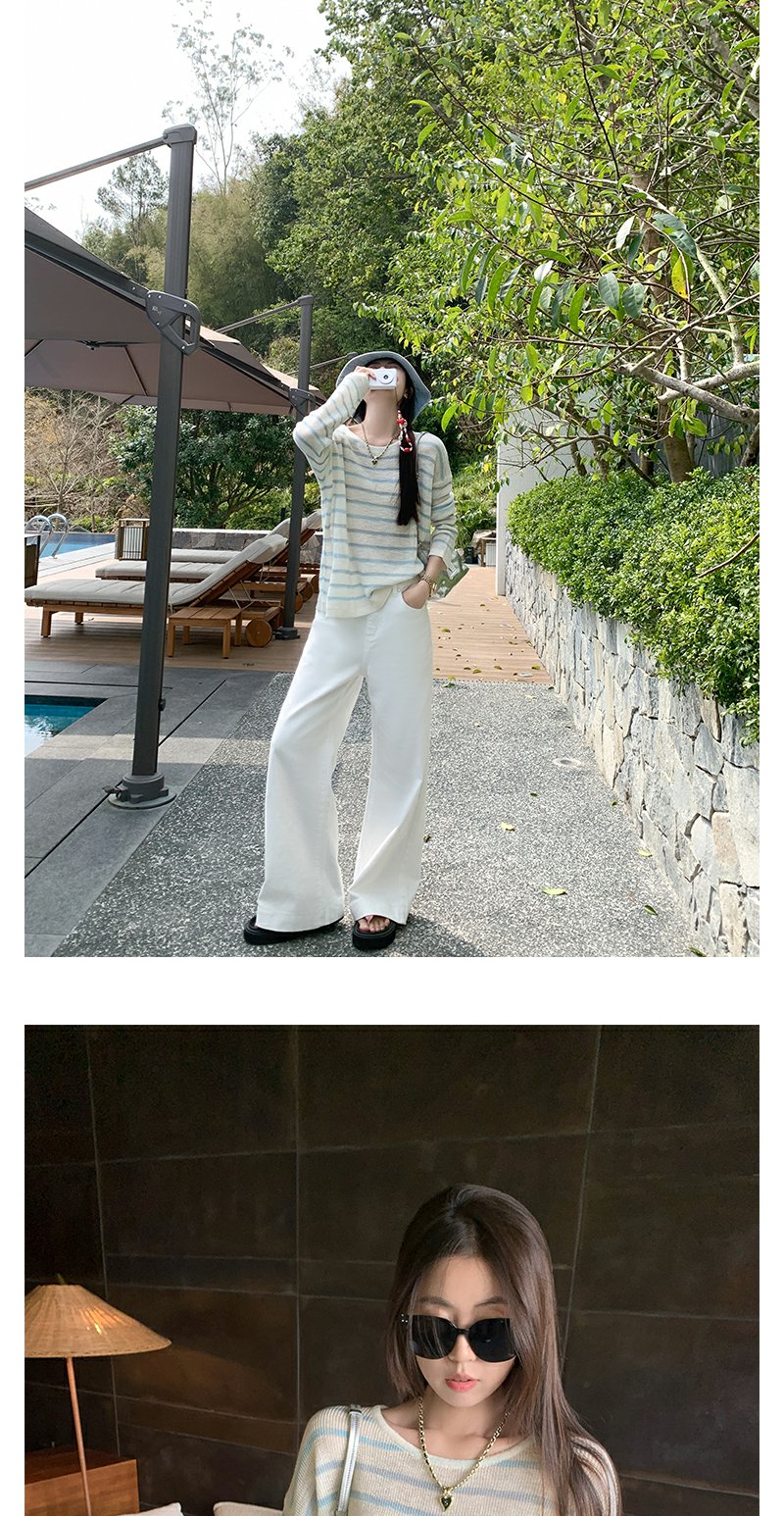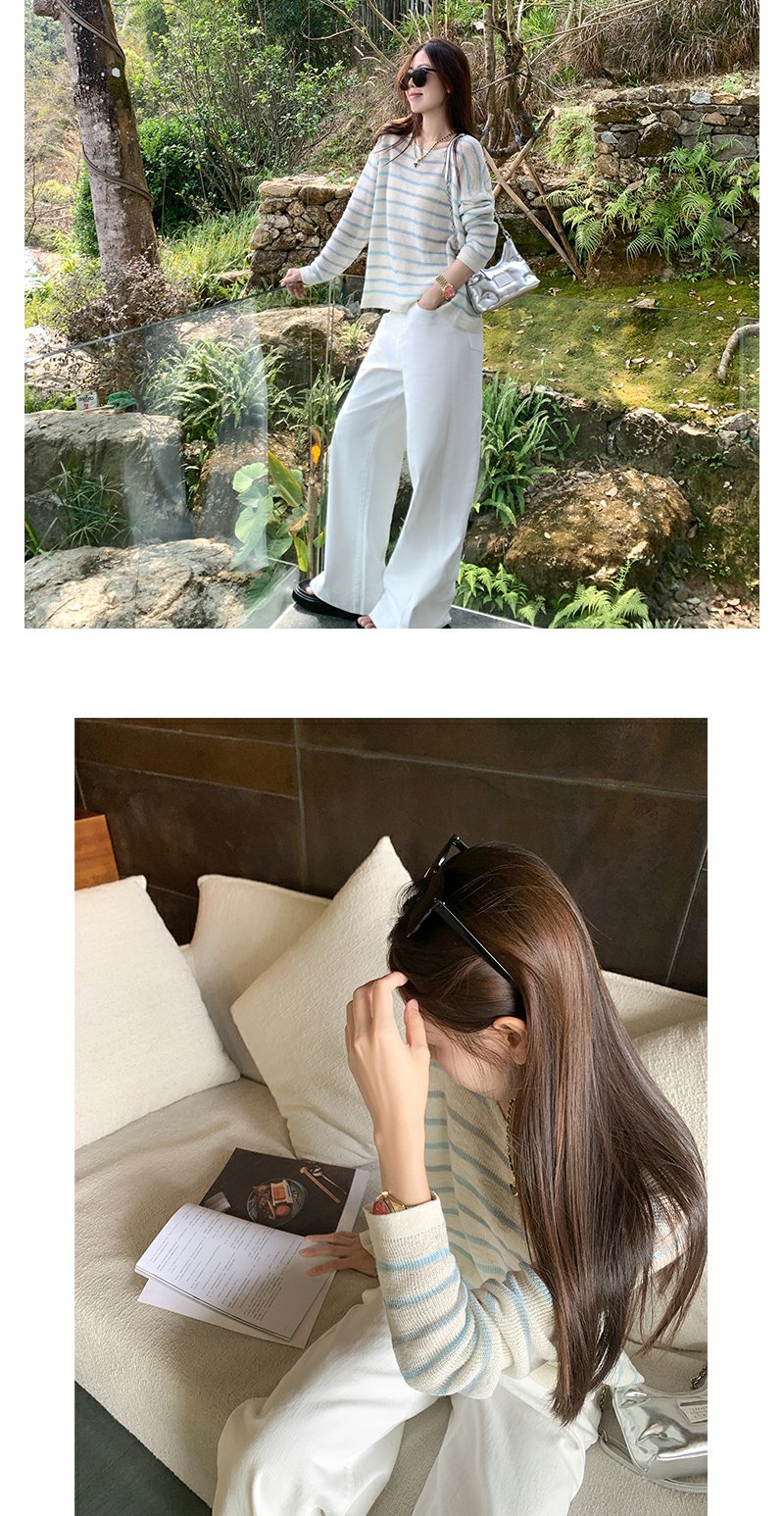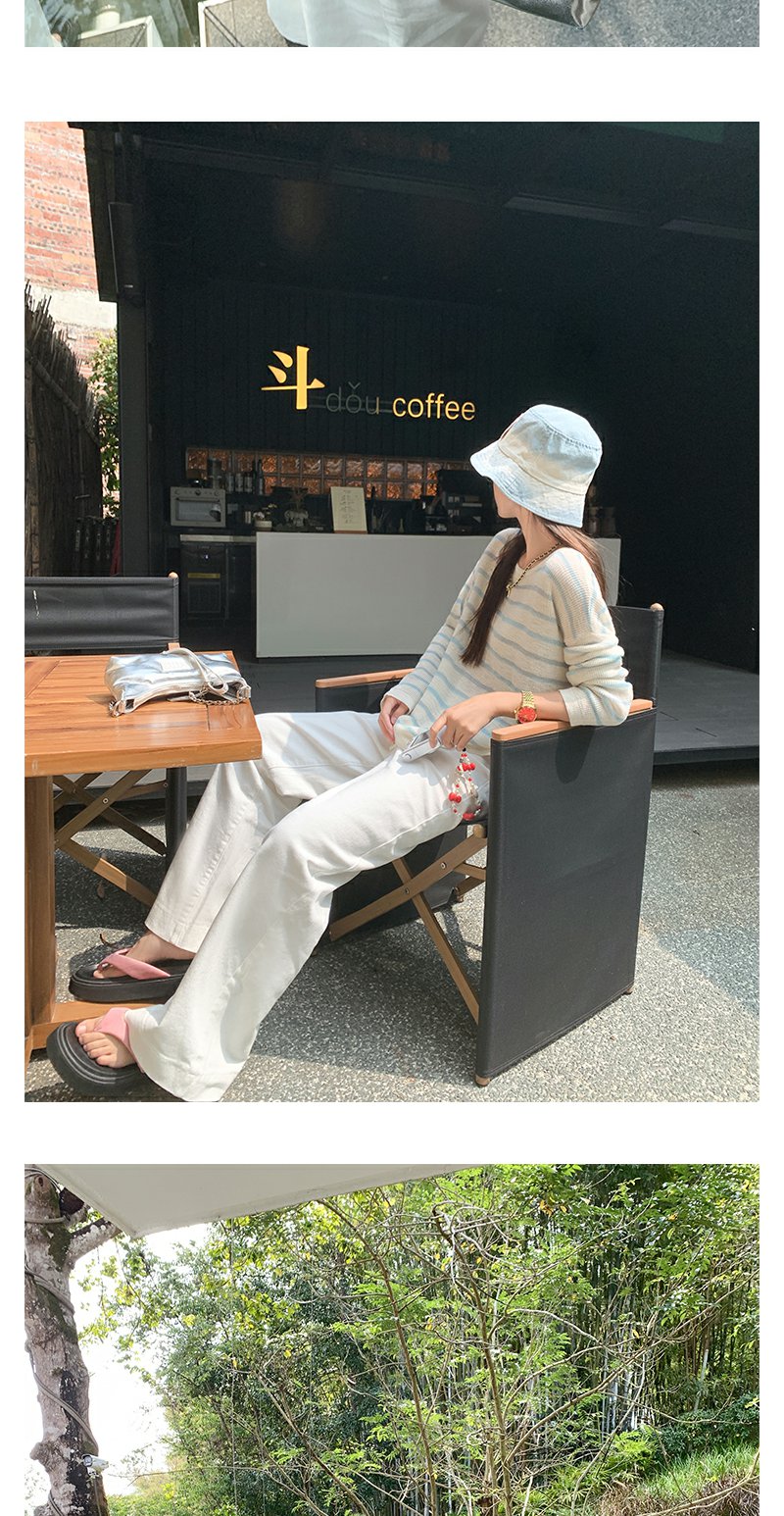 <曾小咸推荐>韩系蓝色条纹针织宽松罩衫T恤【预售3-15天发货】