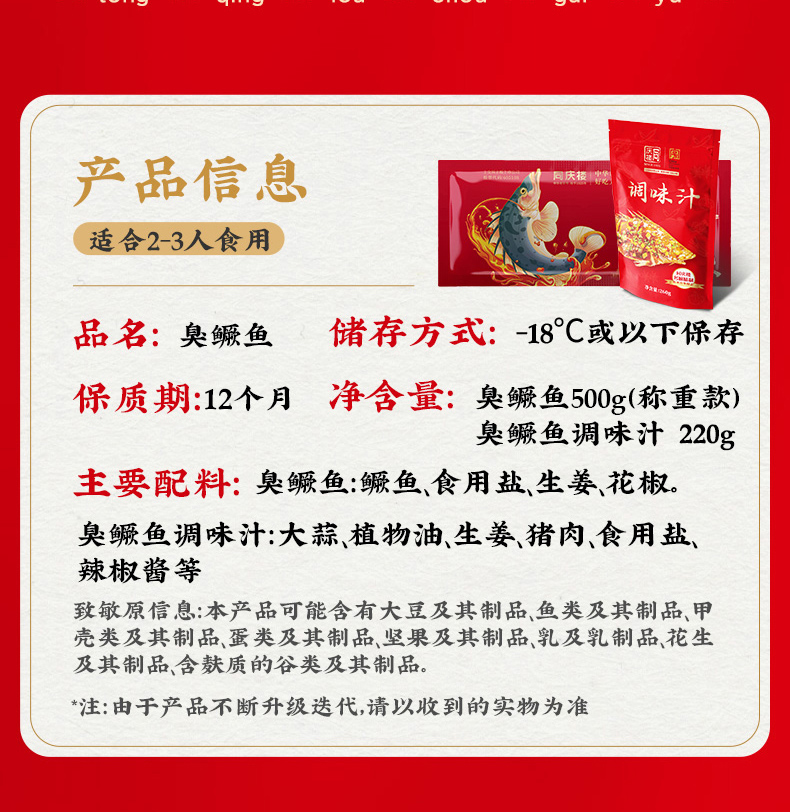 热销NO.1〡同庆楼招牌净膛臭鳜鱼500g+秘制酱料220g(新老包装随机发)