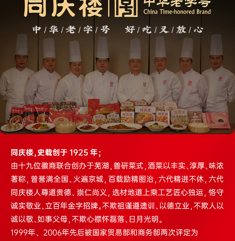 - 同庆楼品牌始创于1925年,是中华老字号,安徽和江苏两省餐饮龙头企业;是中国餐饮上市企业,百强企业,荣获多项荣誉,深受各方关注和好评,赢得海内外宾客广泛赞誉。