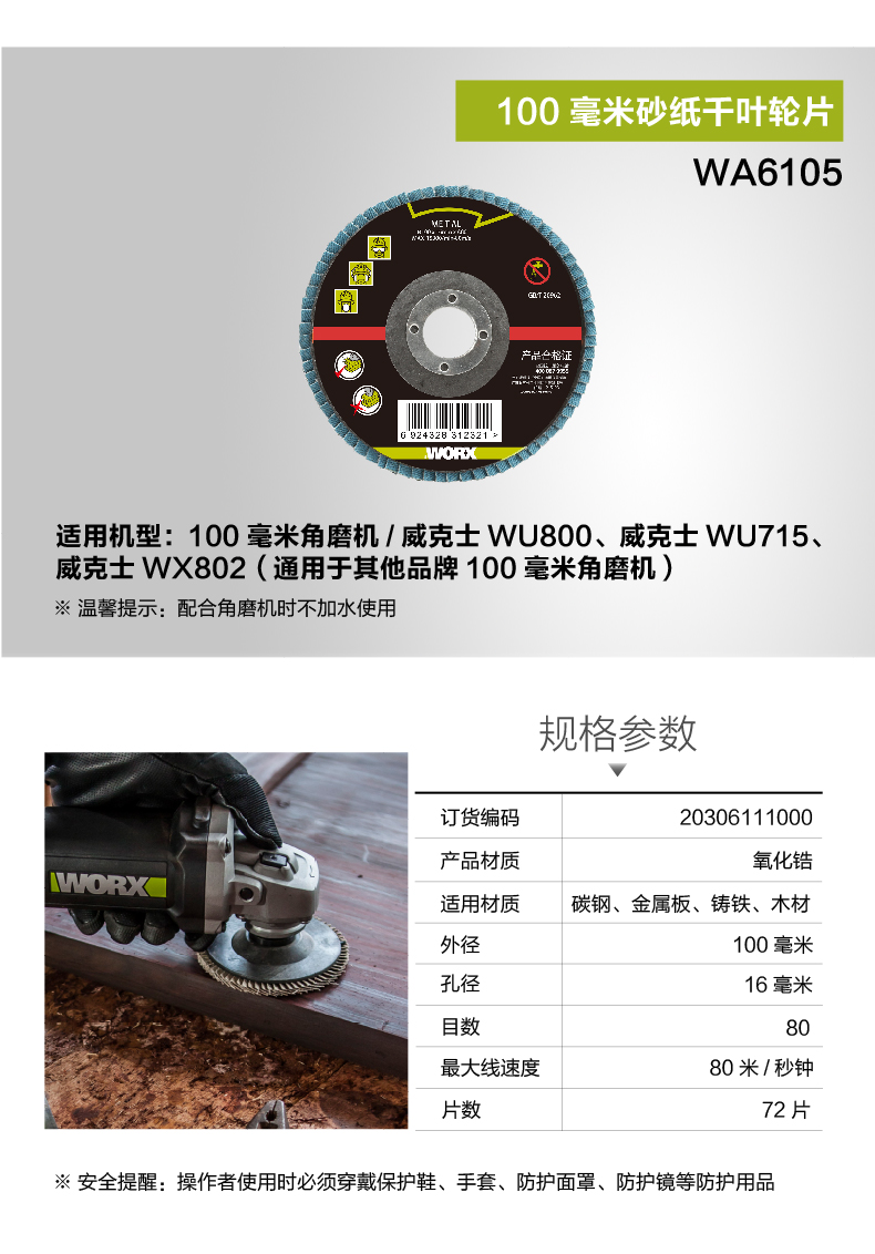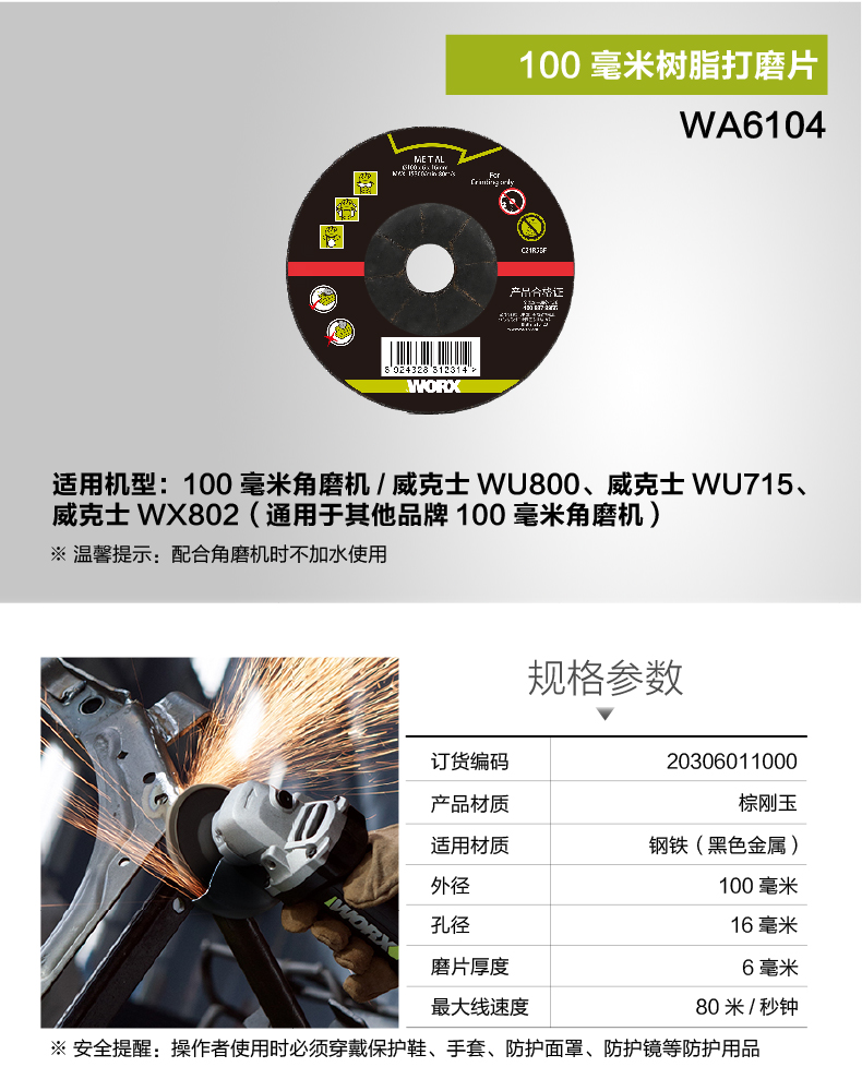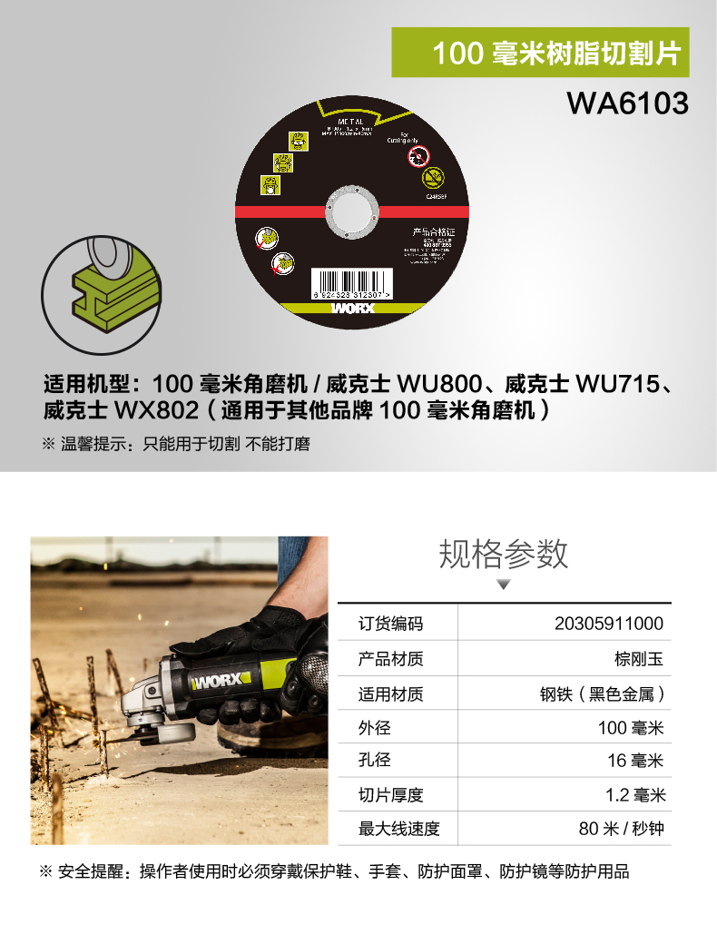 威克士100毫米角磨机附件 切割片打磨片千叶轮片 切割机电动工具
