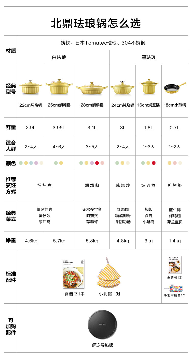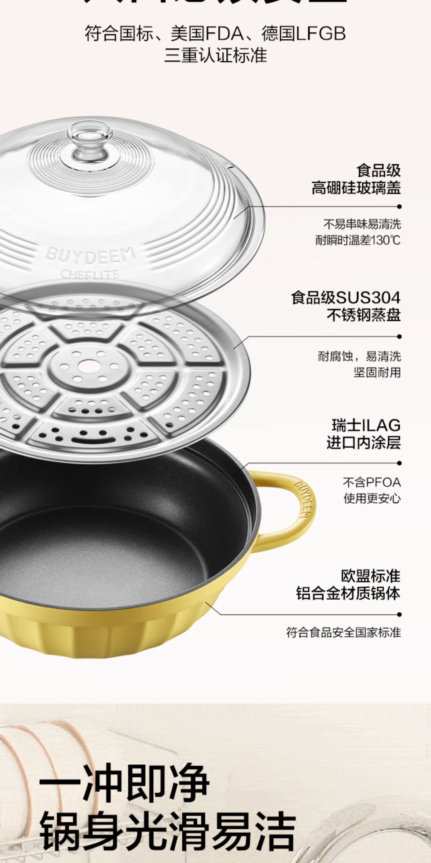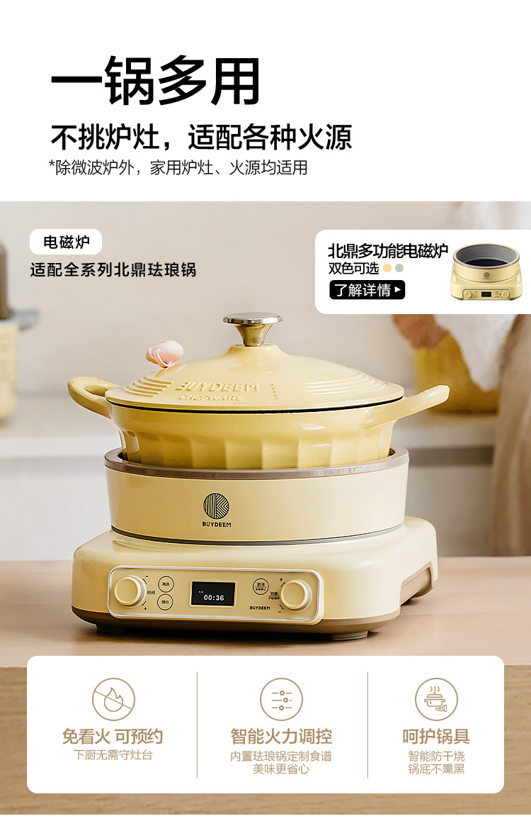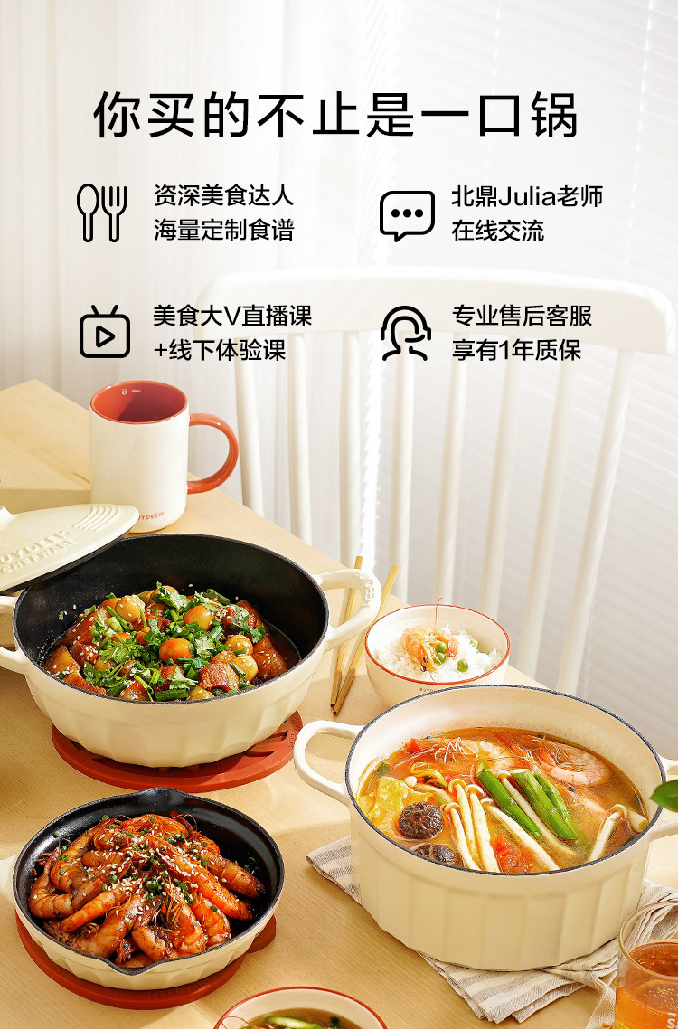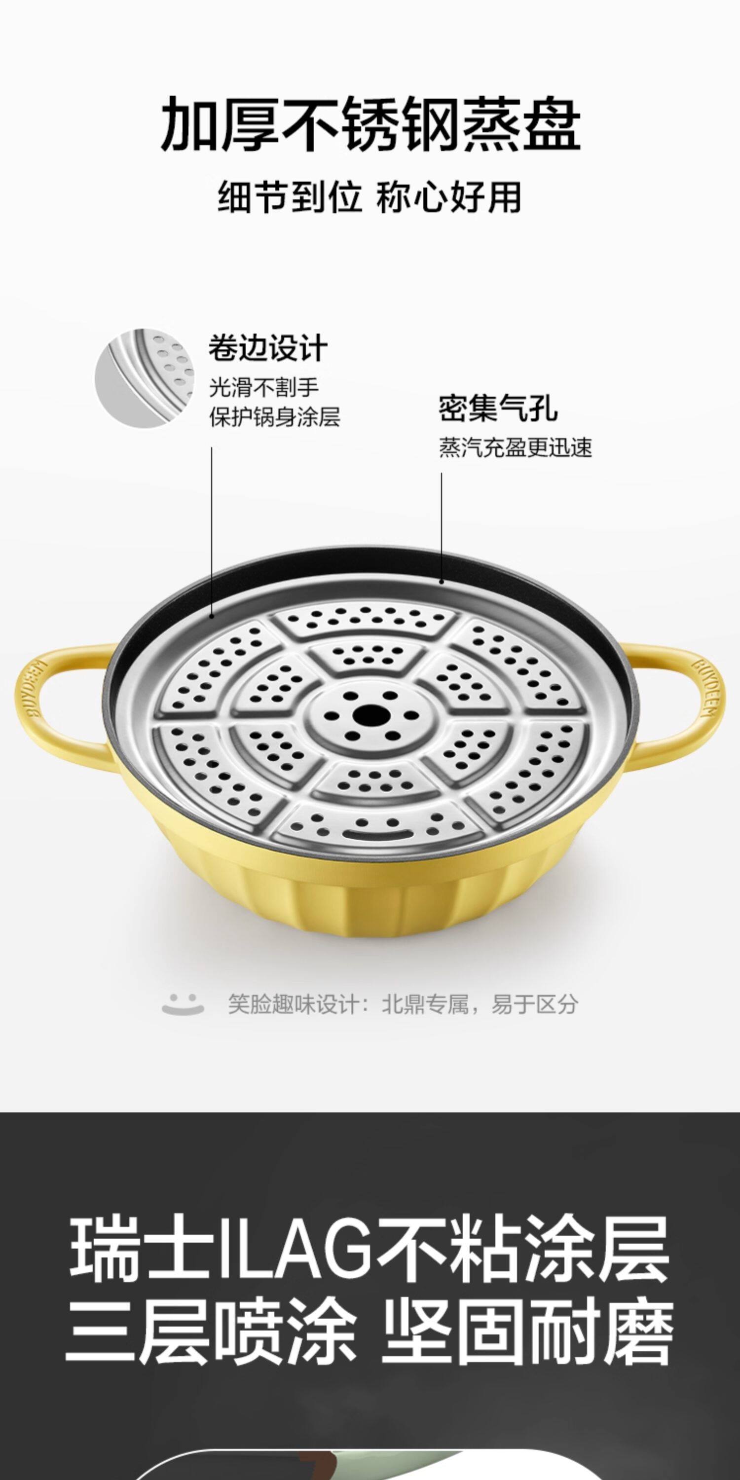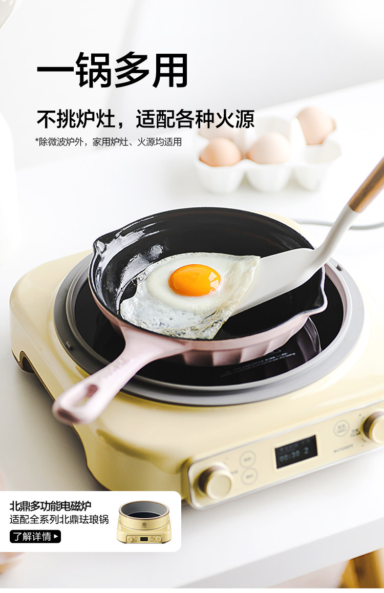 【北鼎铸铁珐琅锅集合】北鼎28cm火锅3.8L大容量蒸煮煎涮不粘锅电磁炉专用多功能家用加厚