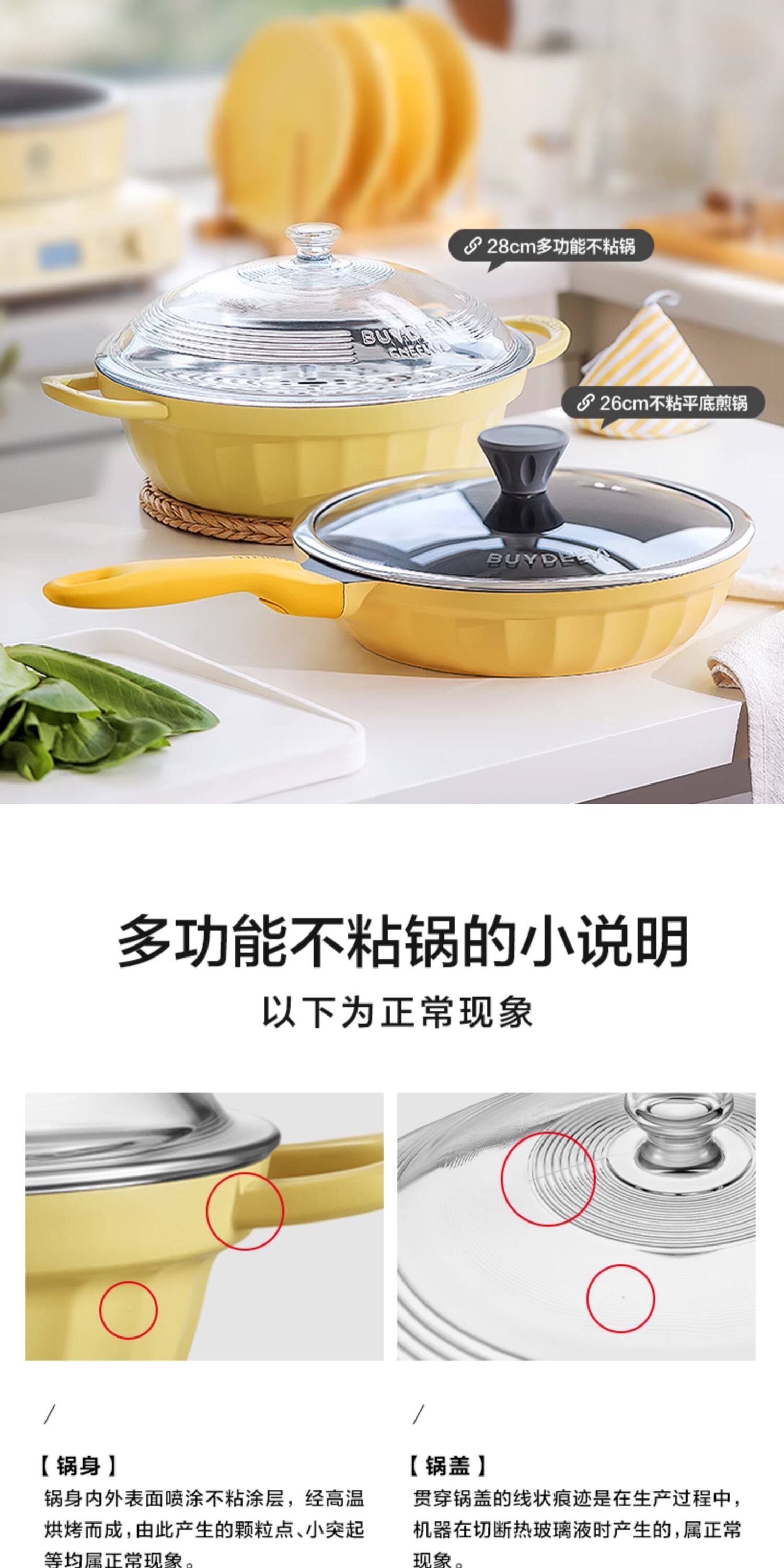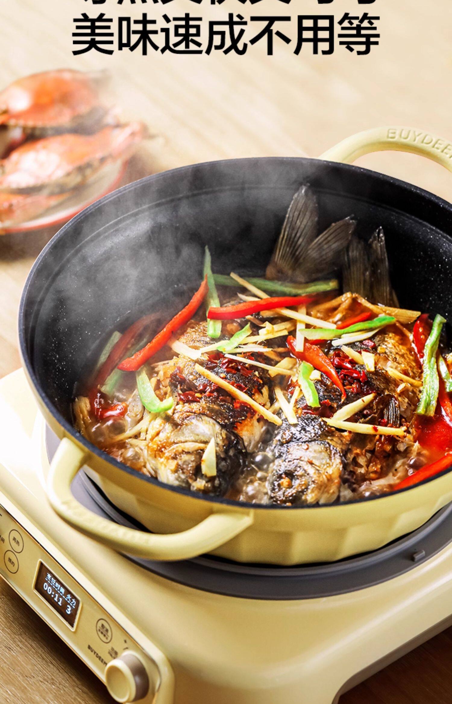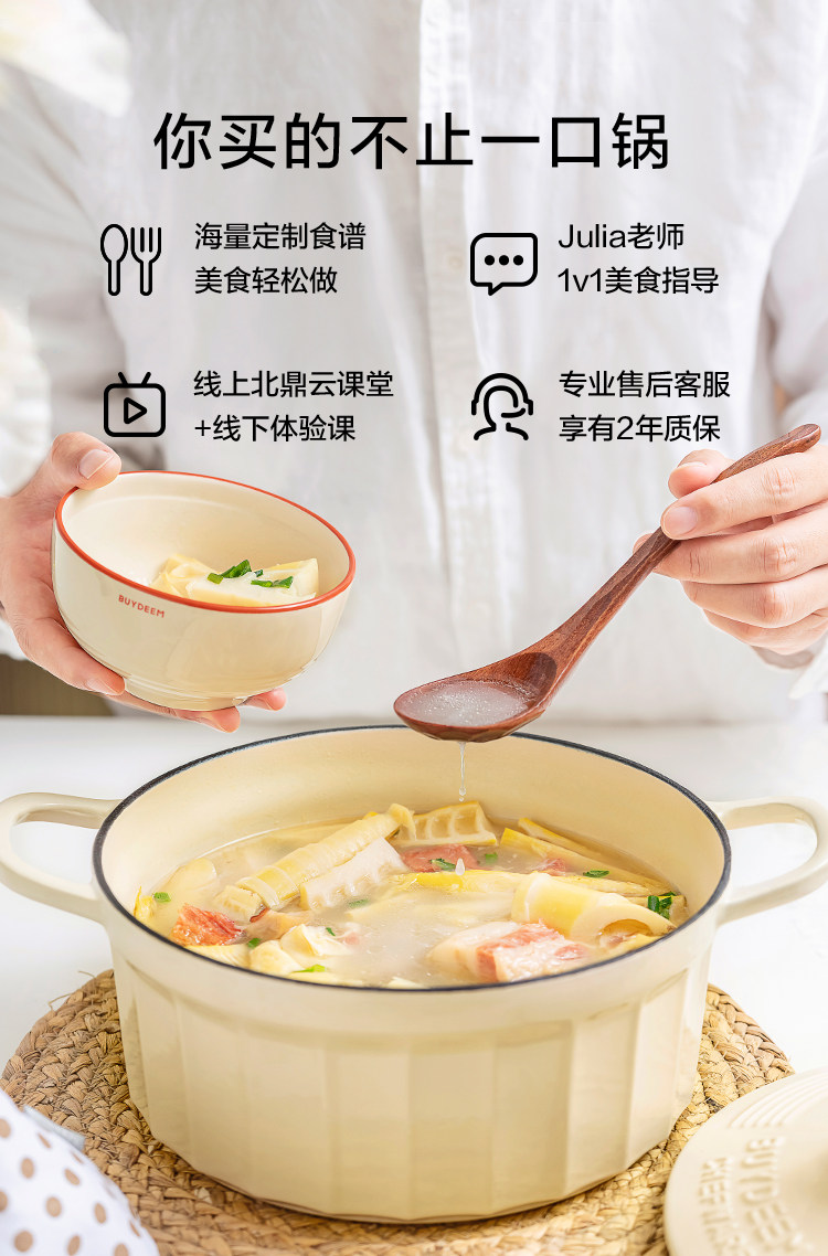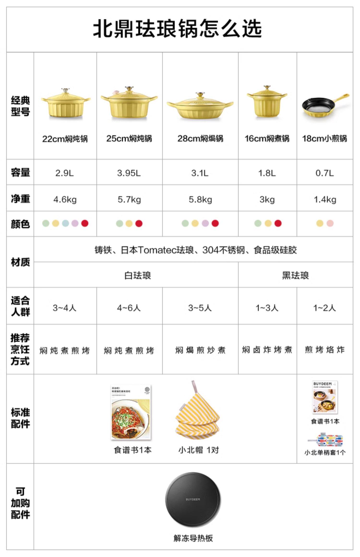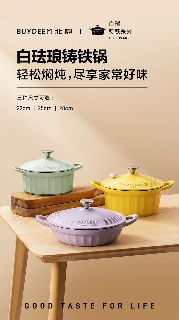 【北鼎铸铁珐琅锅集合】北鼎28cm火锅3.8L大容量蒸煮煎涮不粘锅电磁炉专用多功能家用加厚