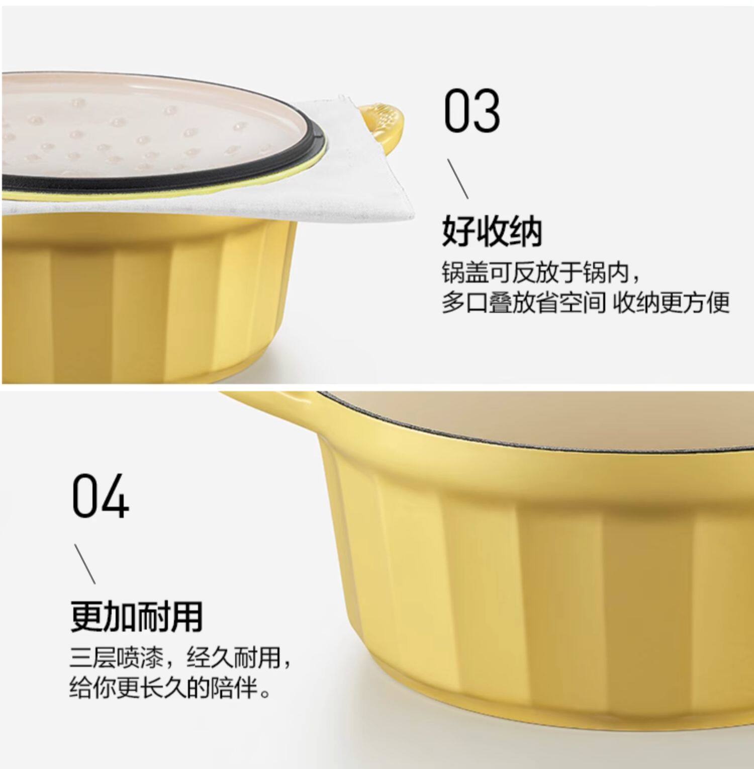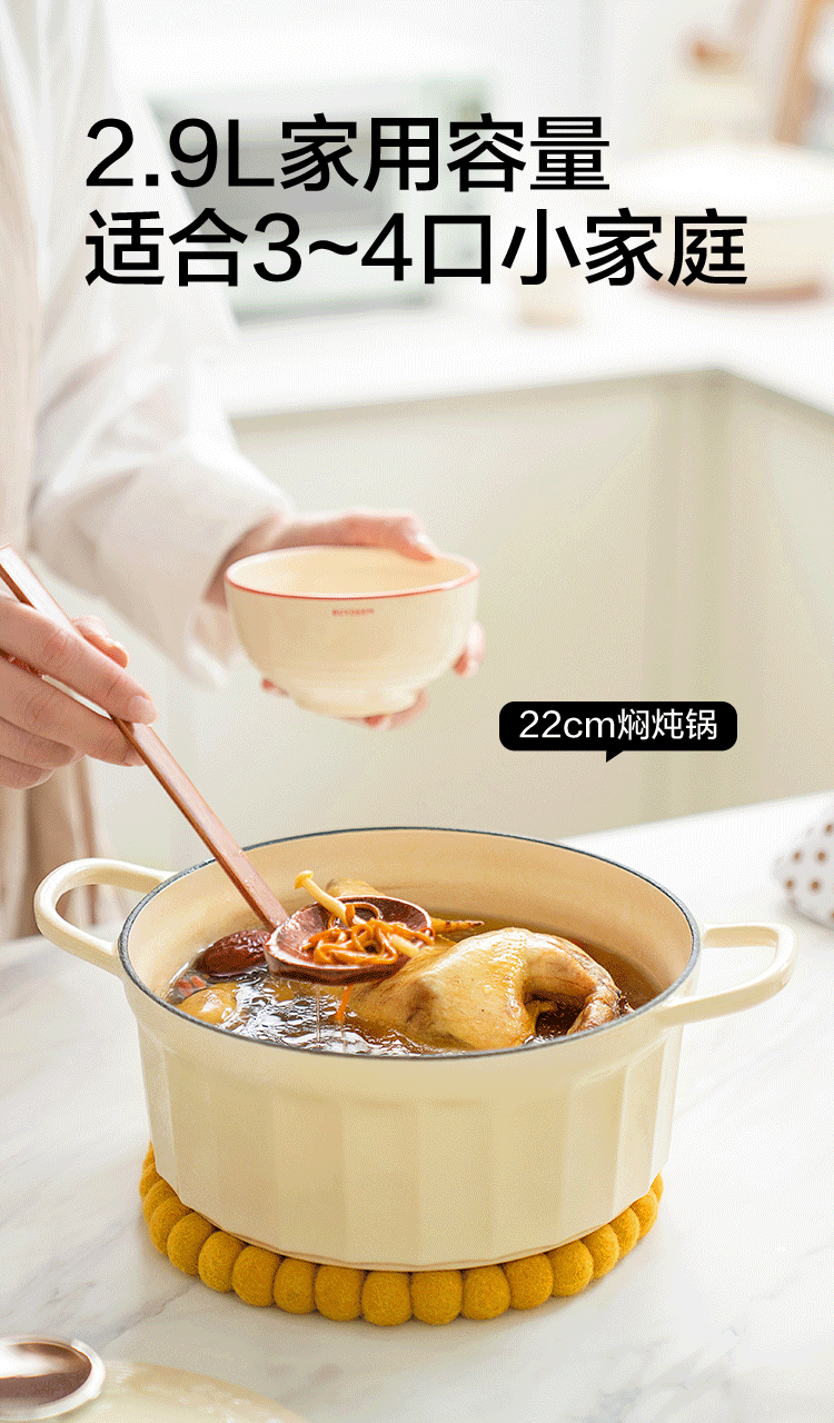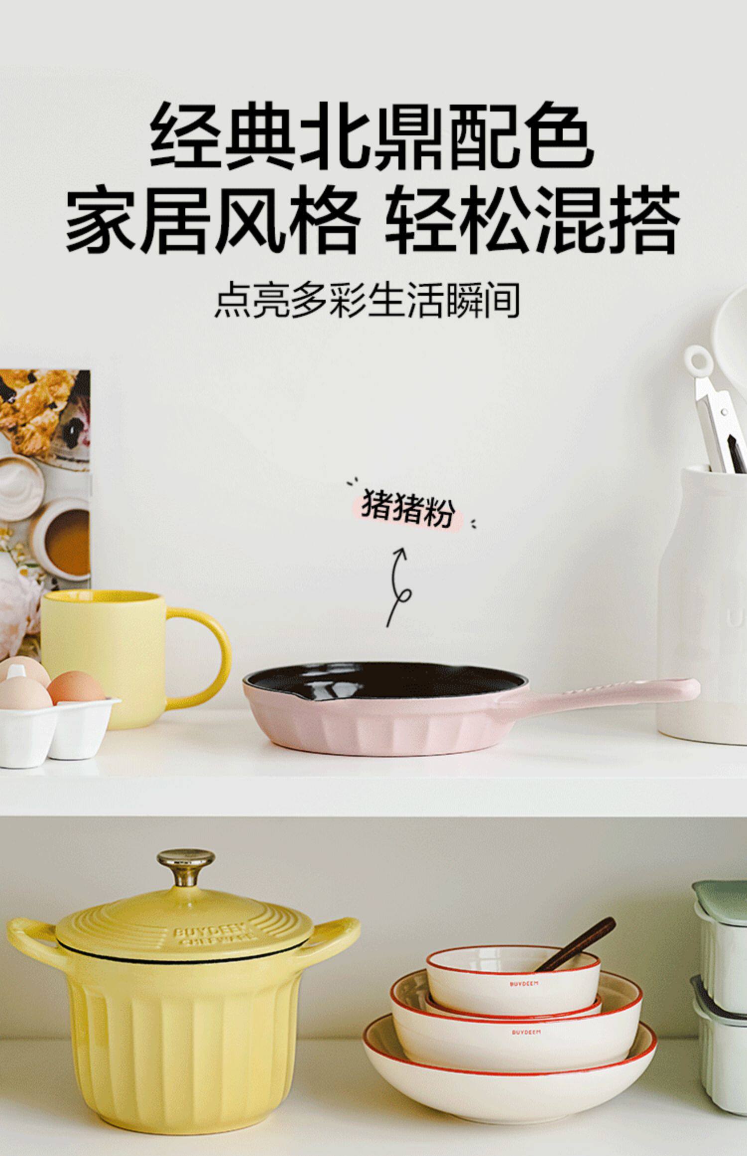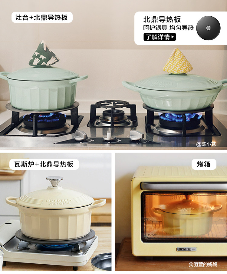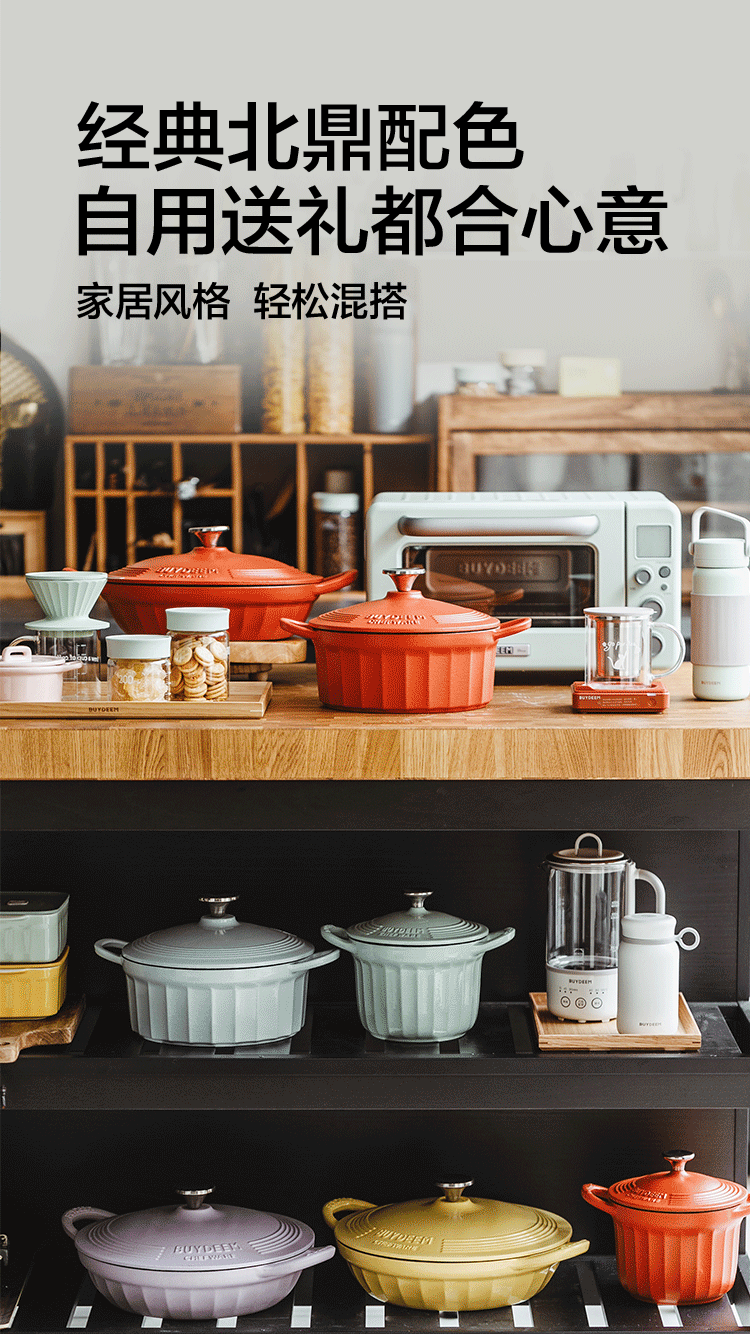 【北鼎铸铁珐琅锅集合】北鼎28cm火锅3.8L大容量蒸煮煎涮不粘锅电磁炉专用多功能家用加厚