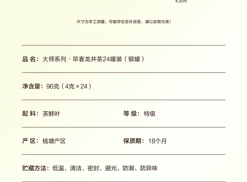 小罐茶大师系列早春龙井茶24罐装(银罐)