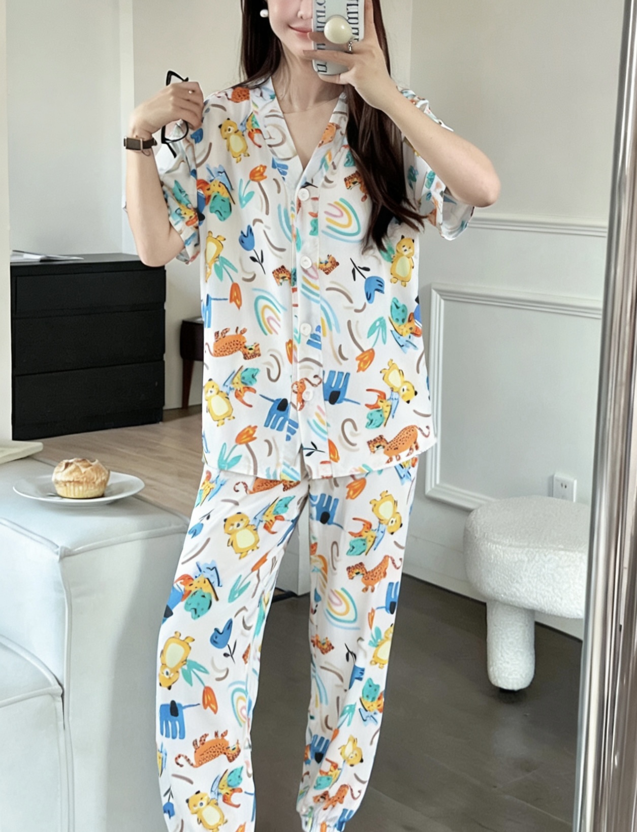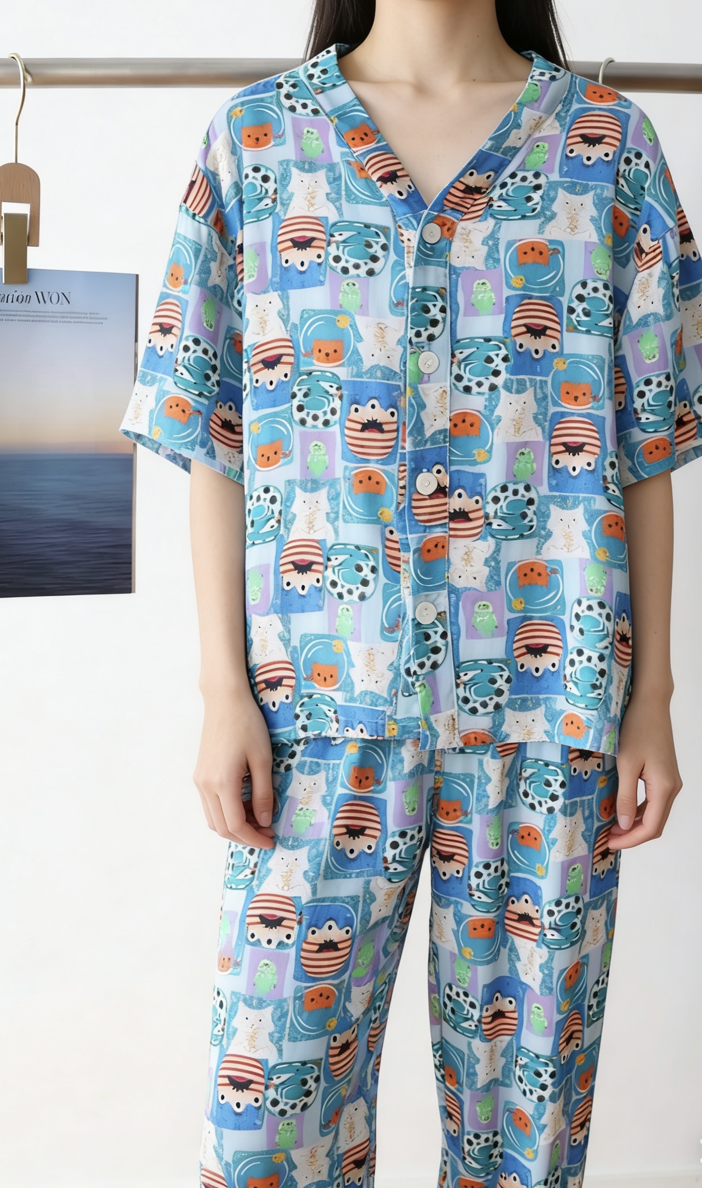 品名:亲子款莱莎绸涂鸦家居服