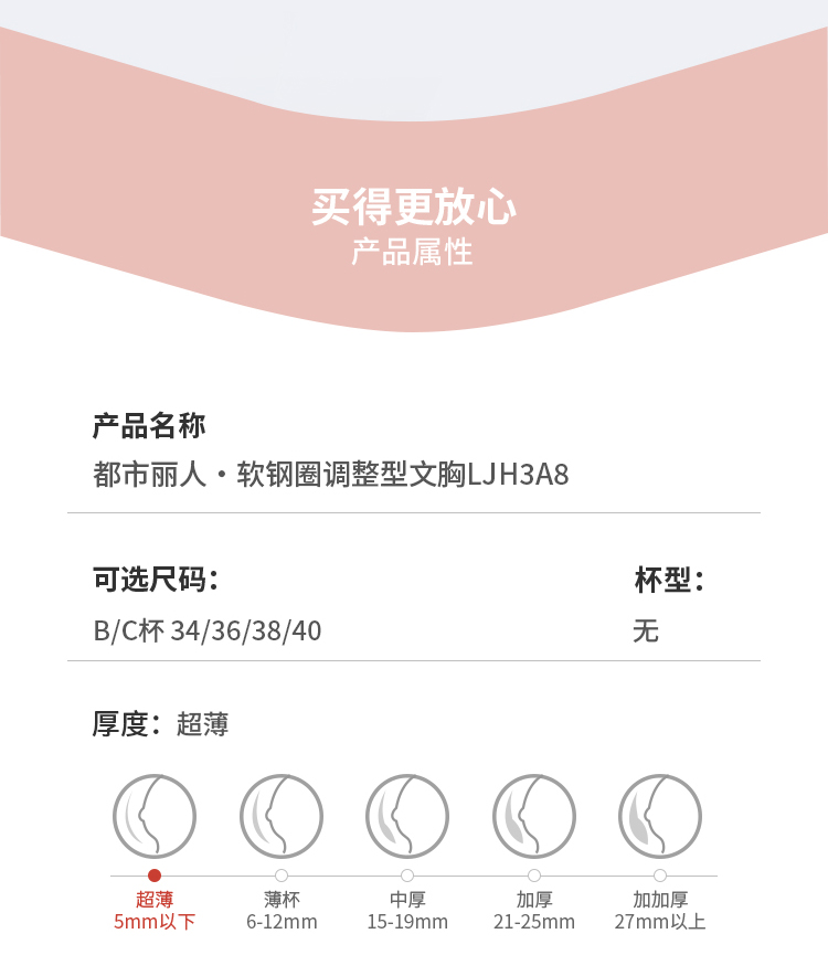 都市丽人舒软挺塑调整型文胸超薄蕾丝软钢圈塑身文胸LJH3A8