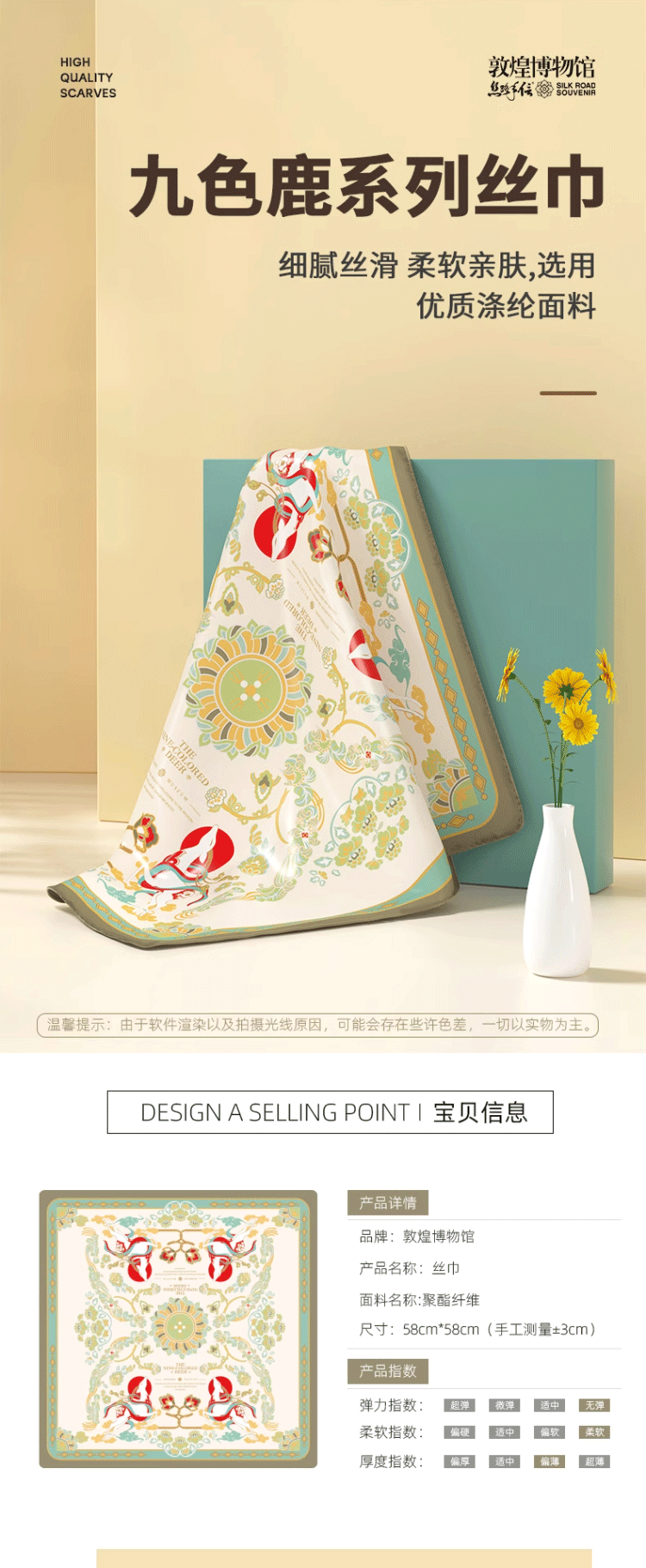 敦煌博物馆 九色鹿系列丝滑亲肤涤纶丝巾