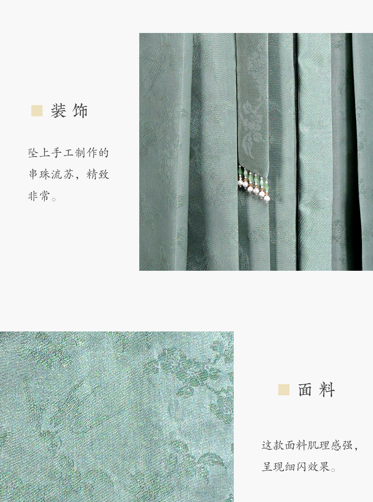 2、细节展示:材质、工艺、做工等;