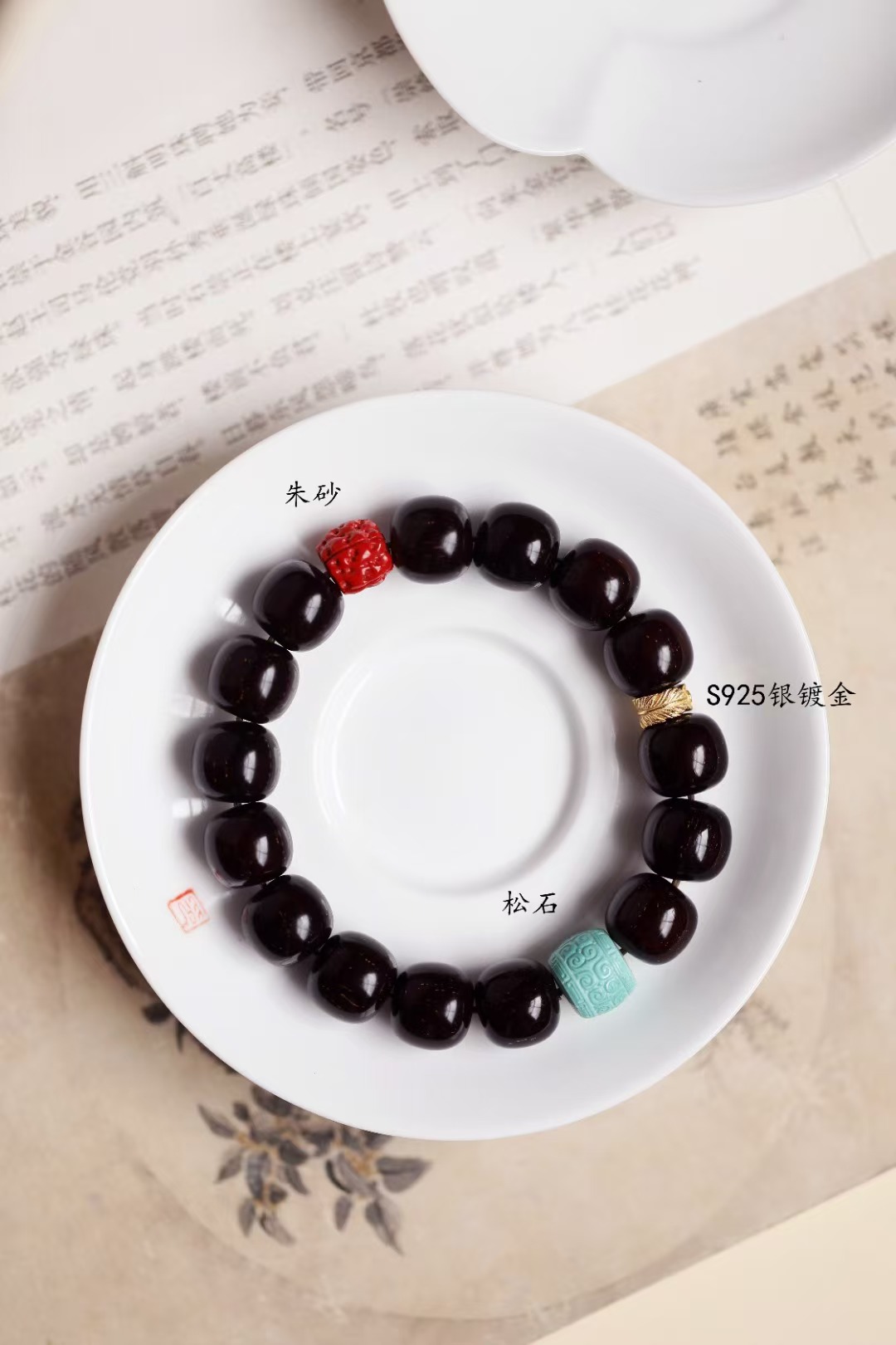 配件:S925银镀金、松石、朱砂