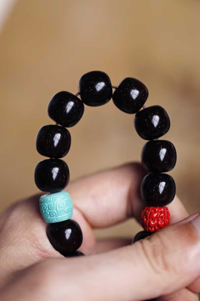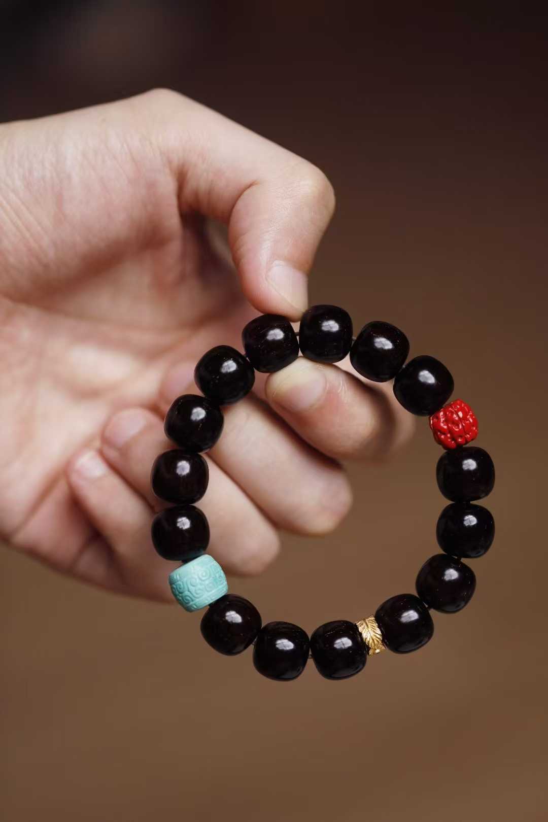 以紫檀为主珠,色润质坚;