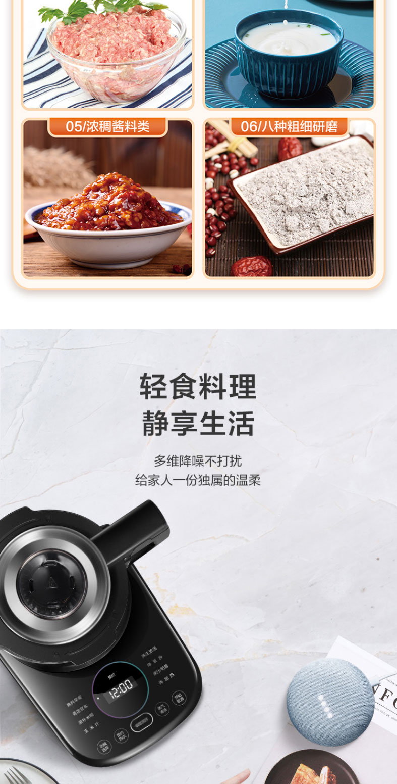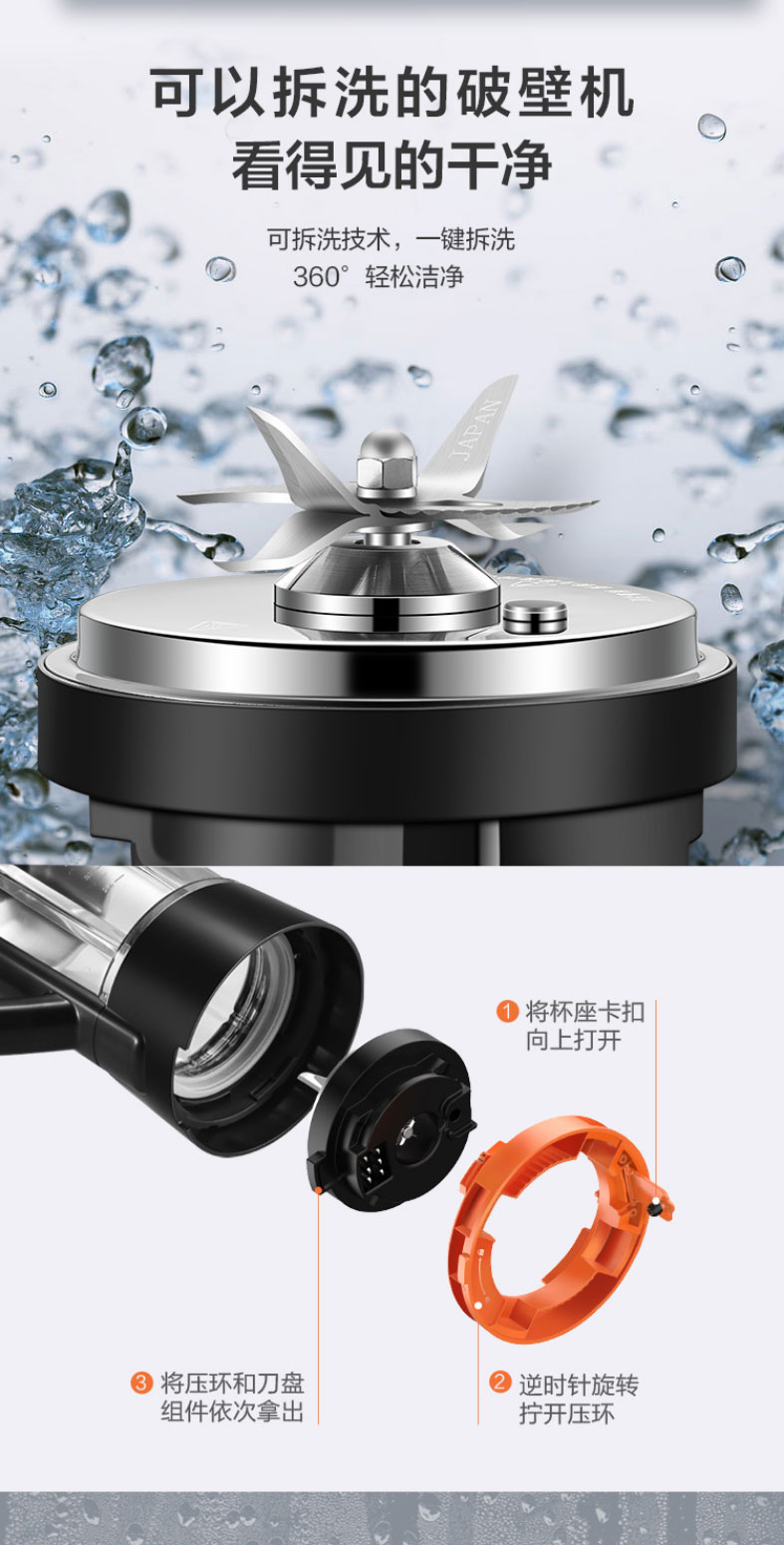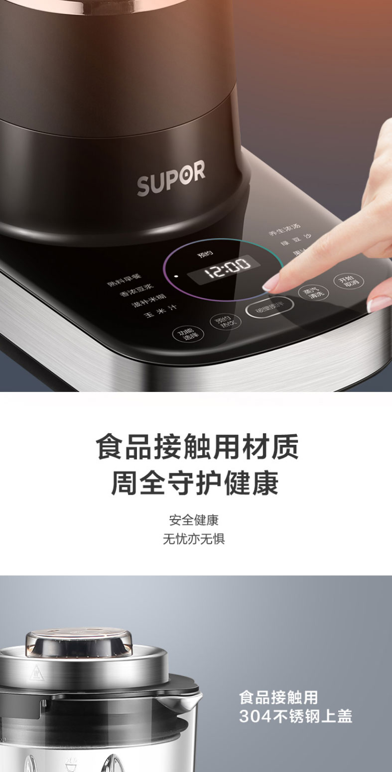 苏泊尔轻音可拆洗破壁机蒸汽清洗多功能加热破壁机超薄电机40000转速 一机双杯SP65S
