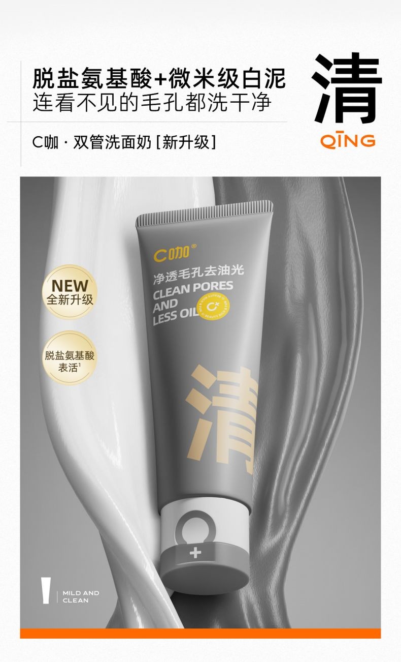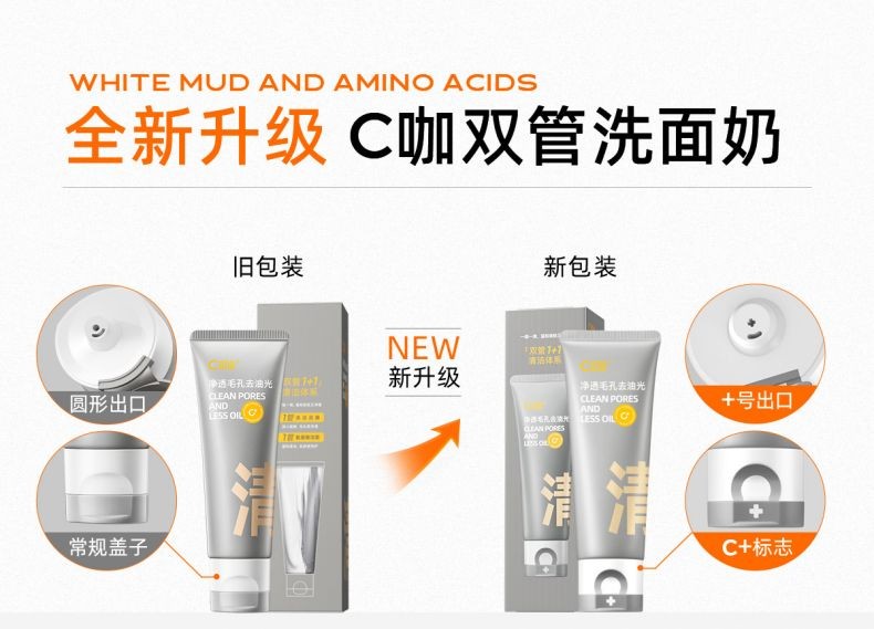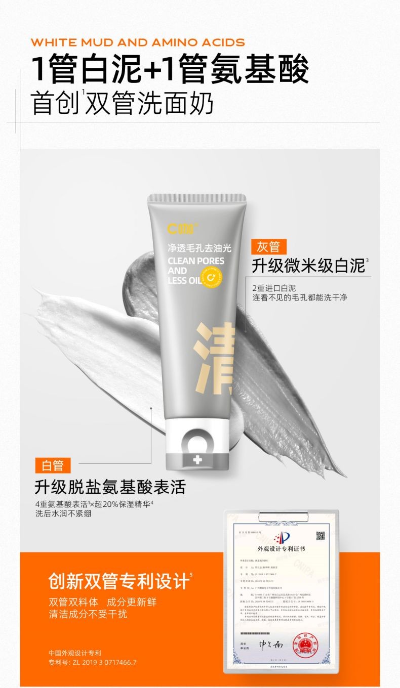 【自营】 C咖 氨基酸白泥清透净肤双管洁面乳 80g