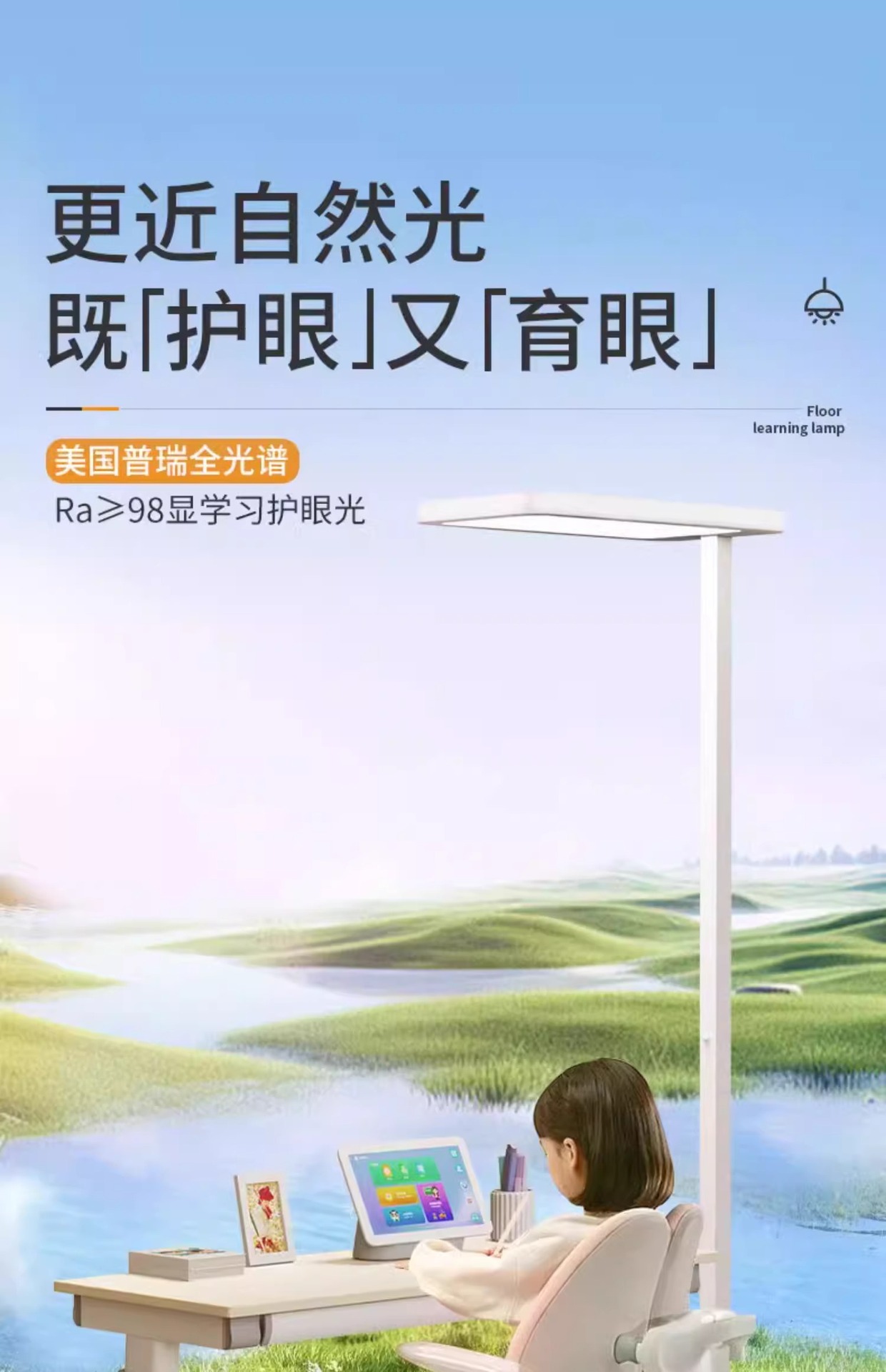 【落地学习灯,眼睛0负担!】全光谱落地台灯,护眼学习专用;儿童书桌阅读防近视教室灯,开、关、调节亮度一目了然,小孩自己也能快速学会上手操作!