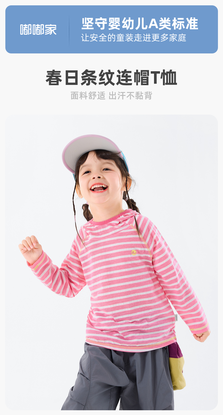 嘟嘟家女童T恤春装儿童上衣连帽女孩内搭宽松宝宝童装洋气春秋款C6ATX074