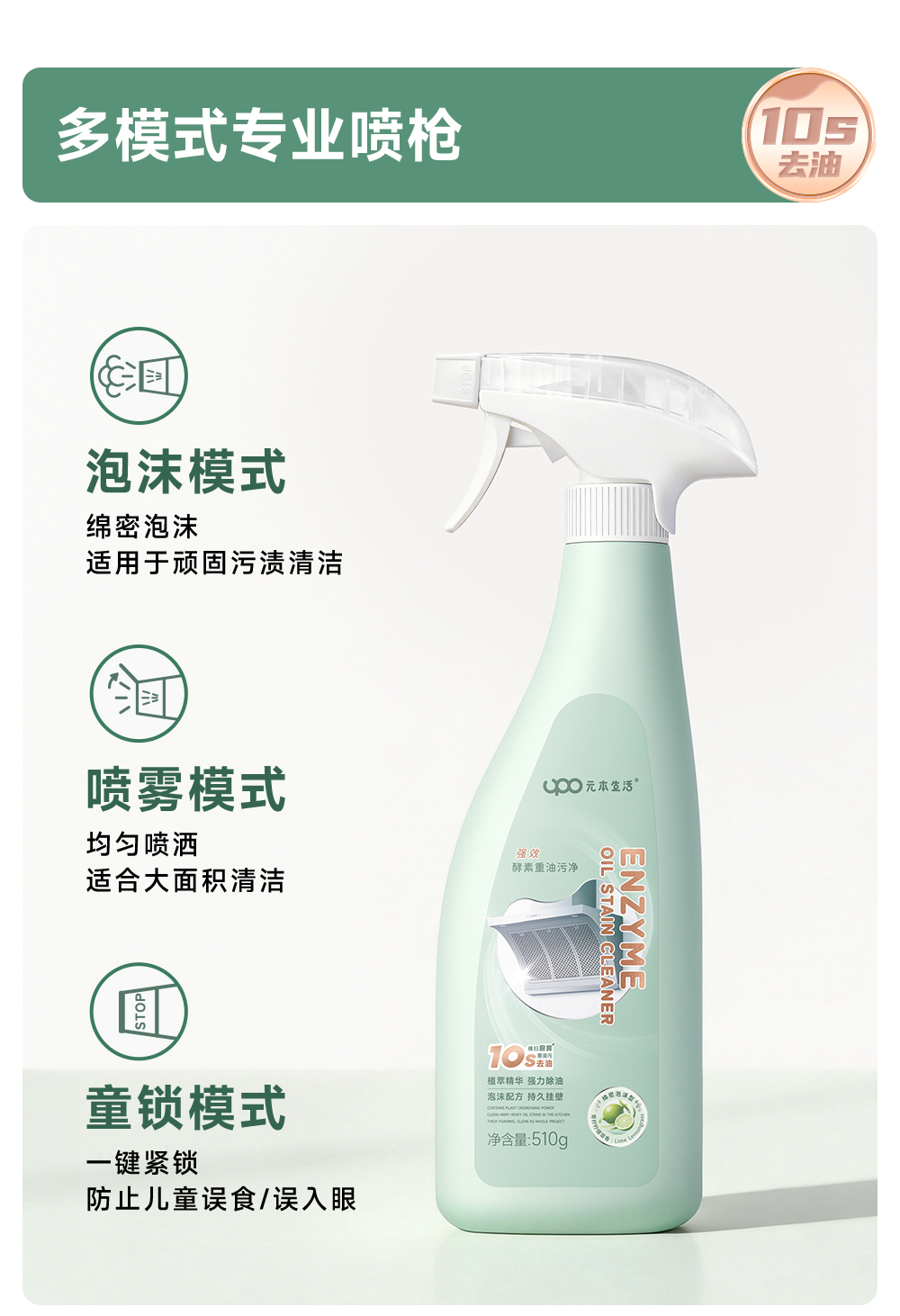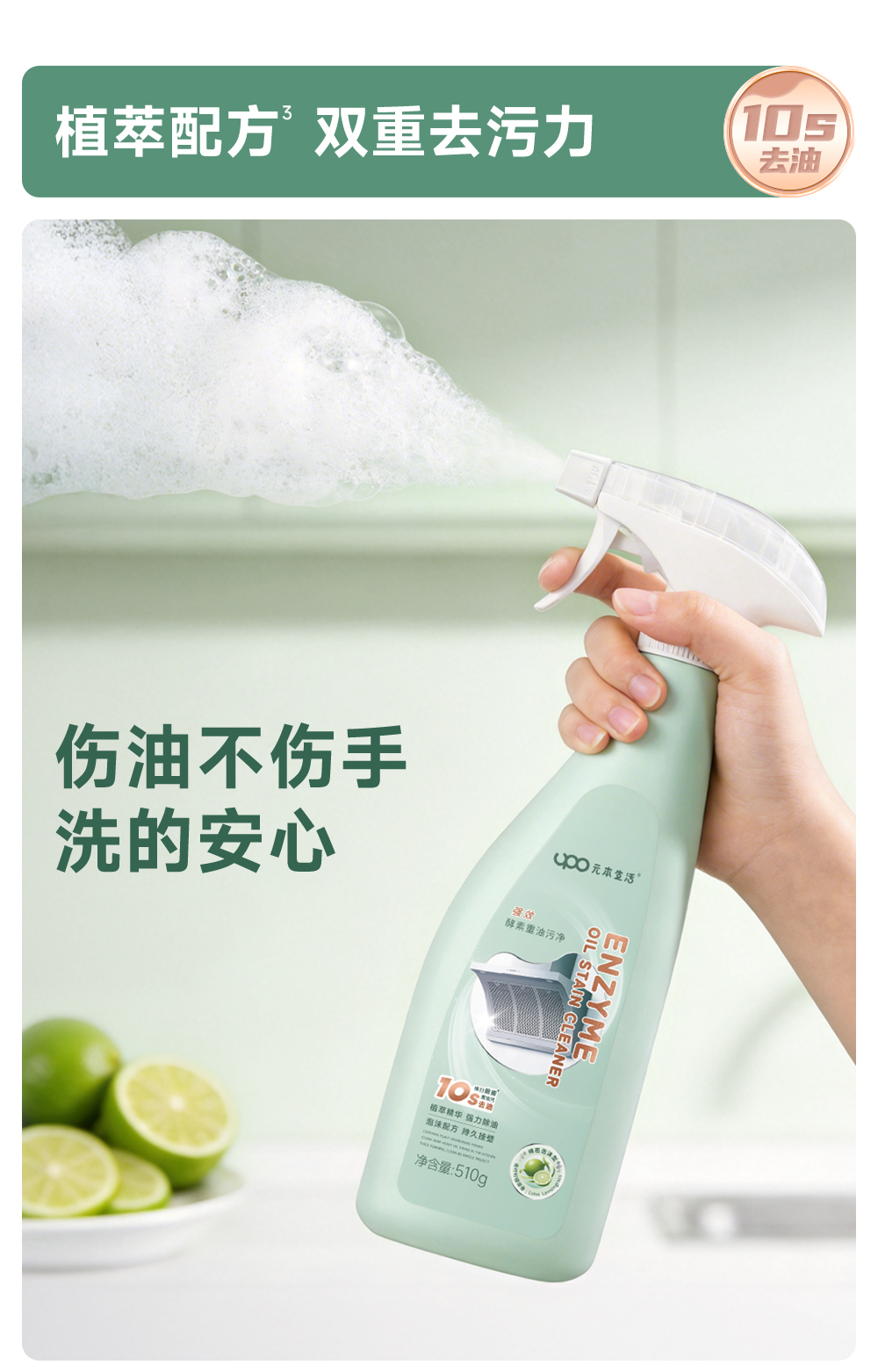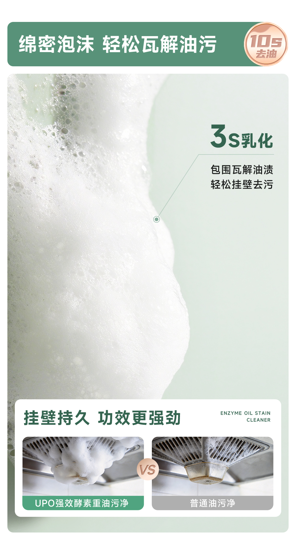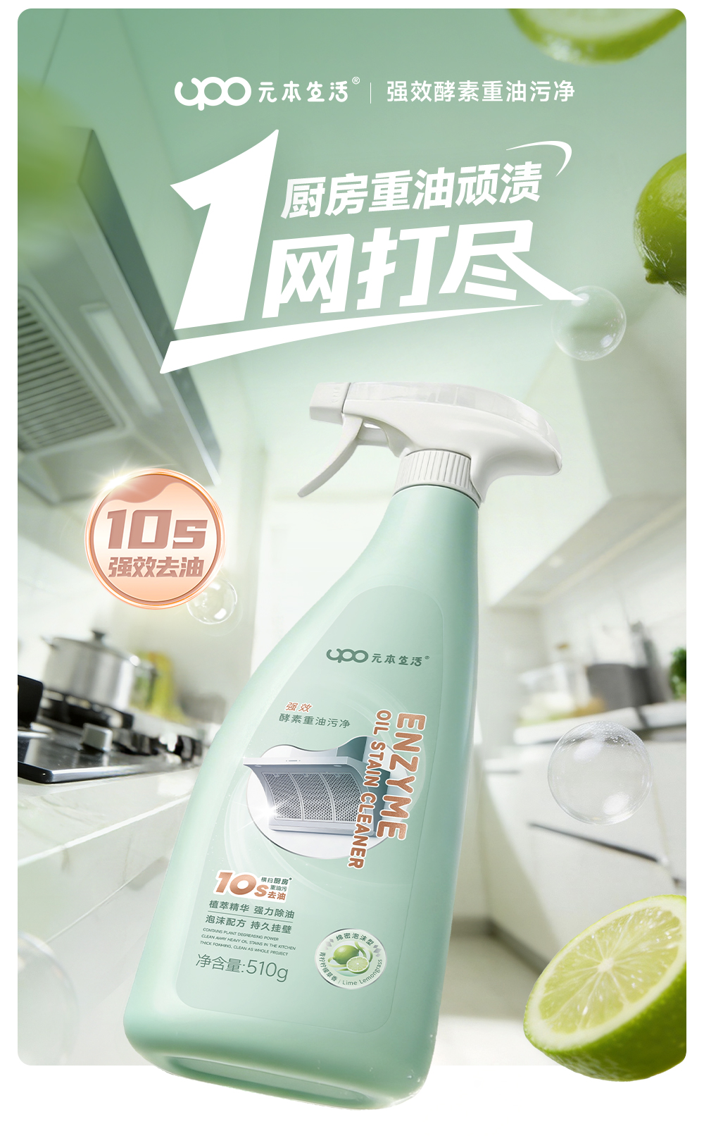 【10秒去油!】UPO/元本生活强效酵素重油污净(绵密泡沫型)510g/瓶 一喷即溶,免拆洗,横扫重油污;三重植萃养护,除jun99%;多场景适用