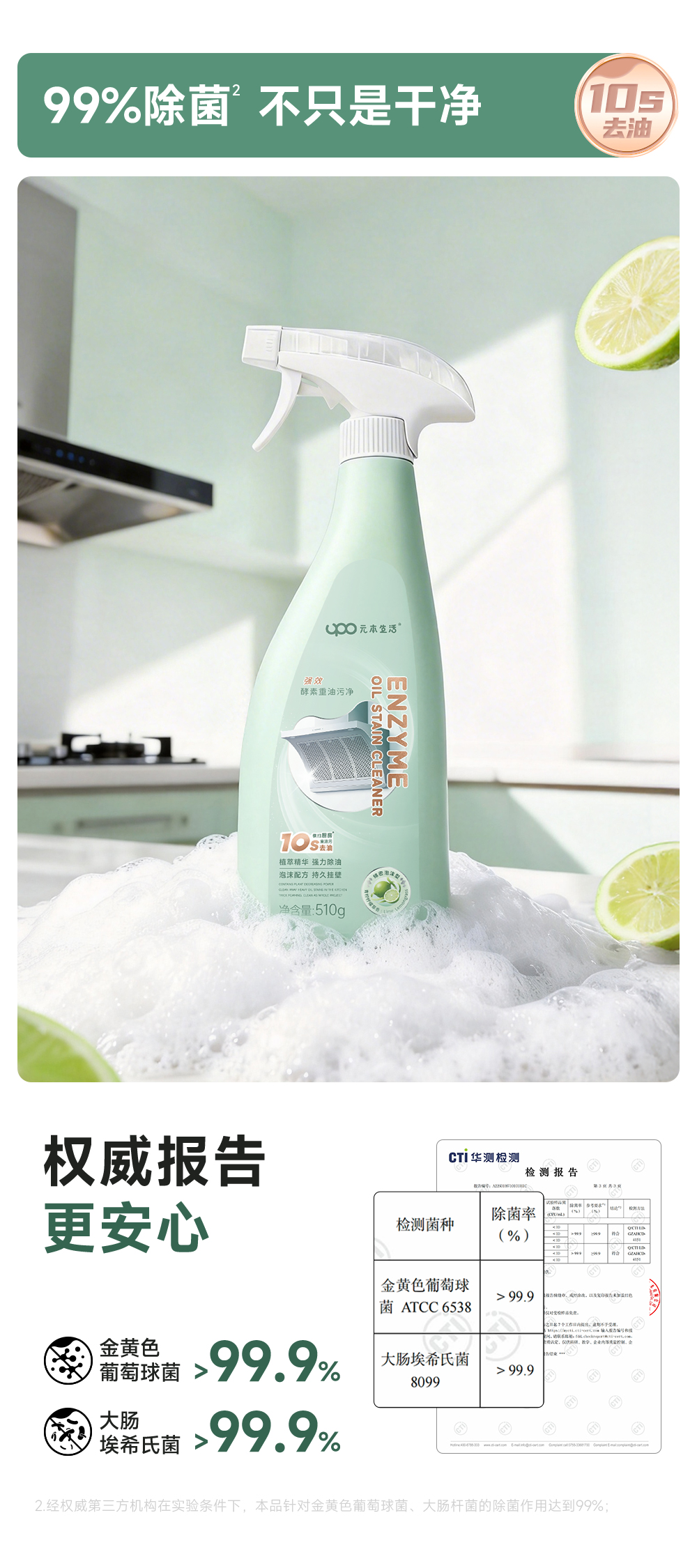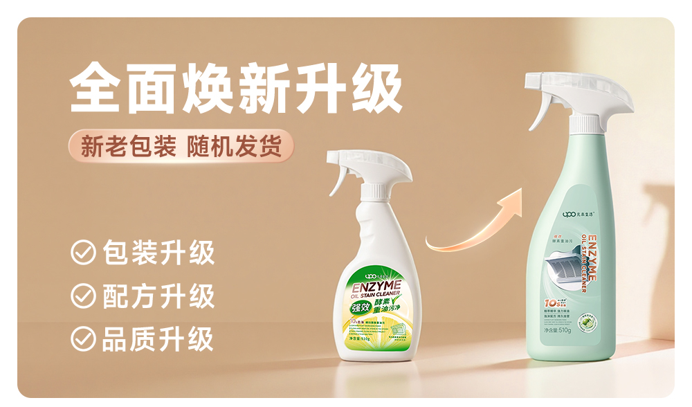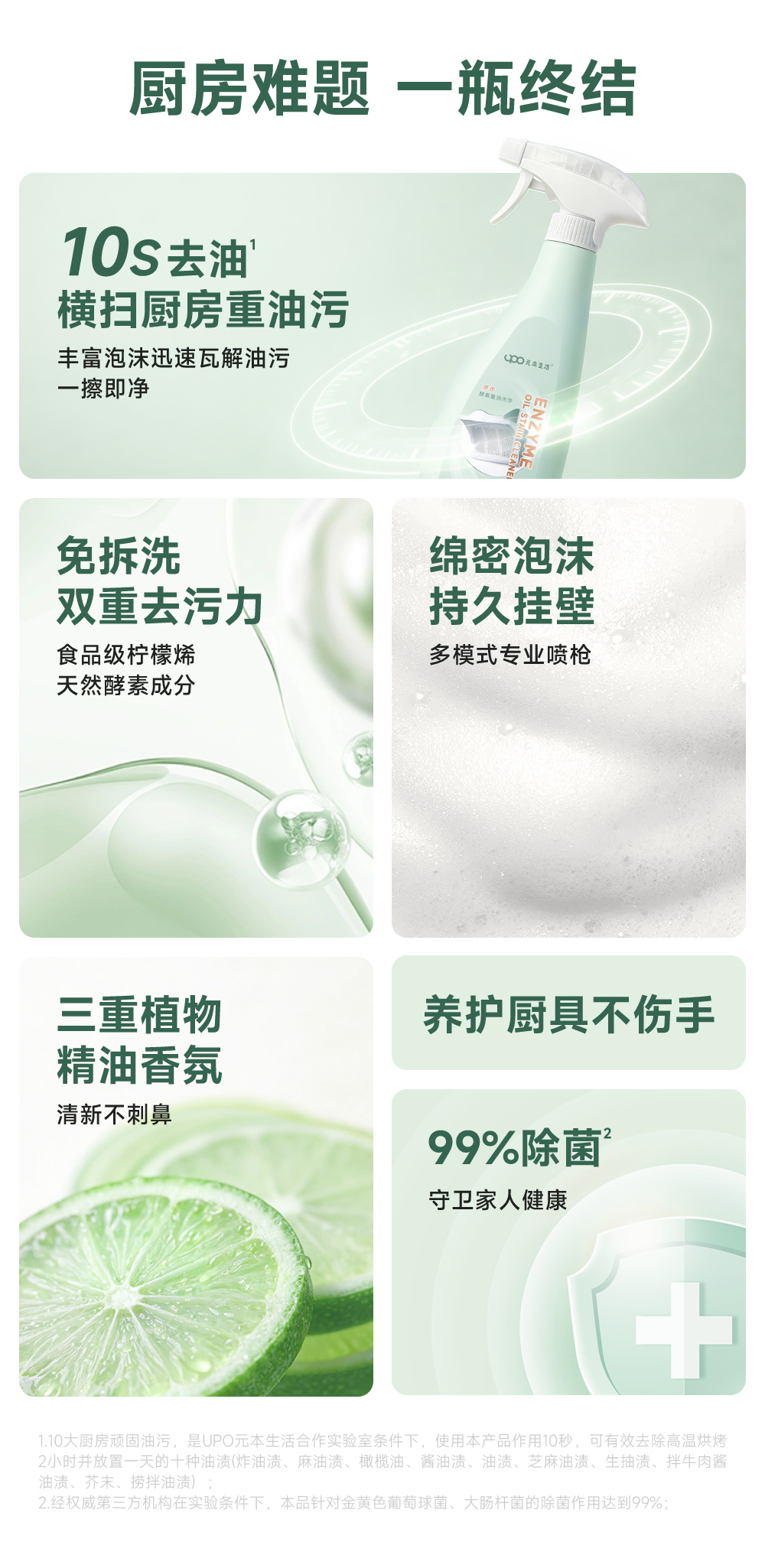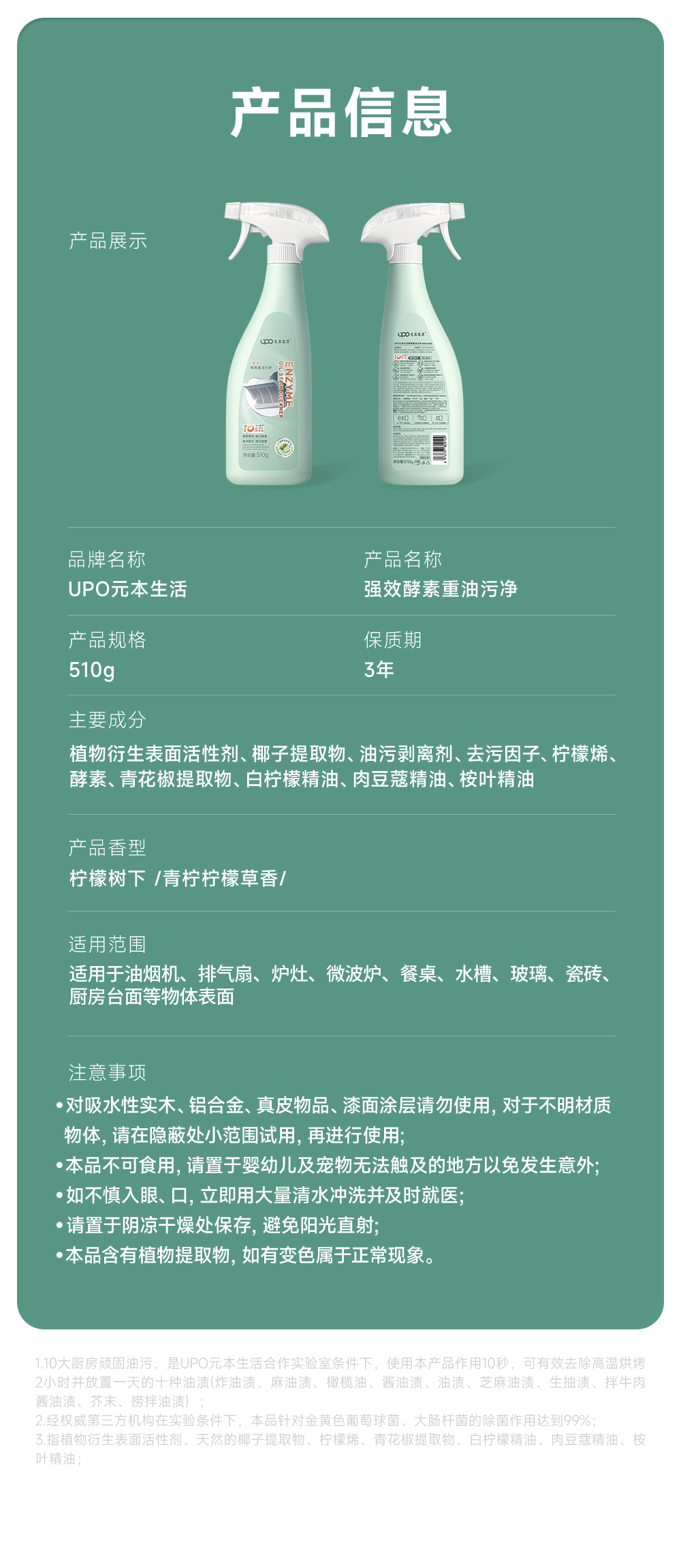 【10秒去油!】UPO/元本生活强效酵素重油污净(绵密泡沫型)510g/瓶 一喷即溶,免拆洗,横扫重油污;三重植萃养护,除jun99%;多场景适用