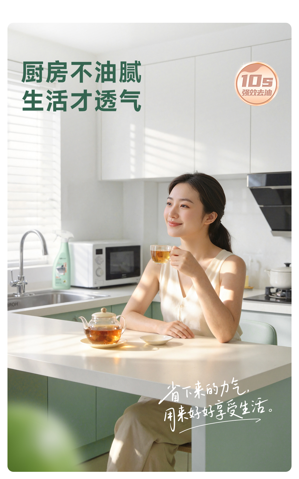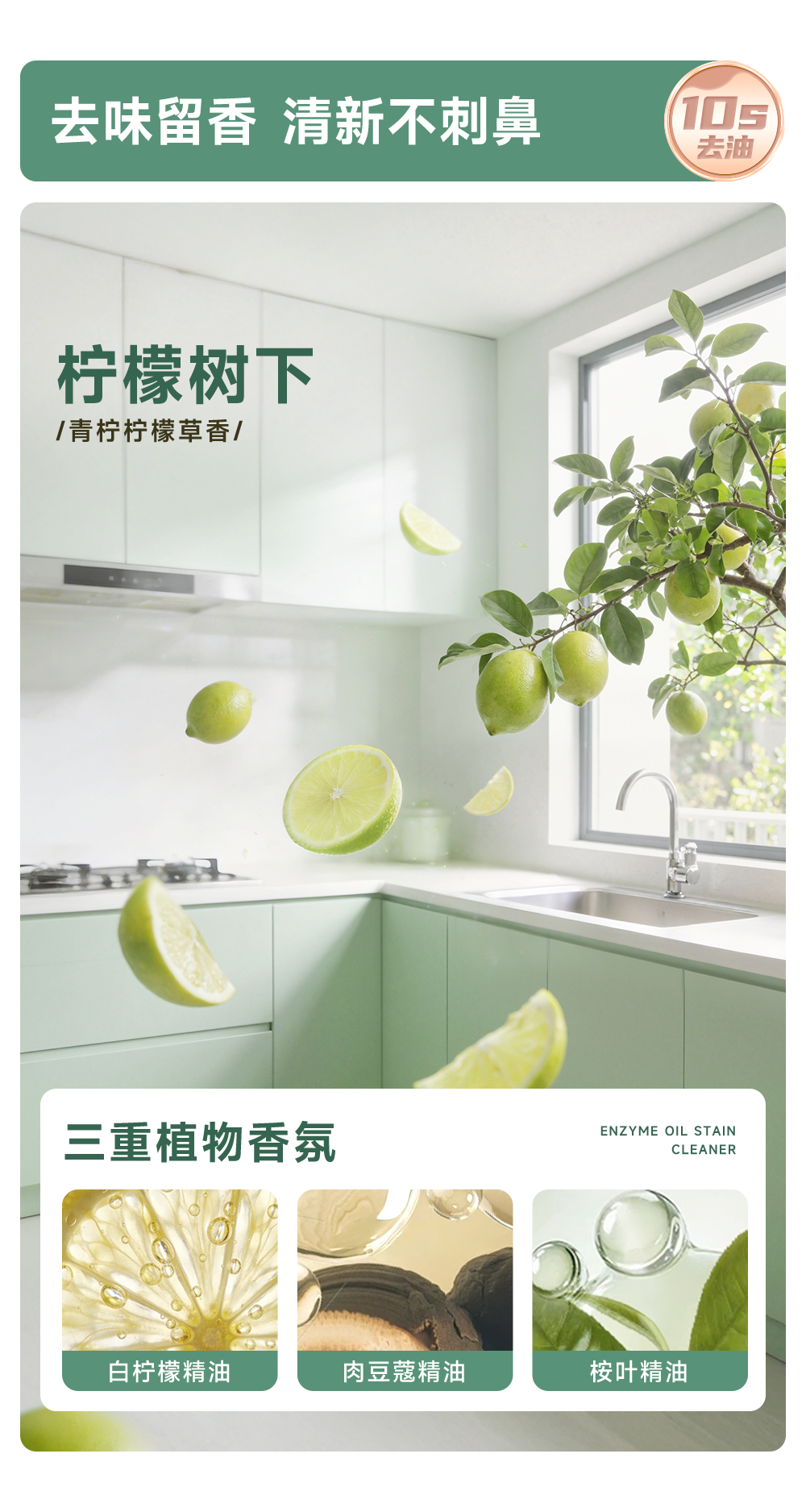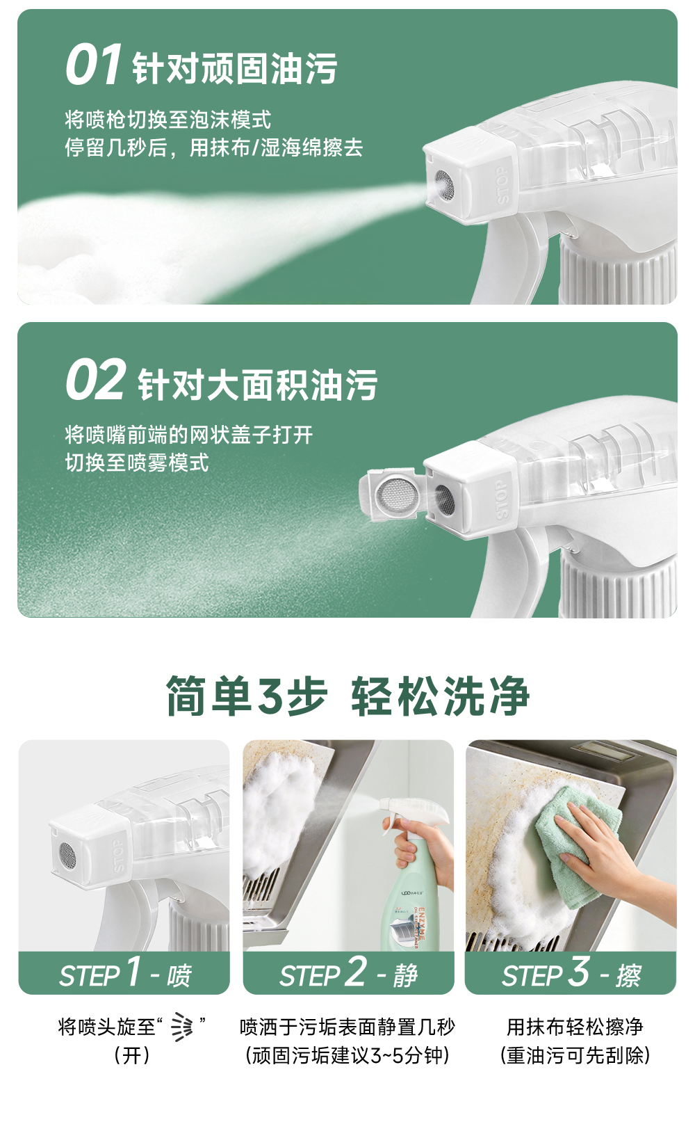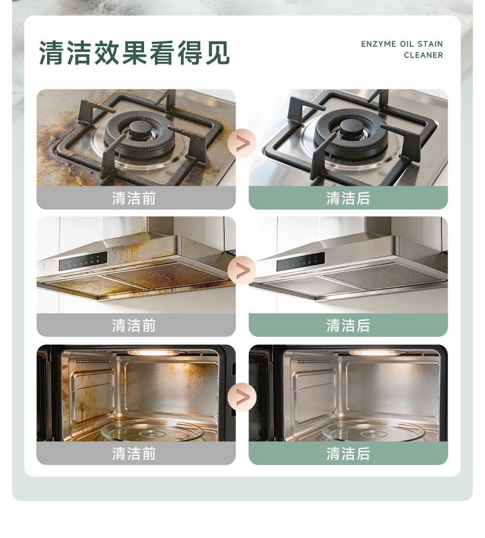 【10秒去油!】UPO/元本生活强效酵素重油污净(绵密泡沫型)510g/瓶 一喷即溶,免拆洗,横扫重油污;三重植萃养护,除jun99%;多场景适用