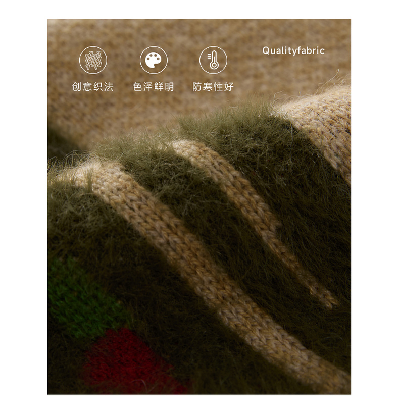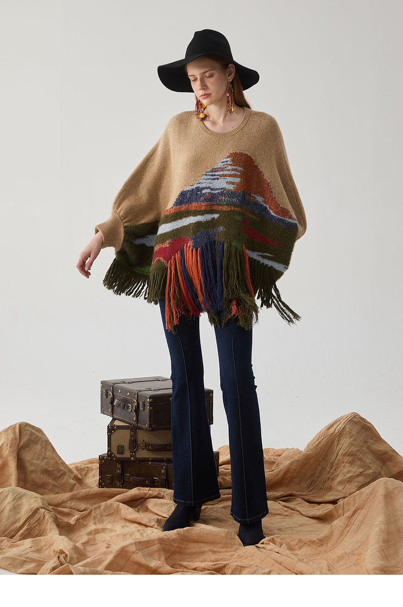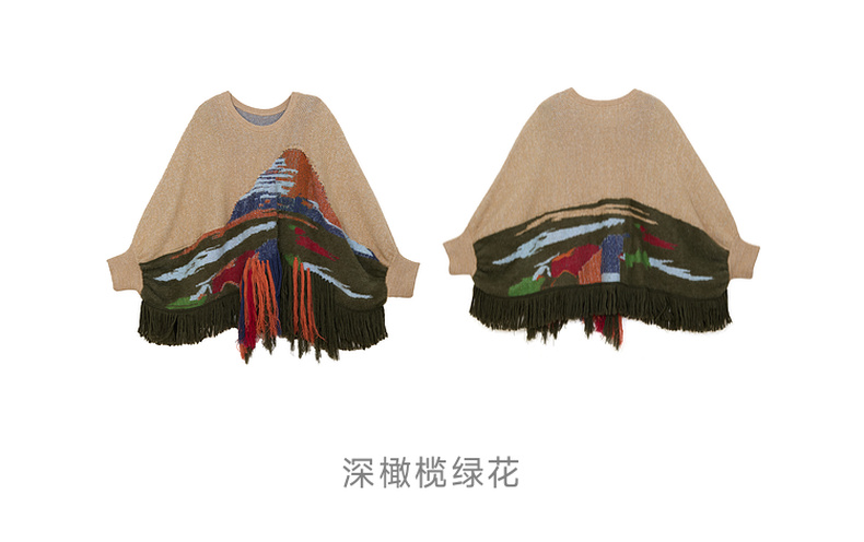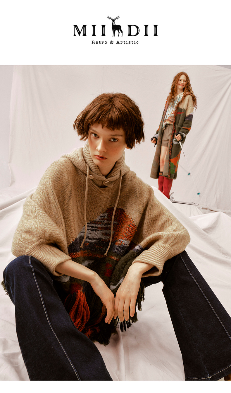 谜底套头针织衫女2024冬季新品复古风宽松A型中长款毛衣244MZ1867