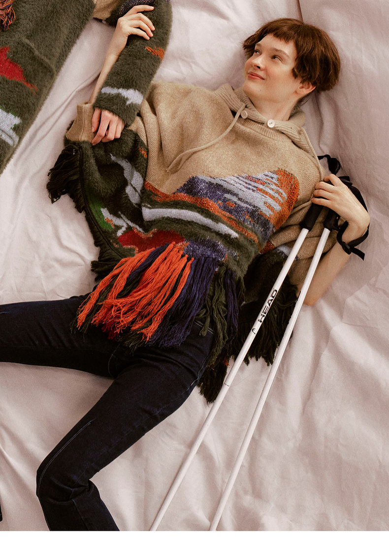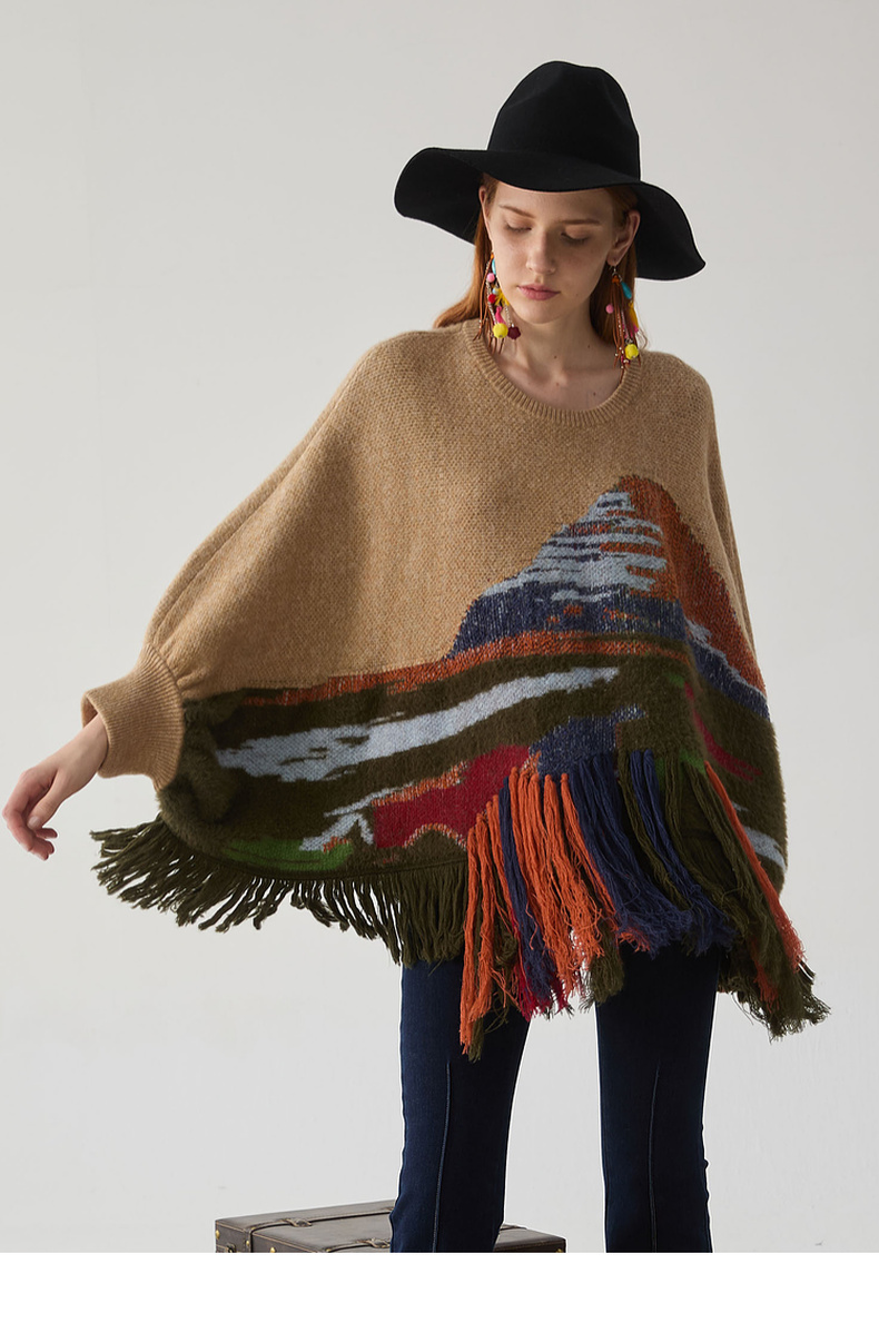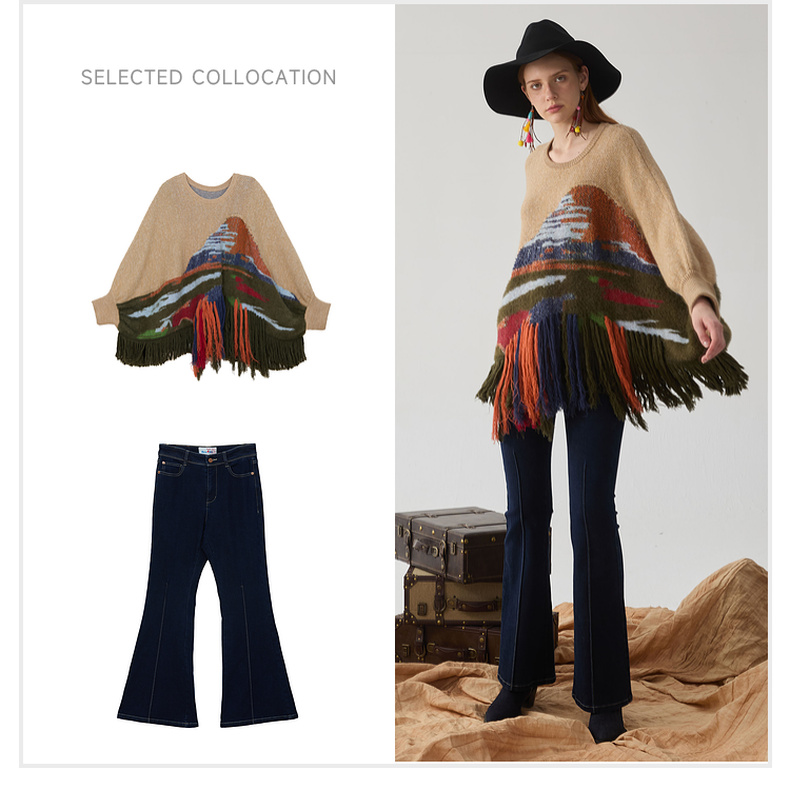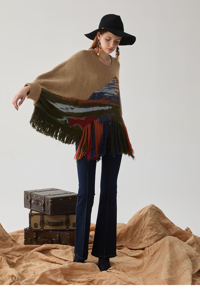 谜底套头针织衫女2024冬季新品复古风宽松A型中长款毛衣244MZ1867