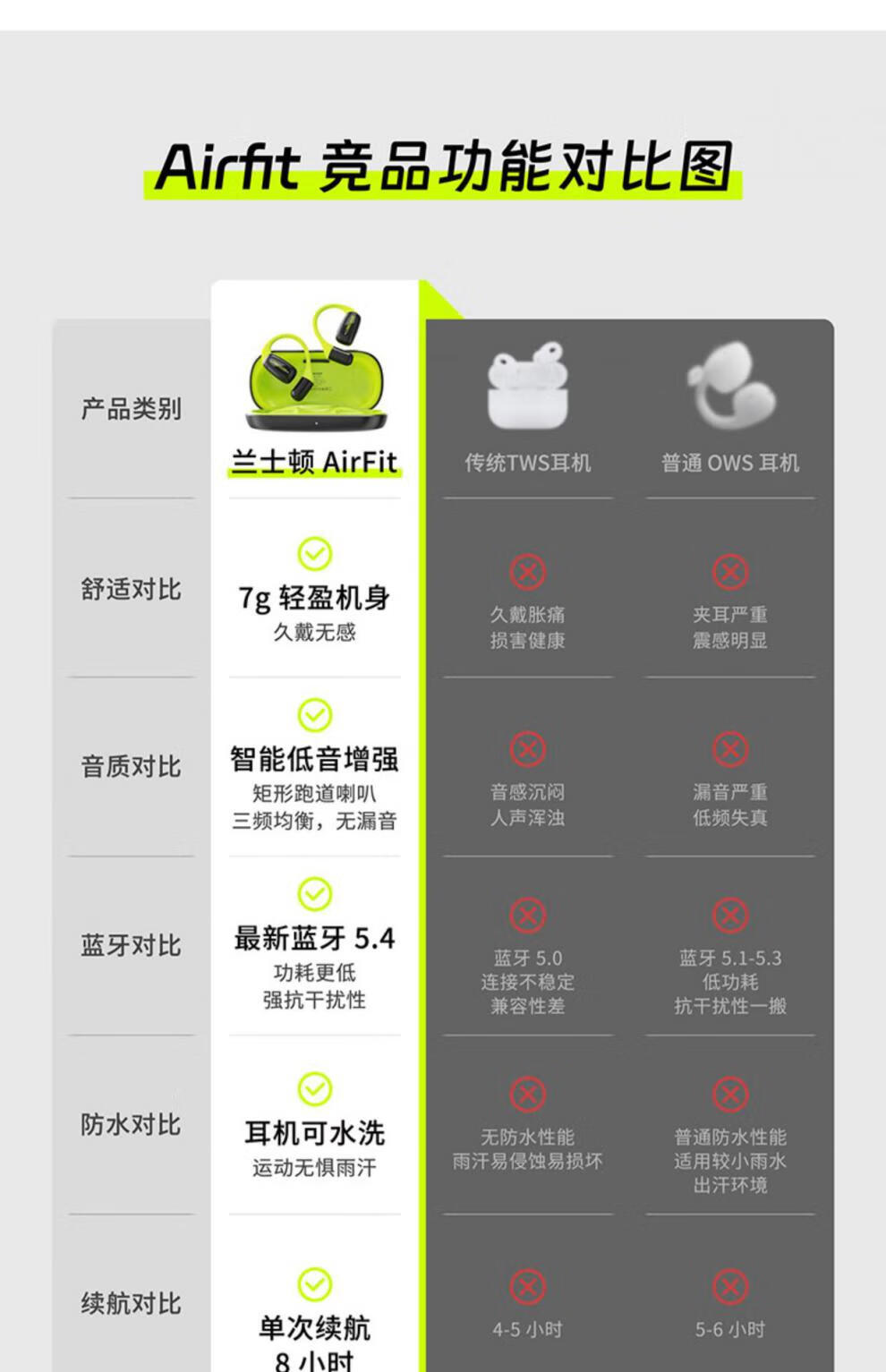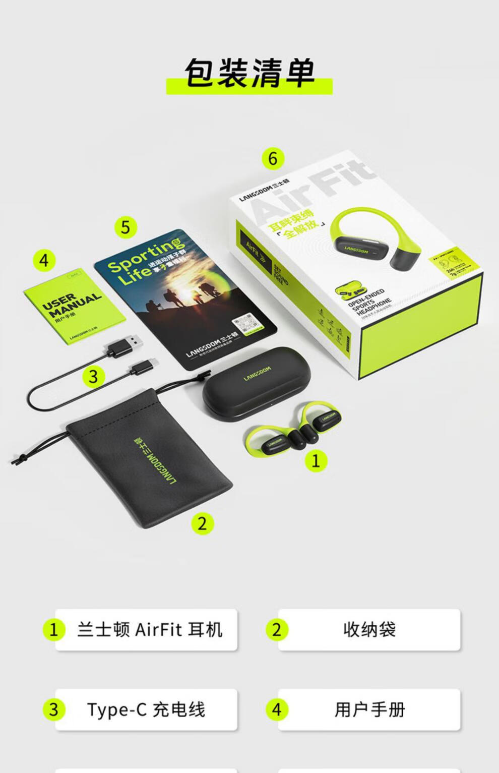【小家电】兰士顿AirFit开放式不入耳运动蓝牙耳机非骨传导耳挂 HF