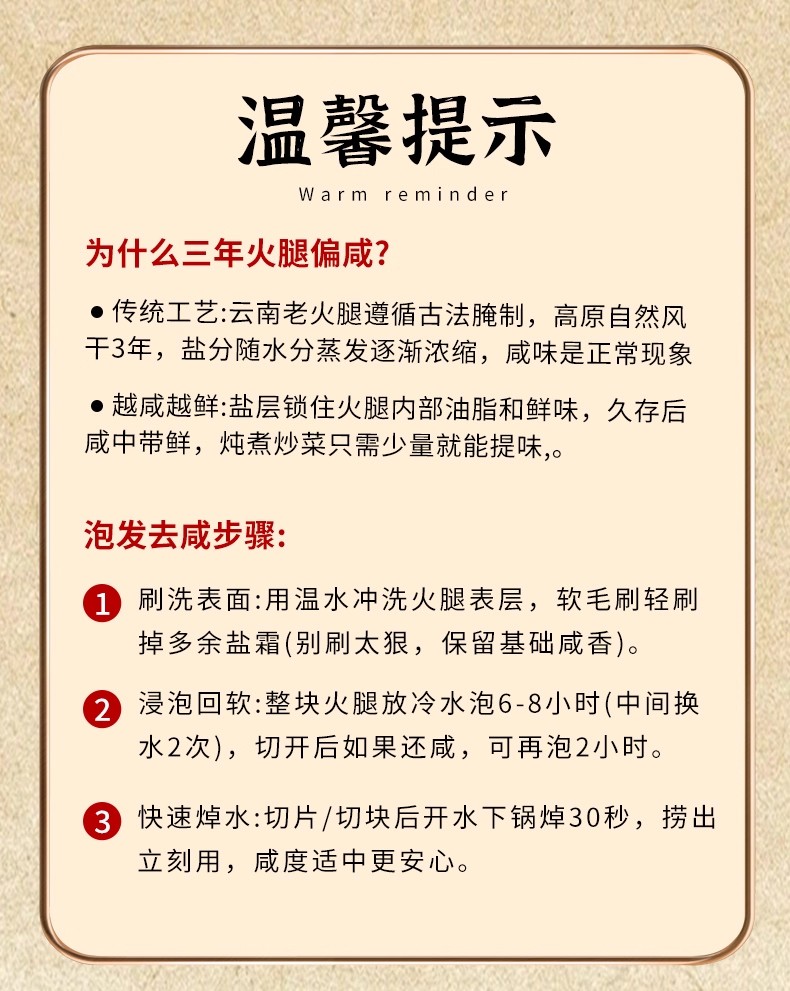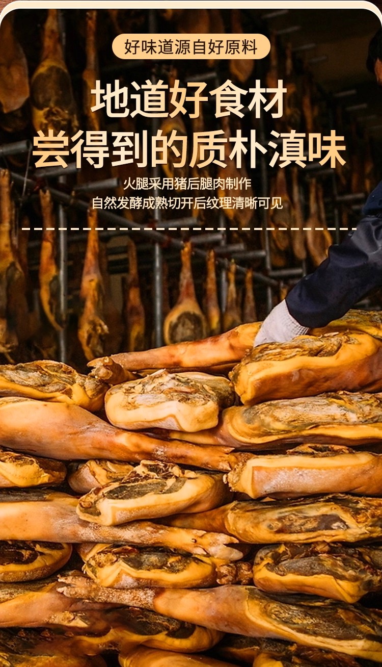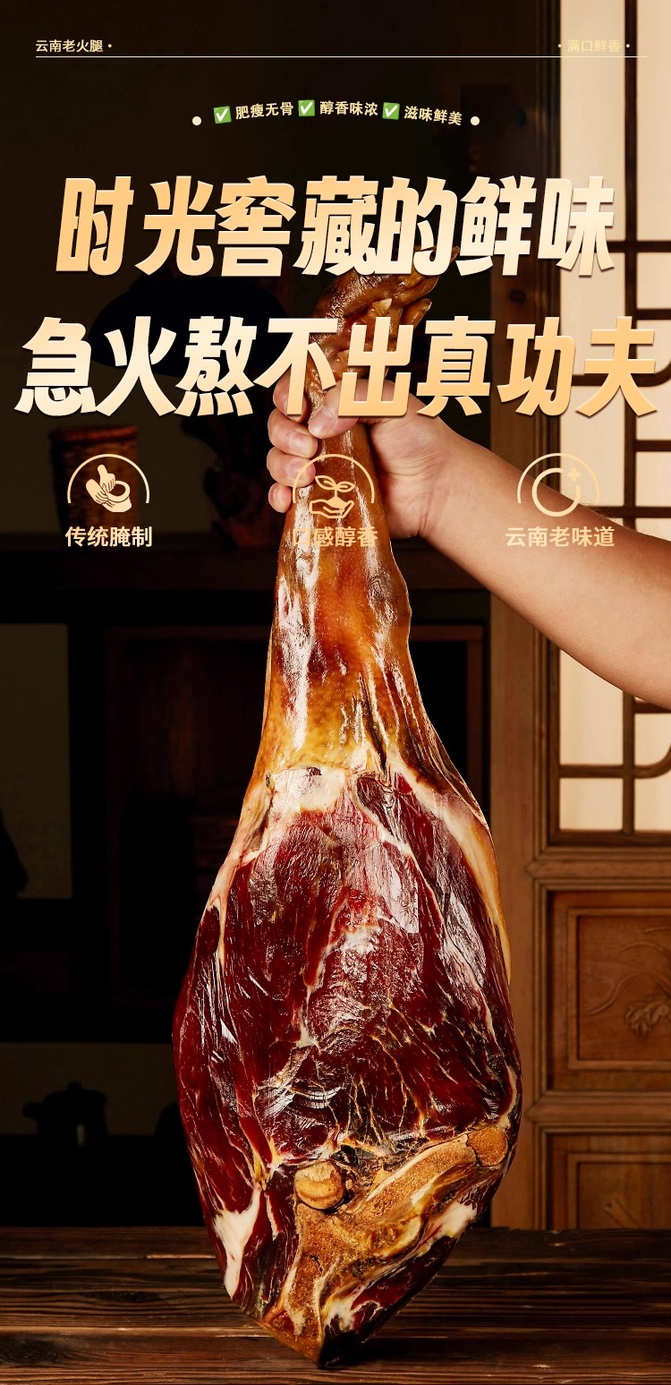 云南正宗三年老火腿块1斤装 肥瘦1:9黄金比例 拒绝工业化 无骨即食云腿馅料