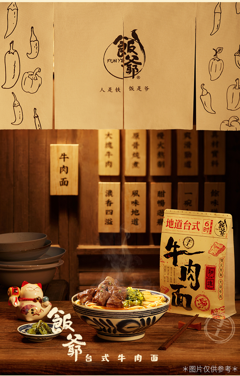 甄选 | 饭爷牛肉面416g*4袋装 台式红烧牛肉面 方便速食非油炸牛肉面