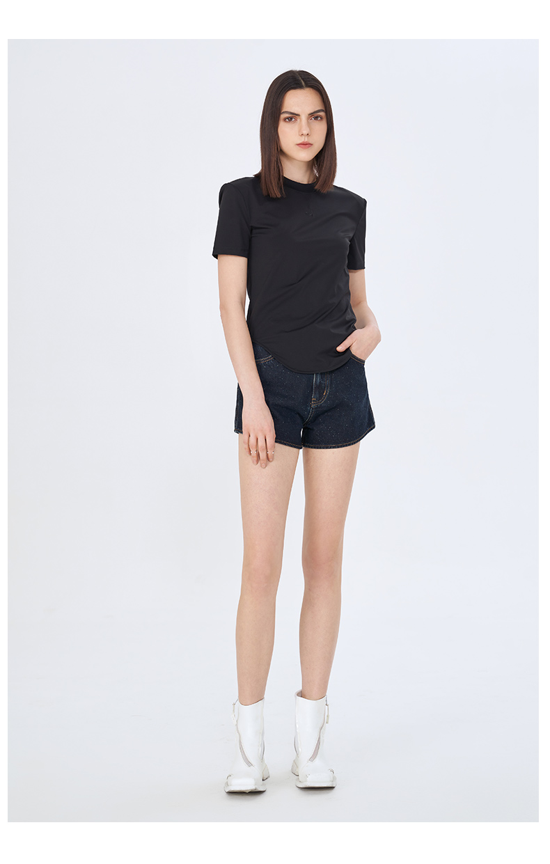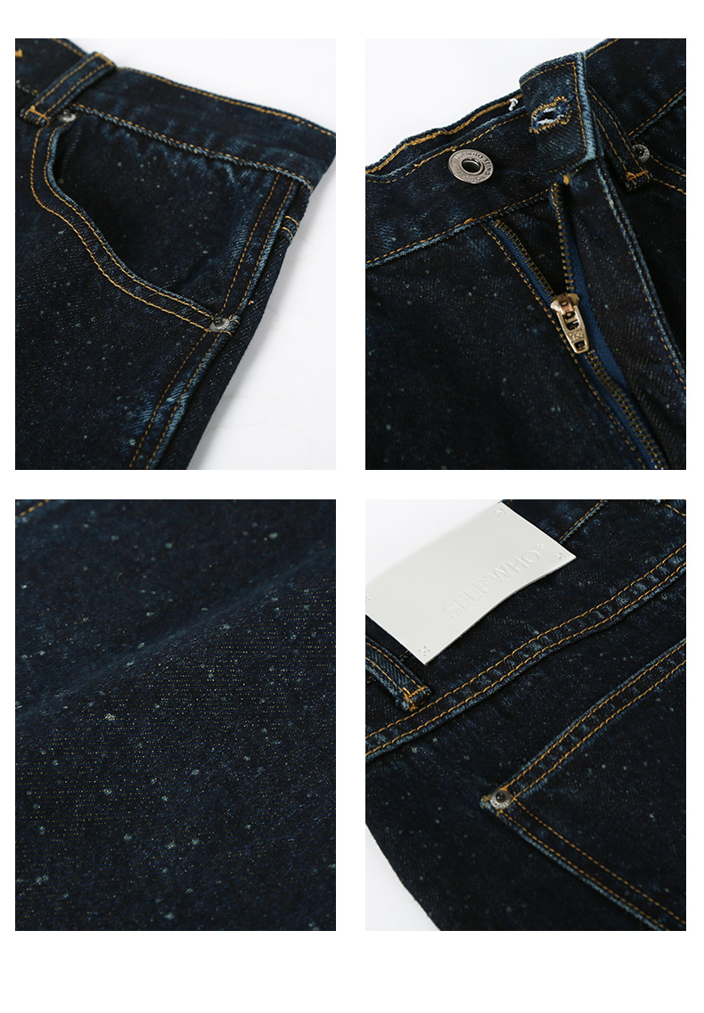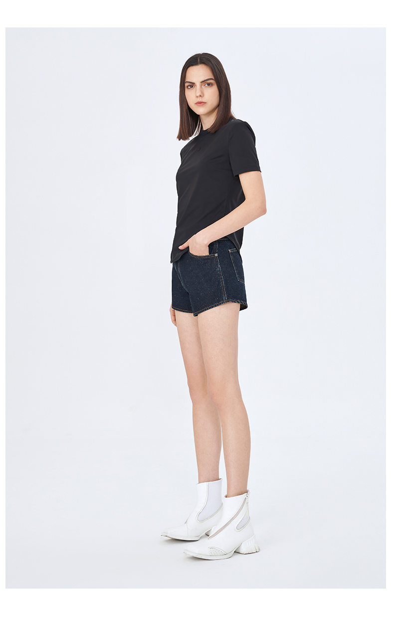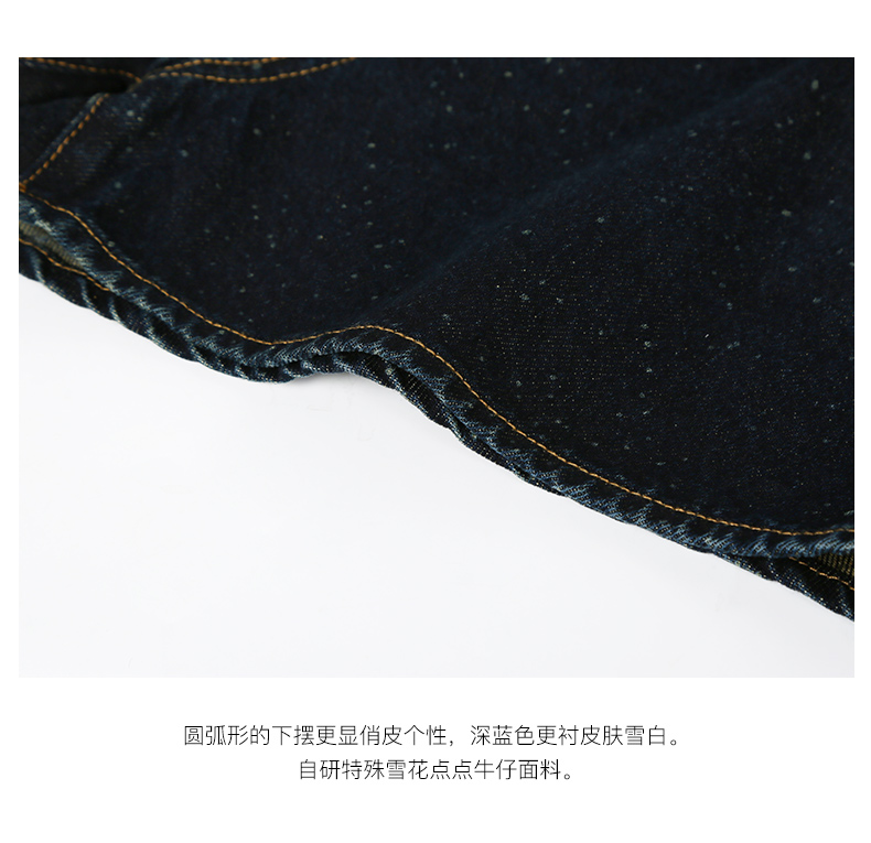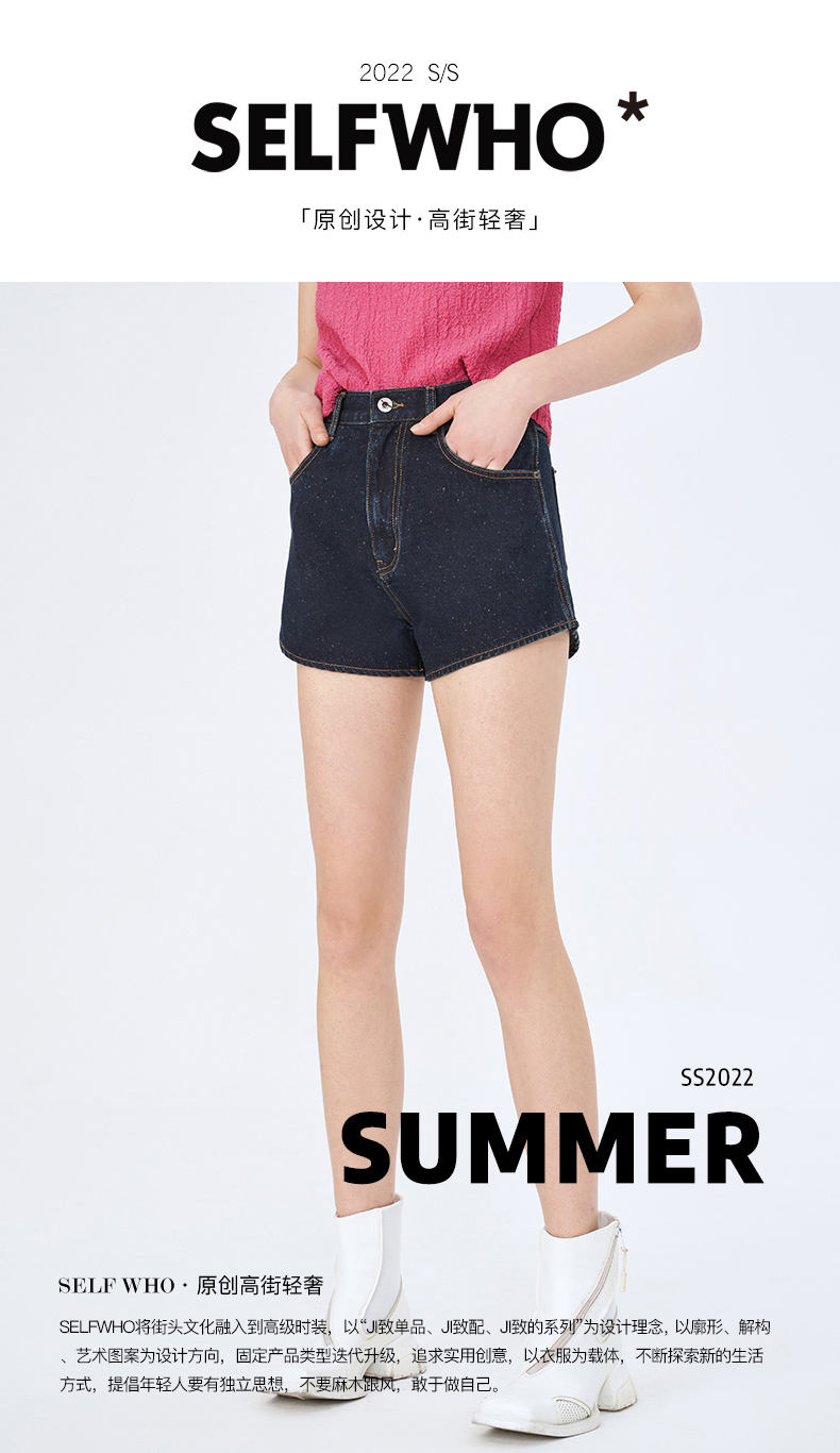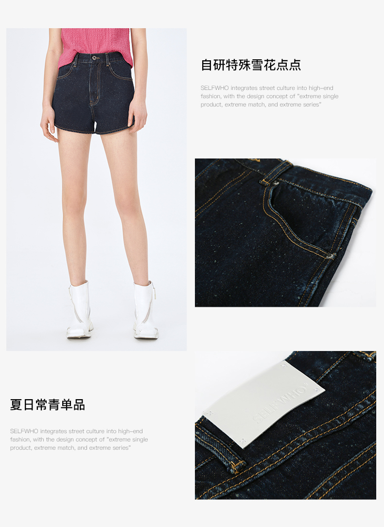 Self Who夏日俏皮特殊雪花点点圆弧形下摆深蓝色牛仔短款热裤女