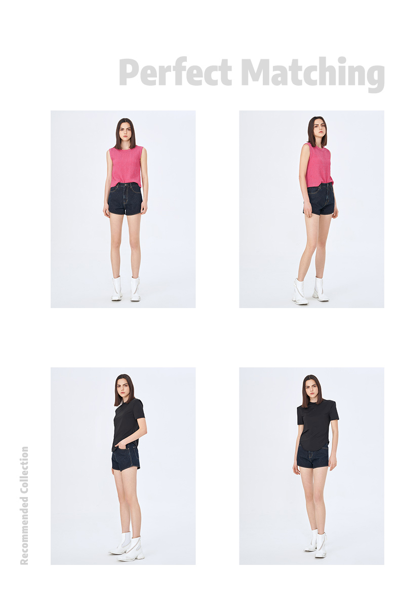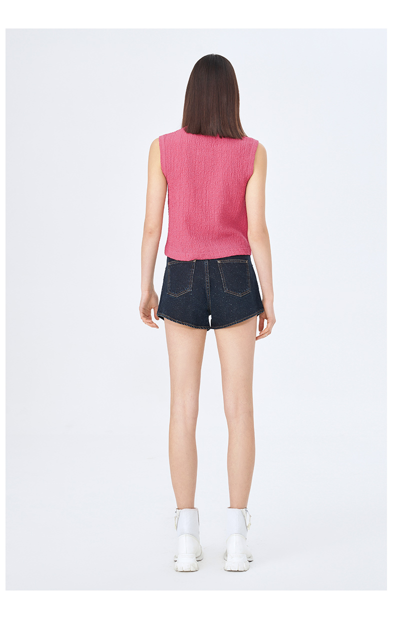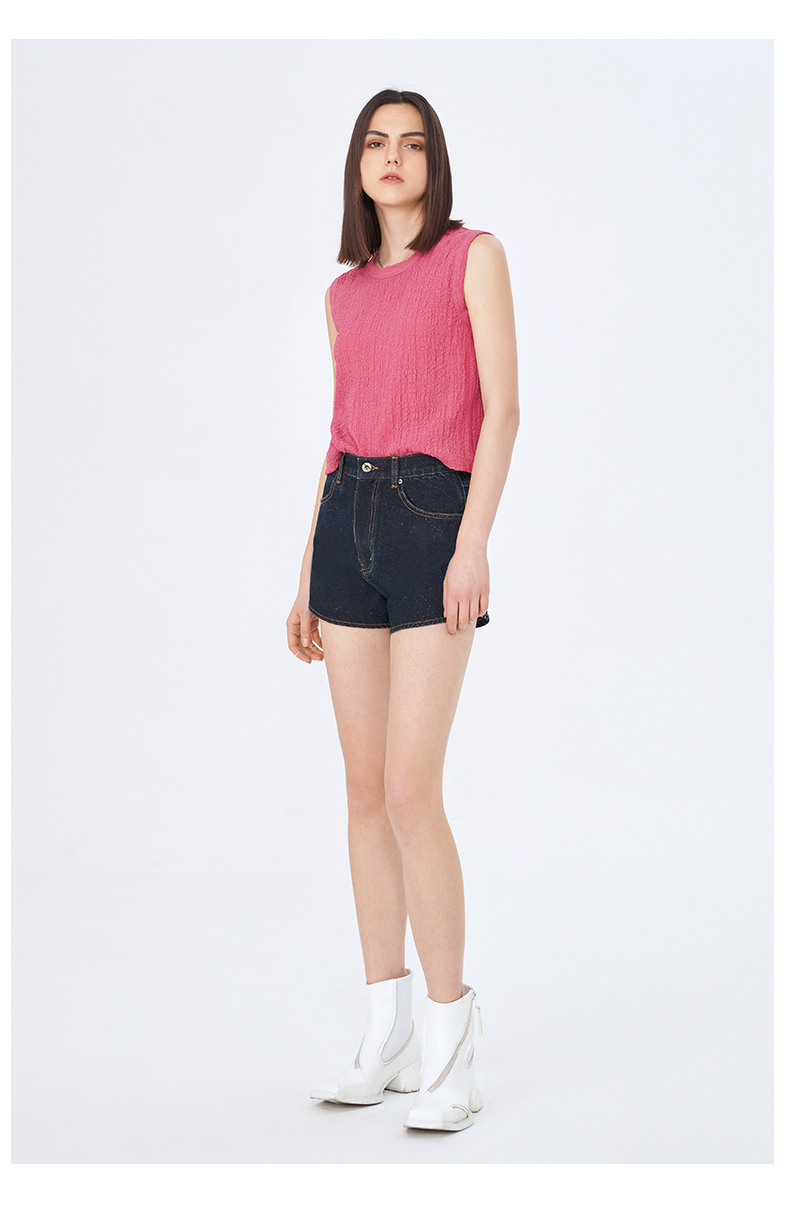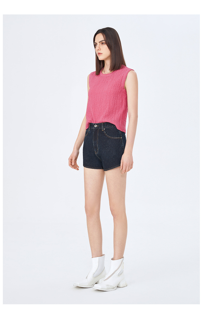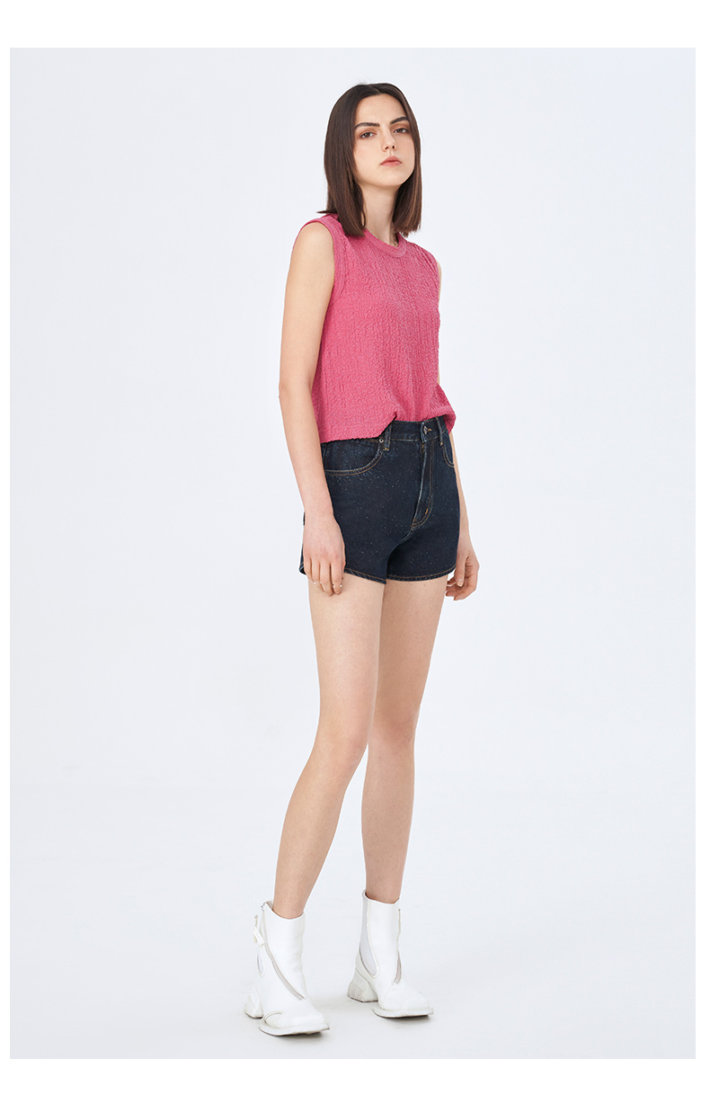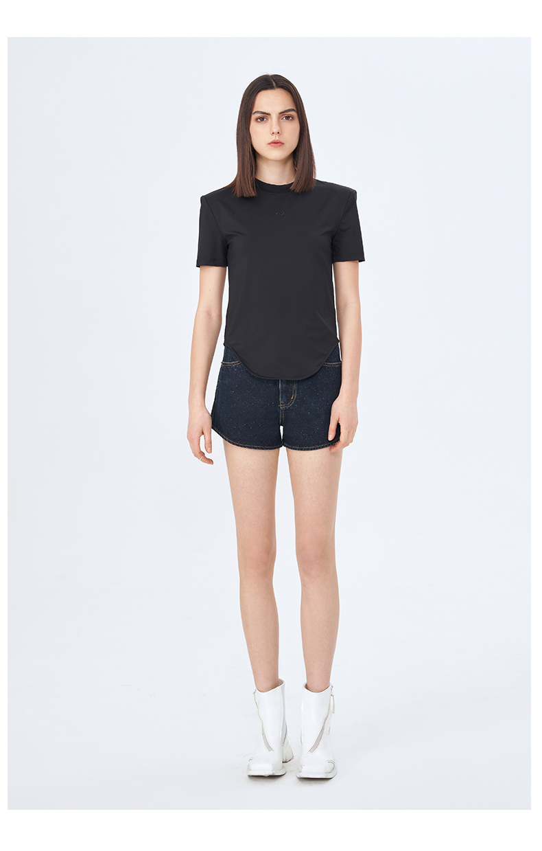 Self Who夏日俏皮特殊雪花点点圆弧形下摆深蓝色牛仔短款热裤女