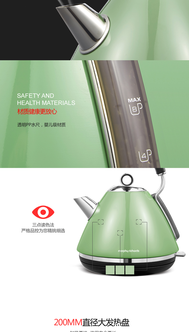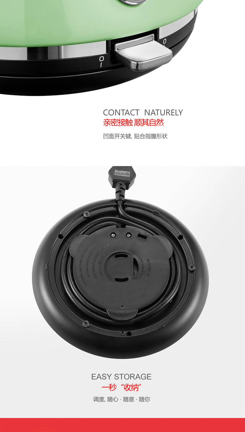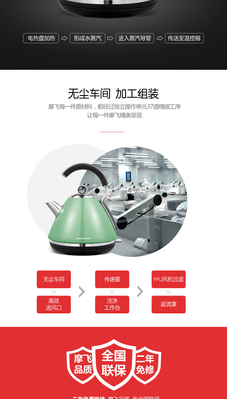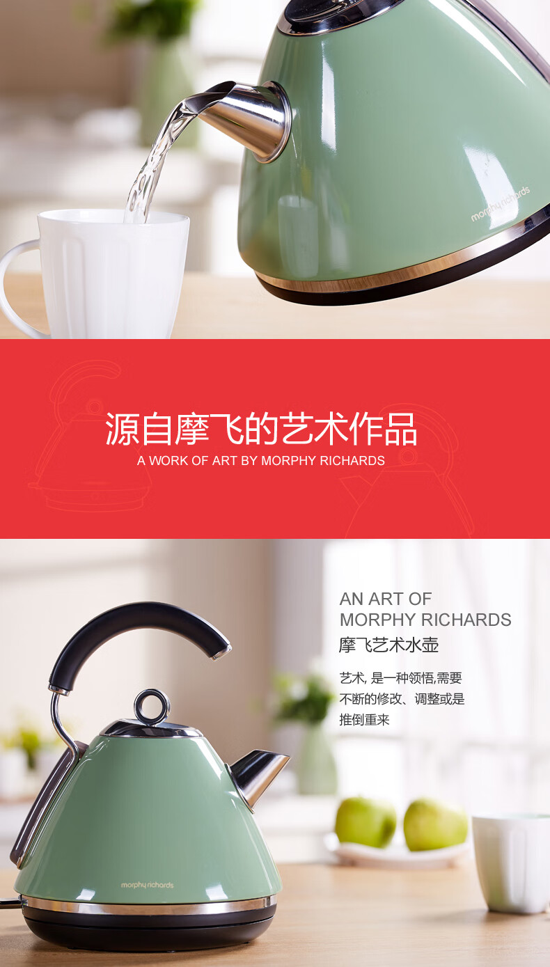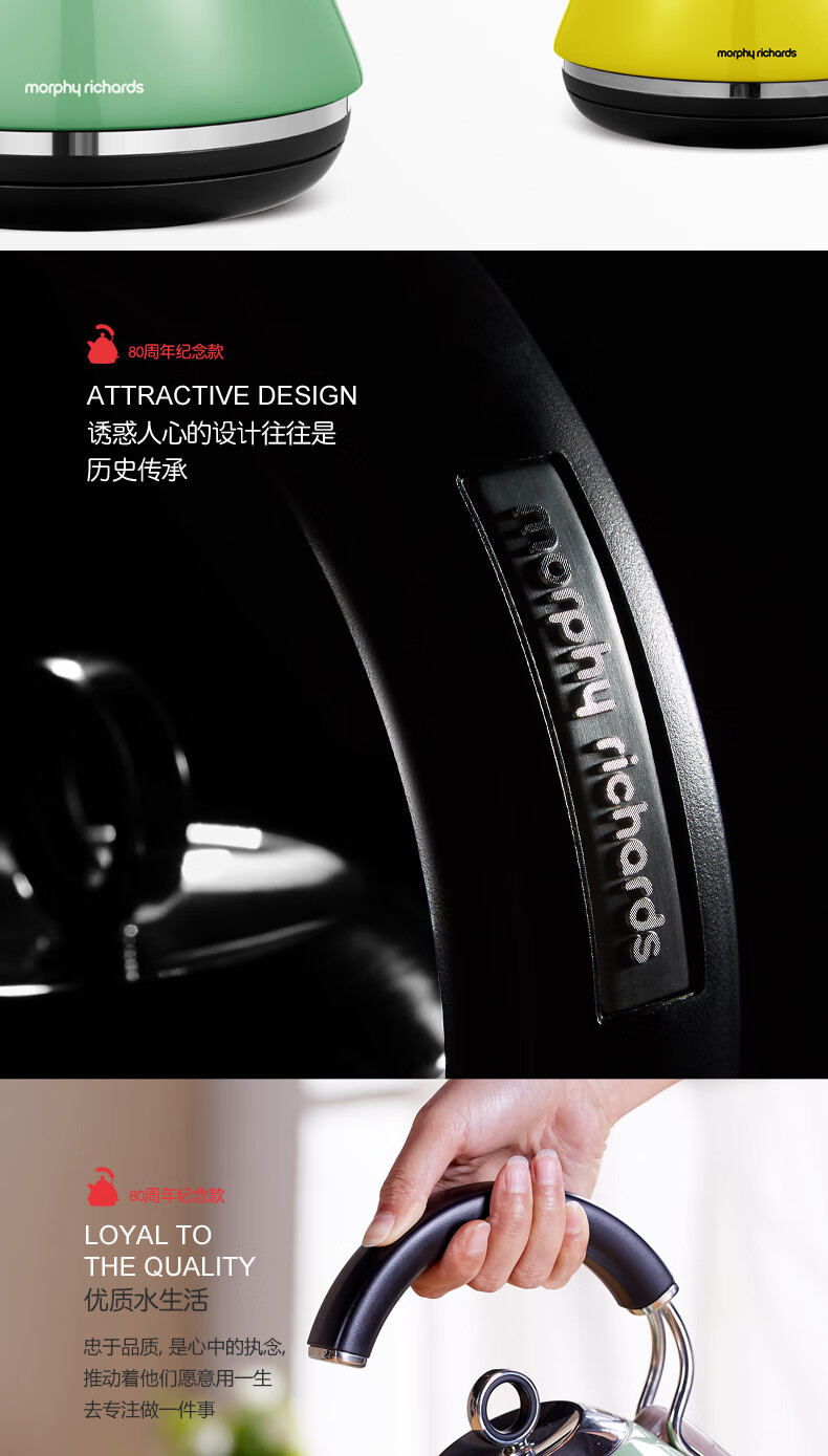 Morphy Richards摩飞家用电热水壶进口304不锈钢大容量烧水壶MR7076A/MR7456A-105L白色