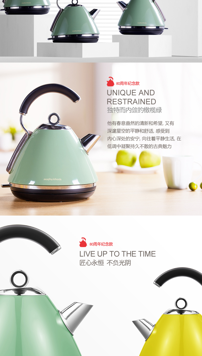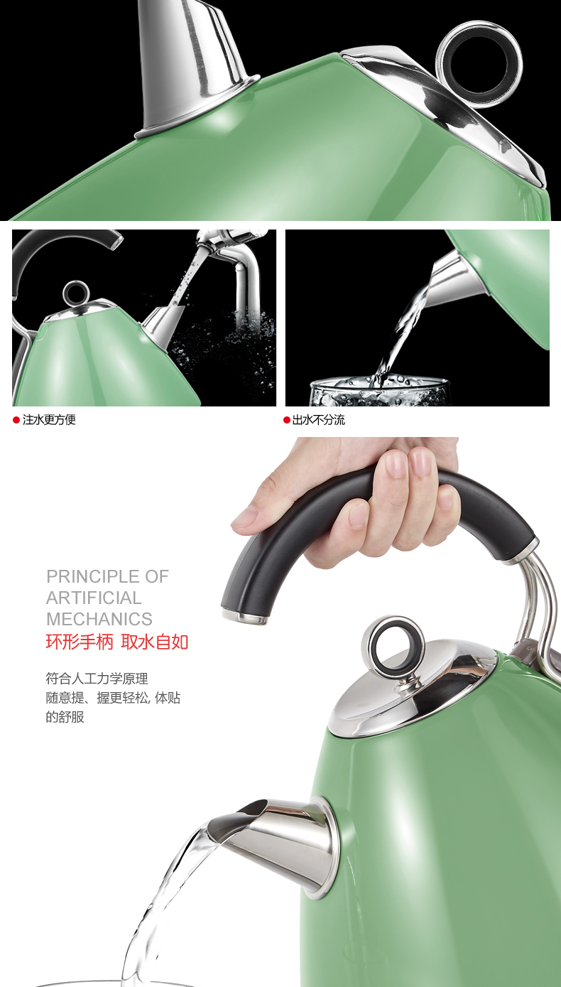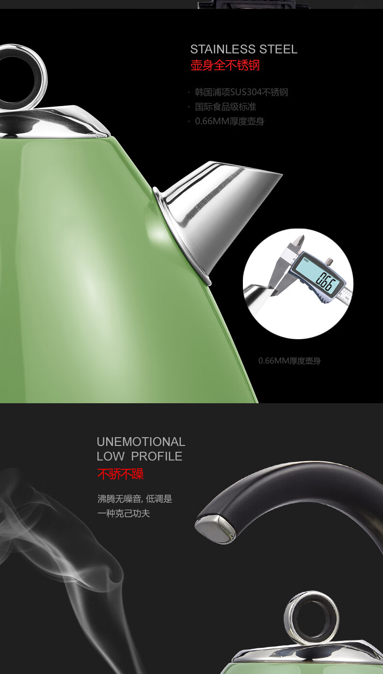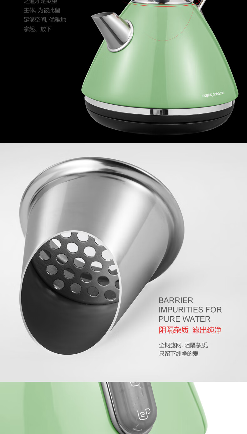Morphy Richards摩飞家用电热水壶进口304不锈钢大容量烧水壶MR7076A/MR7456A-105L白色