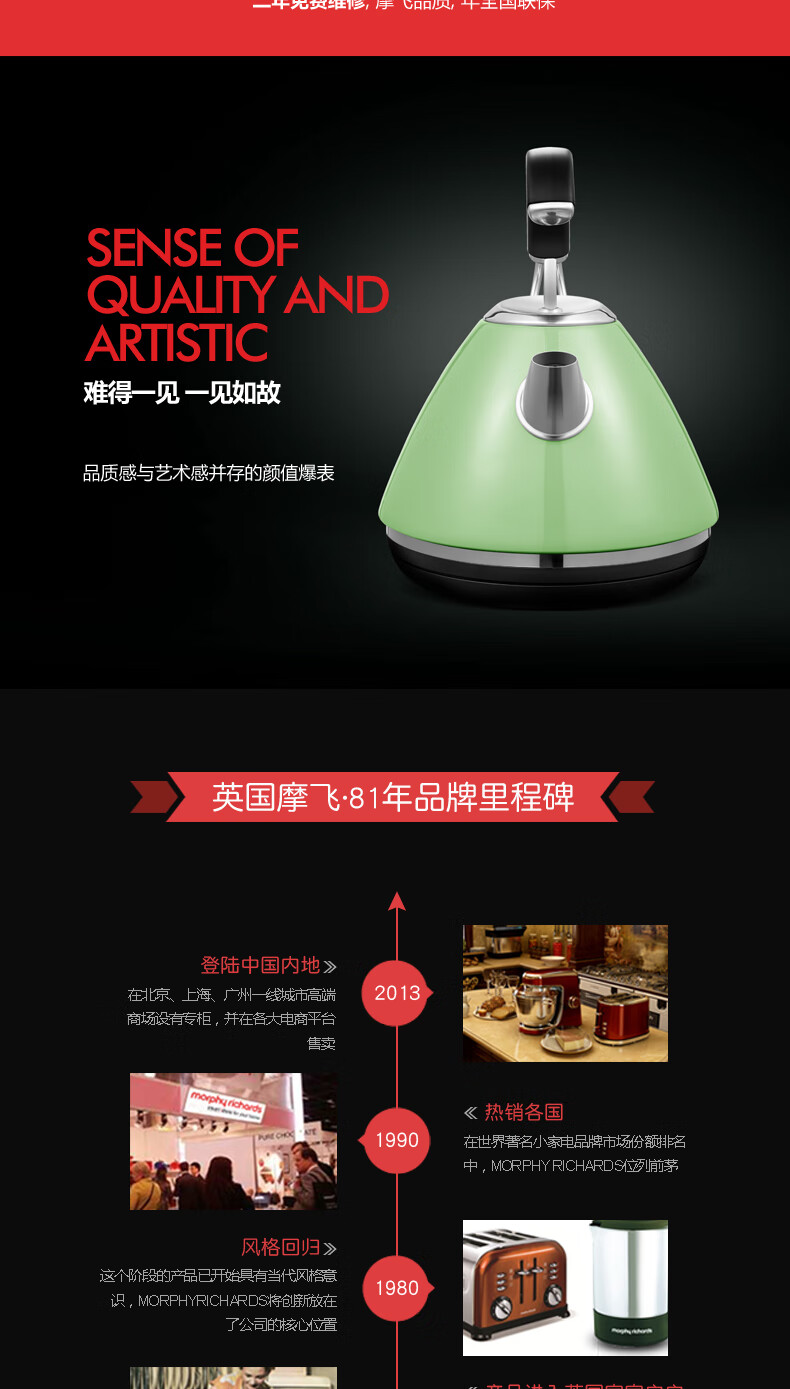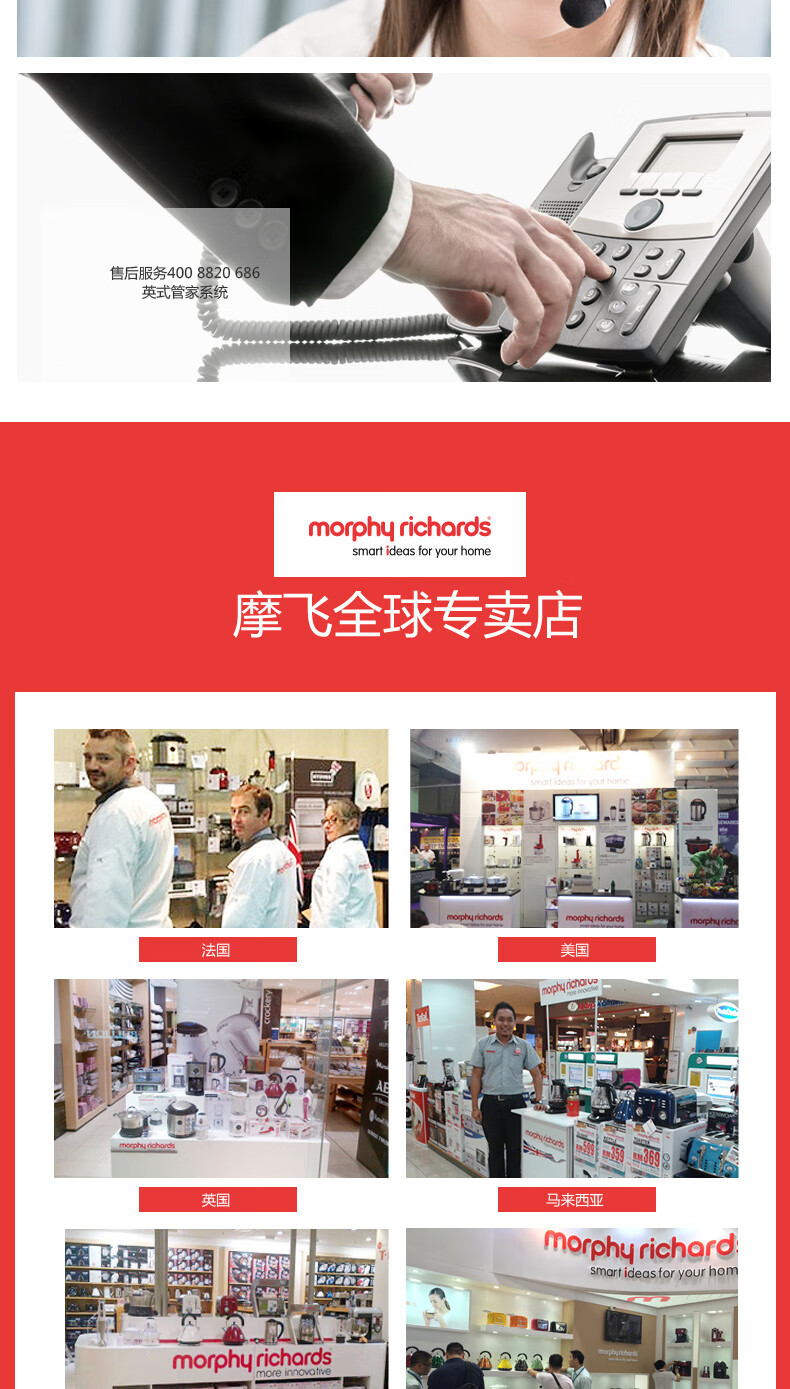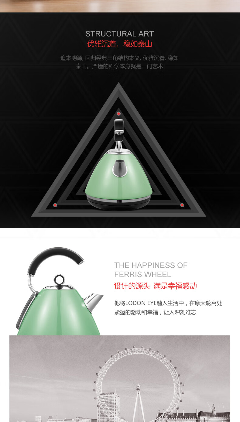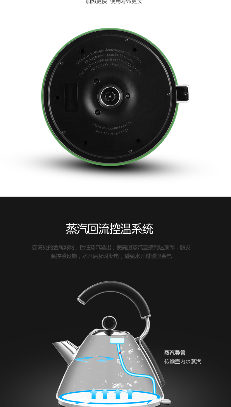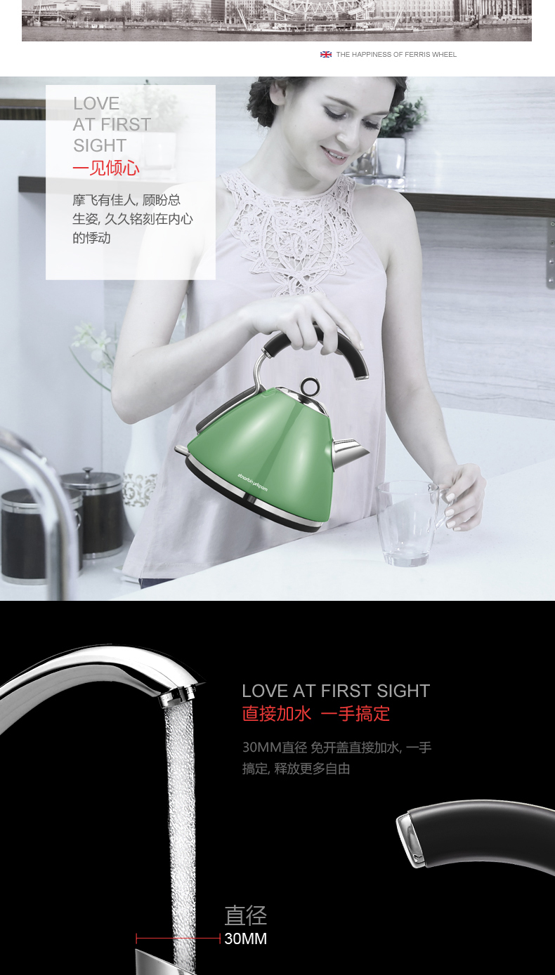 Morphy Richards摩飞家用电热水壶进口304不锈钢大容量烧水壶MR7076A/MR7456A-105L白色