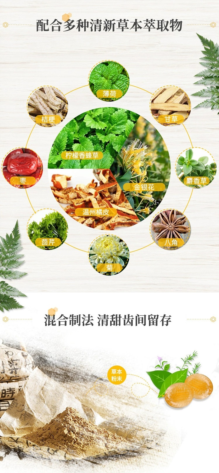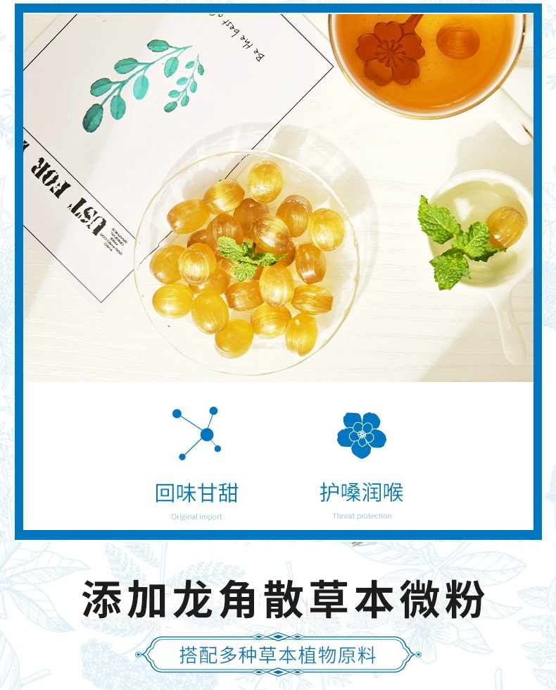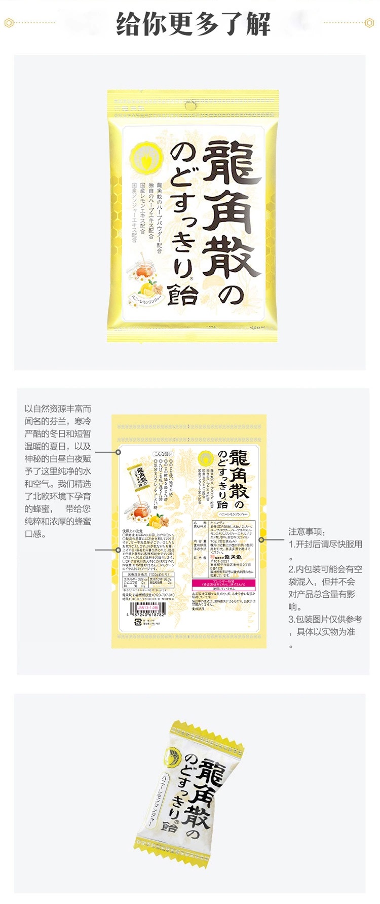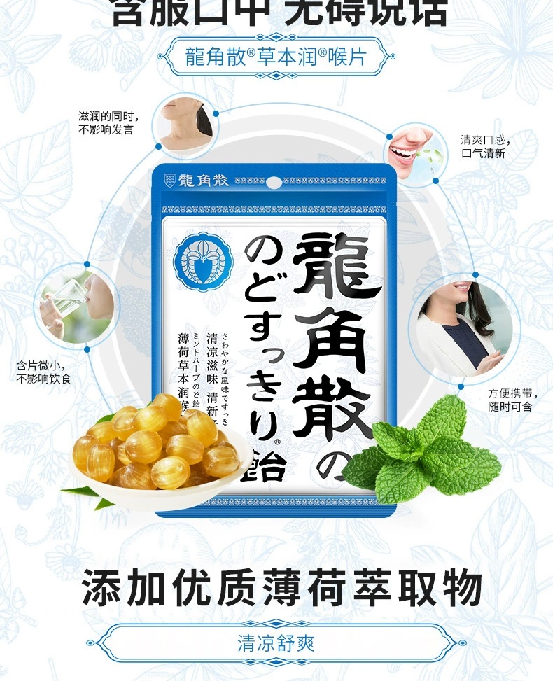 日本进口龙角散草本润喉含片 蜂蜜柠檬生姜味69.3g*2袋+薄荷草本80g*3袋